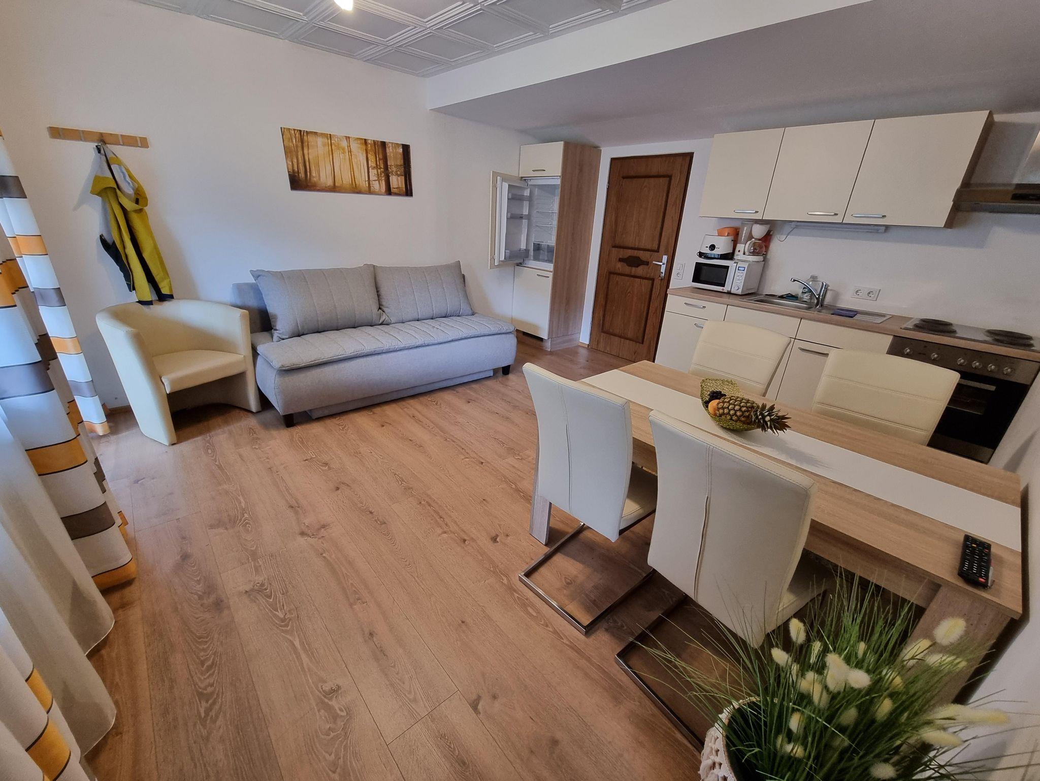 Unsere gemütlichen Appartements Typ A/2 bieten Platz für bis zu 5 Personen und haben eine Größe von ca. 47 m2. Sie verfügen über ein Schlafzimmer mit Doppelbett und Schlafsofa, einen Wohn- / Essraum mit komfortabler Doppelcouch und einer komplett ausgestatteten Küche (E-Herd teilweise mit Backofen, Kühlschrank, Mikrowelle, Filter-Kaffeemaschine, Toaster und Wasserkocher) sowie ein Badezimmer.