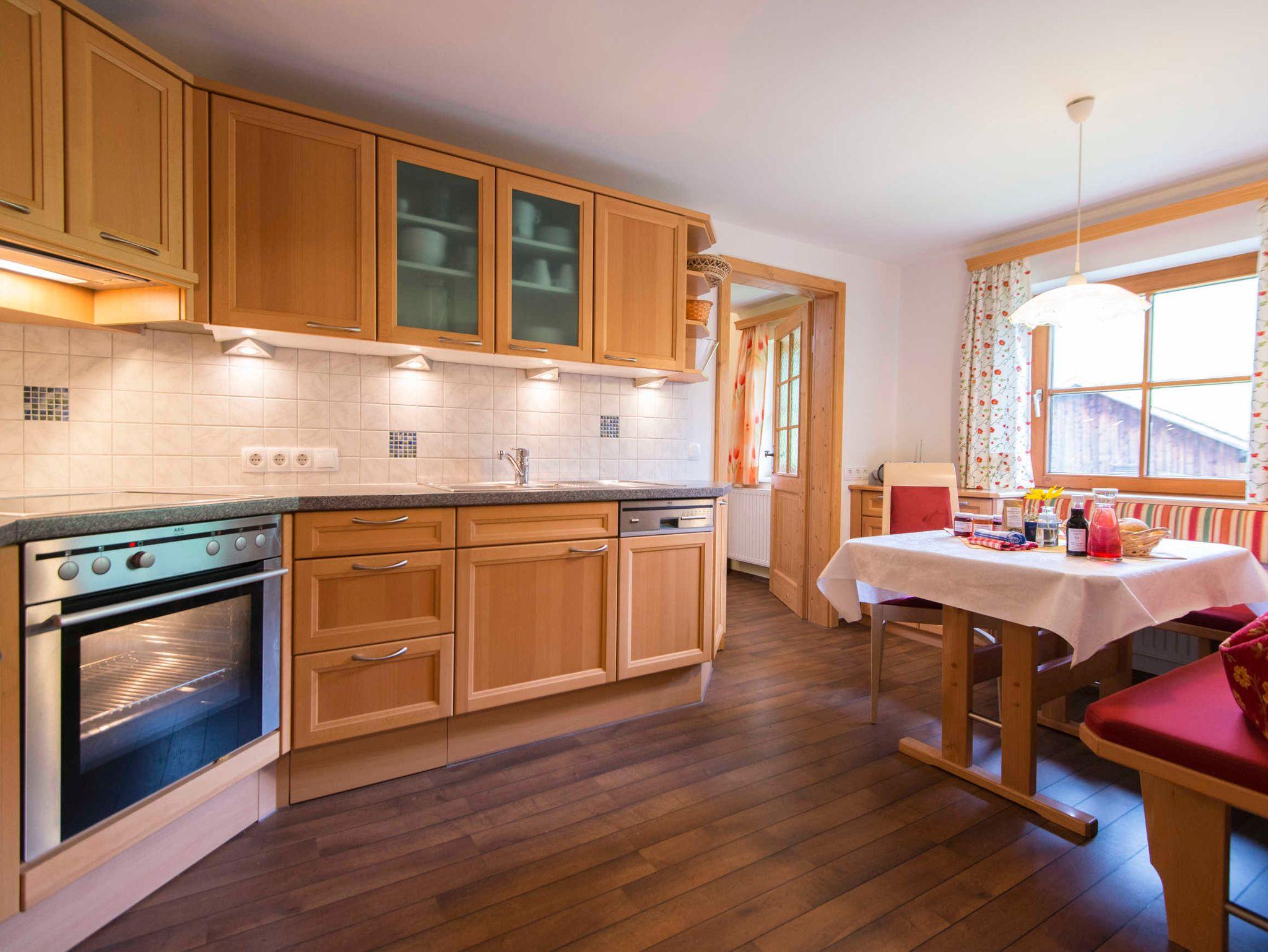 Diese Ferienwohnung für 4-6 Personen mit 55 m² verfügt über zwei Schlafzimmer mit Doppelbett, einen Vorraum mit Garderobe, einem Bad mit Dusche/WC sowie über eine gut ausgestattete Küche mit gemütlicher Sitzecke. Die Küche ist mit Geschirrspüler, Kühlschrank mit Gefrierschrank, E-Herd mit Backofen, Ceran-Kochfeldern und Dunstabzug, Kaffeemaschine, Wasserkocher, Mikrowelle, Stabmixer, etc. ausgestattet. Kochutensilien und Geschirr ist vorhanden, ebenso ein CD-Player mit Radio und USB-Anschluss. Bettwäsche, Hand- und Badetücher sind im Preis inkludiert. Gratis WLAN. Kleinkindausstattung auf Anfrage. Frühstückskorb mit hofeigenen Produkten ist gegen Aufpreis möglich.