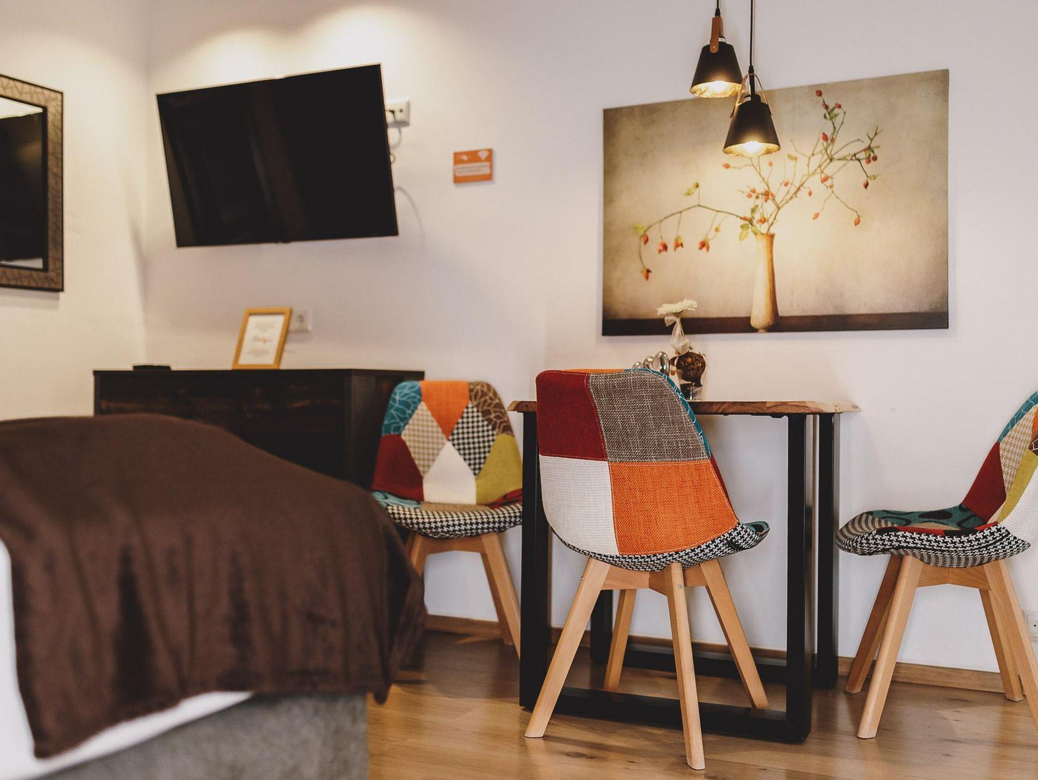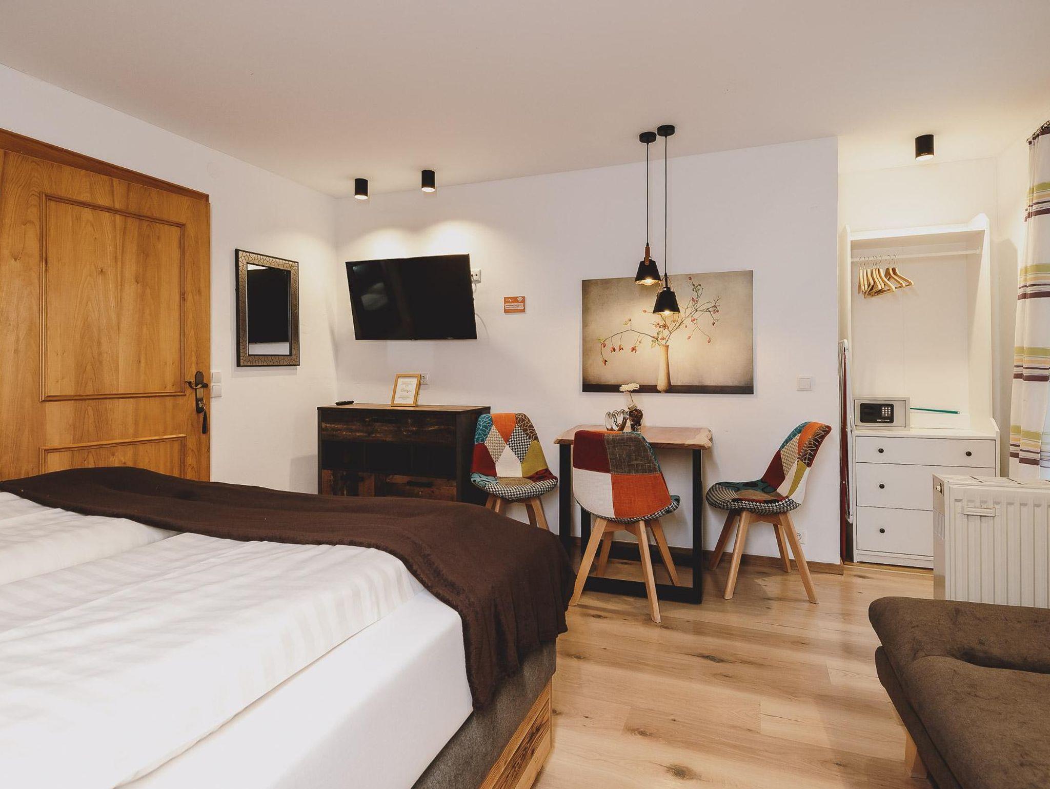 Appartement ca. 45m², mit extra Schlafzimmer für 2-4 Pers. mit Holzdielenboden, Vollholzmöbel, Kabel-TV, Dusche/WC, gemütliche Sitzecke mit Ausziehcouch, Kochnische mit Senseo-Kaffeautomat inkl.Pads, kleine Teeauswahl & Wasserkocher, Balkon/Terrasse