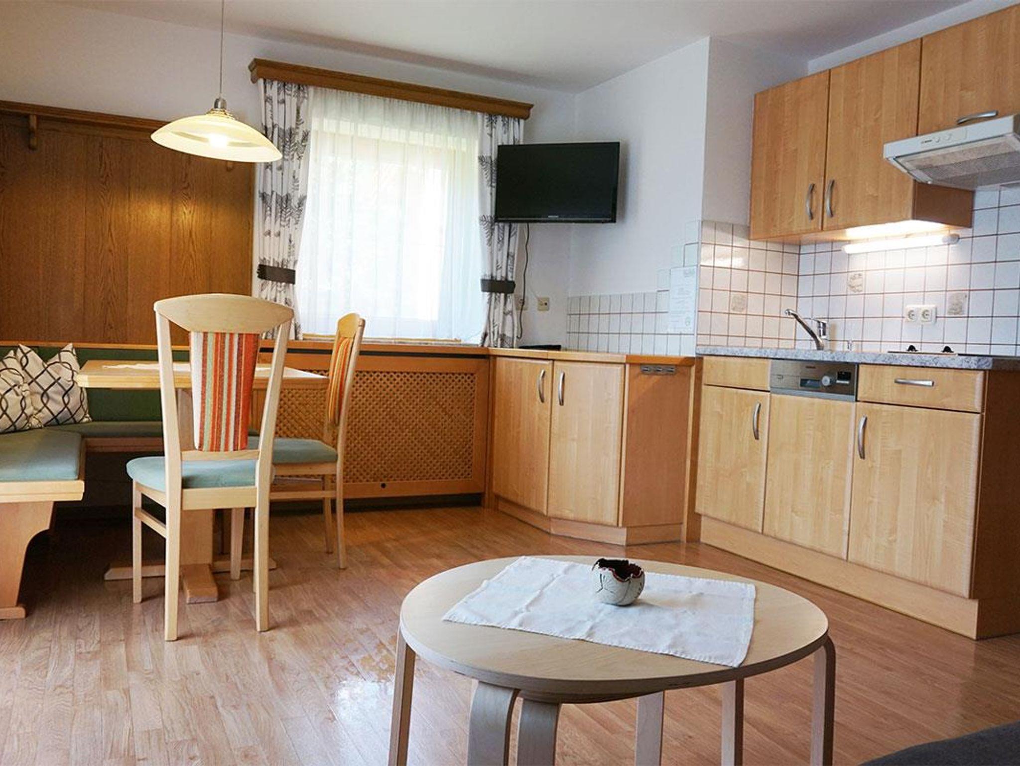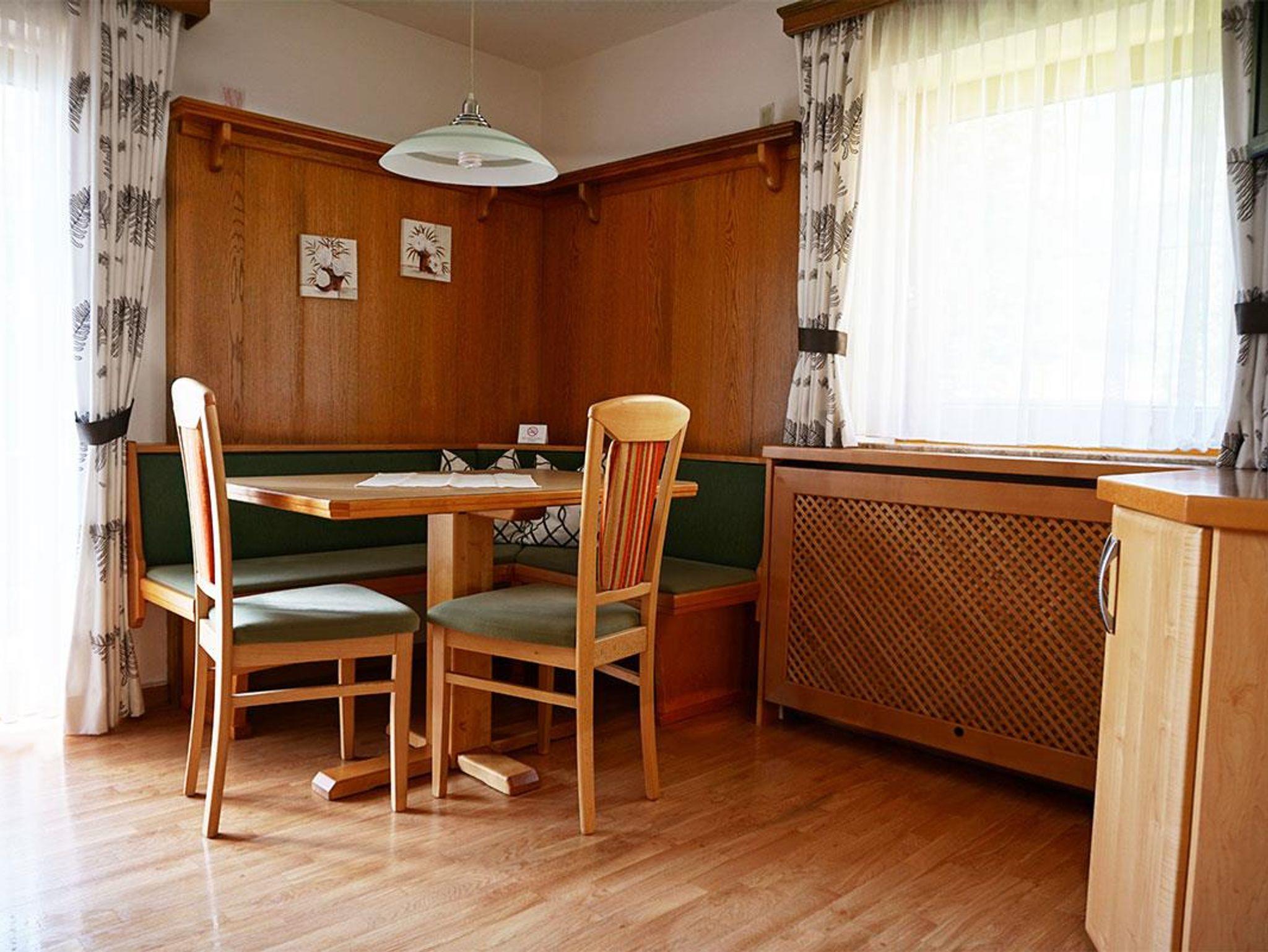Dieses Appartement besteht aus einer Wohnküche mit Esstisch und Couch, Küchenzeile (voll ausgestattet), 1 kleines Schlafzimmer mit 2 Einzelbetten auch zum zusammenschieben, Dusche und WC. TV und CD-Player mit Radio und Haarföhn sind vorhanden. Der Balkon ist südseitig mit wunderschönen Ausblick auf die Gasteiner Bergwelt. Bettwäsche, Bade-und Handtücher sowie Geschirrtücher sind vorhanden. W-Lananschluss ist im Haus, hier wird ein einmaliger Betrag von Euro 5,00 verrechnet. Dieses Appartement wird im Sommer, Frühjahr und im Herbst auch als Einzelbelegungen für Stollengäste vergeben