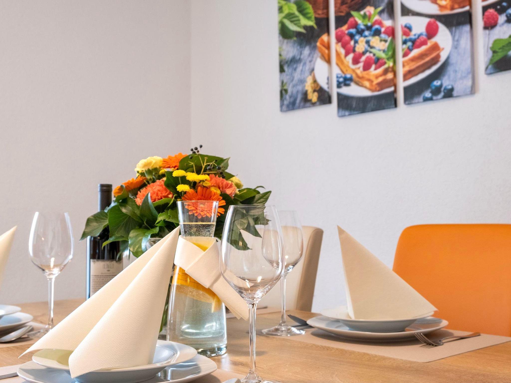 Die Ferienwohnung verfügt über 2 getrennte Schlafzimmer (jeweils mit einem Kingsize-Doppelbett), eine komplett ausgestattete Küche mit allen nötigen Kochutensilien (inkl. Mikrowelle, Backofen, Wasserkocher, Geschirrspüler, Kaffeemaschine), ein eigenes Badezimmer mit einer Duschkabine, Handtuchtrockner und Föhn, sowie ein zweites WC.
