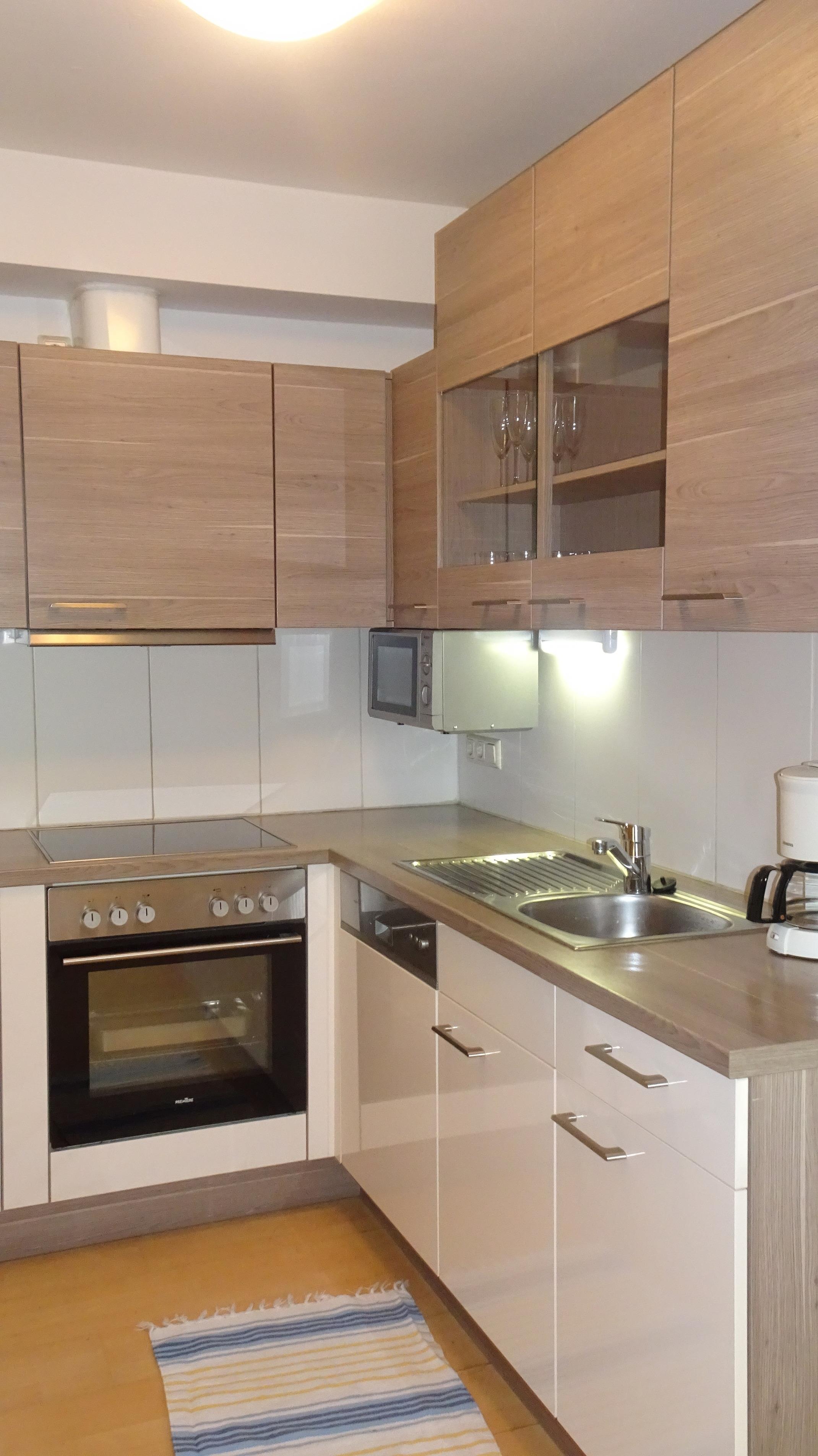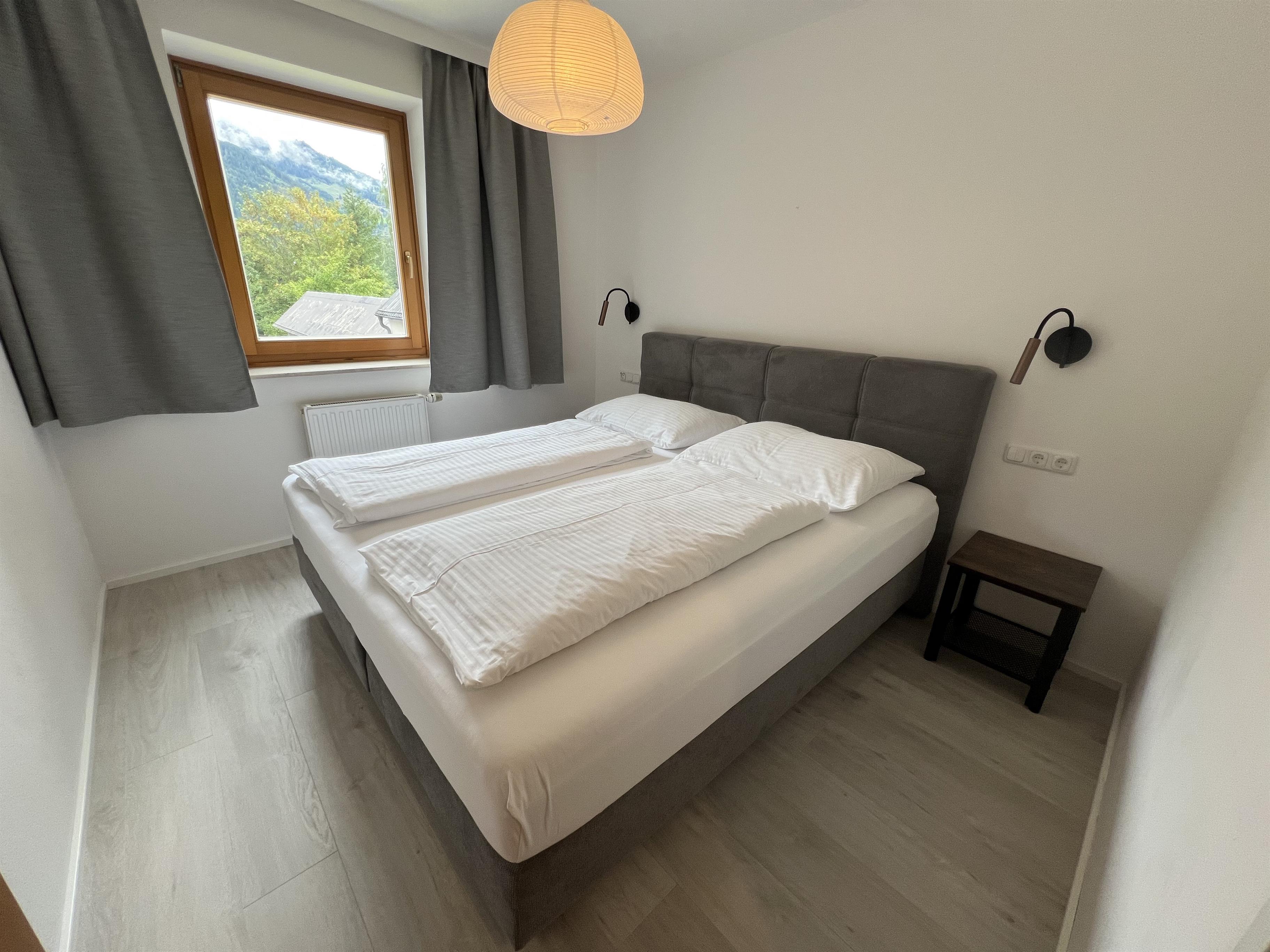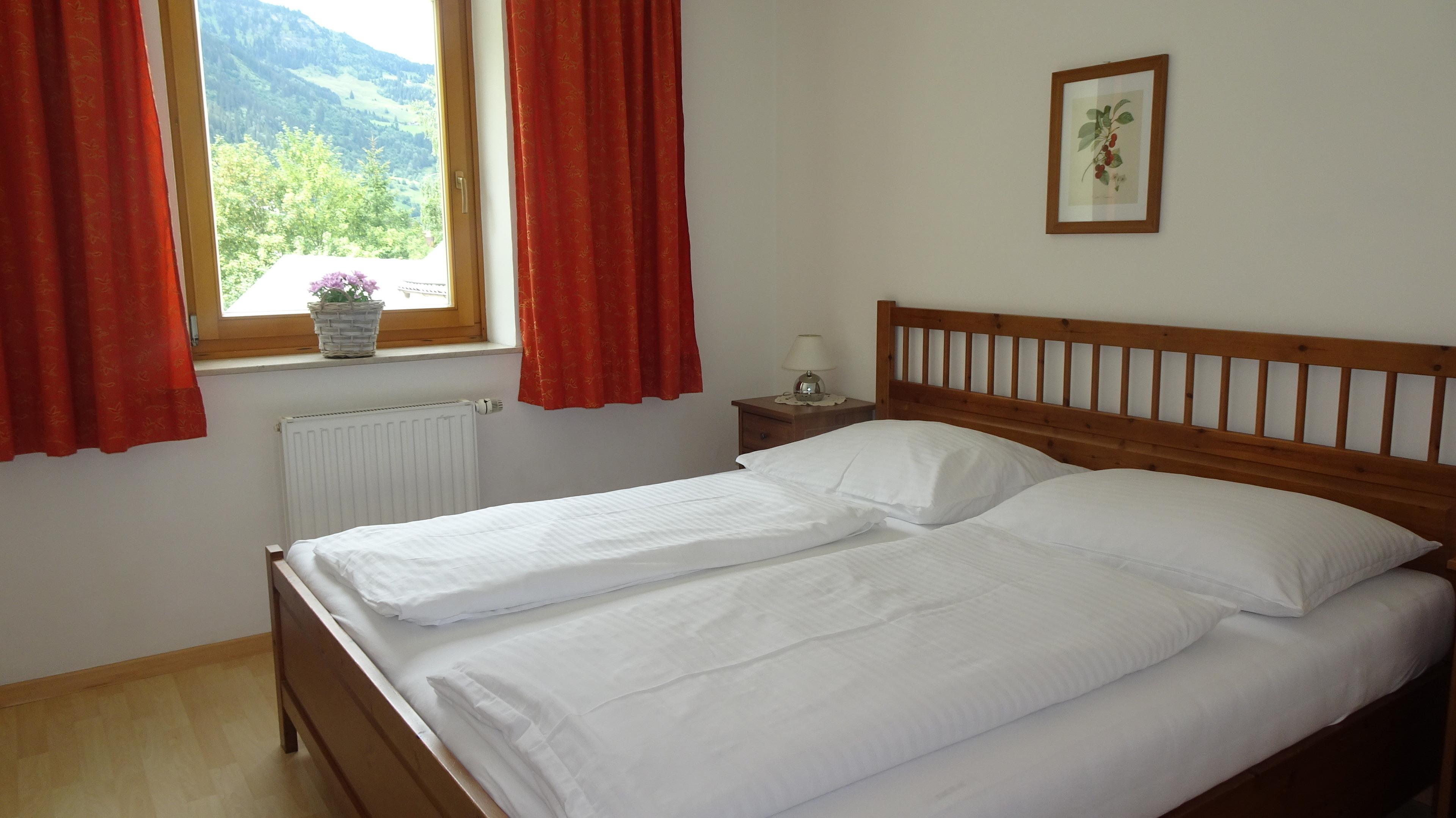 Das Apartment hat einen eigenen Wohnraum mit gut ausgestatteter Kochnische, ein Schlafraum mit einem Doppelbett, ein zweiter Schlafraum einem Doppelbett und einer Schlafsofa, ein Bad mit Badewanne/WC, ein WC extra. Vorraum und Terrasse mit Bergblick.