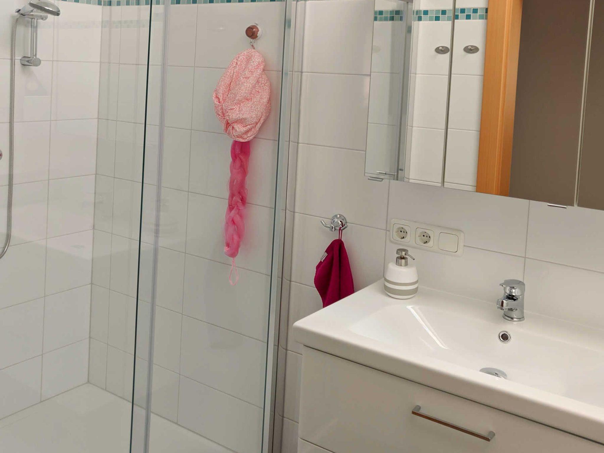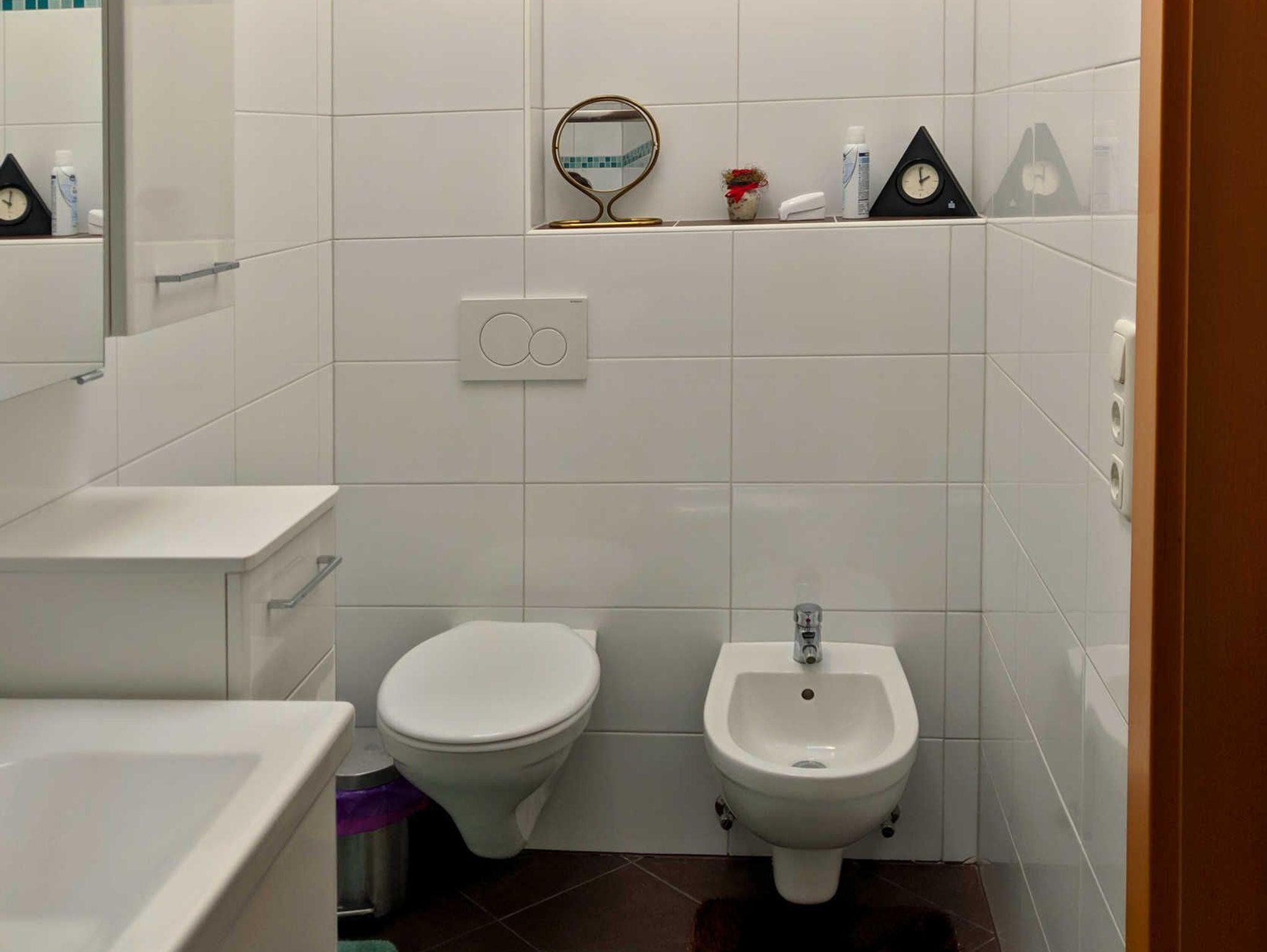 Das Badezimmer verfügt über Dusche, WC und Bidet. Die Küche ist ausgestattet mit einer gemütlichen Essecke, einem Backofen, einem Herd, einer Mikrowelle, Kühl- und Gefrierfach, Geschirrspüler, sowie Kaffeemaschine und Wasserkocher. Weiters steht die Nutzung von Wachsmaschine, Wäscheständer, sowie Bügelbrett und Bügeleisen frei zur Verfügung, sowie kostenloses Kabel TV. Wohnzimmer mit TV, Wandschrank und Couch (für max. 2 Kinder bis 14,9 Jahre). Eine Terrasse, sowie eine Liegewiese laden nach den Unternehmungen zum Entspannen ein. Nichtraucherwohnung.