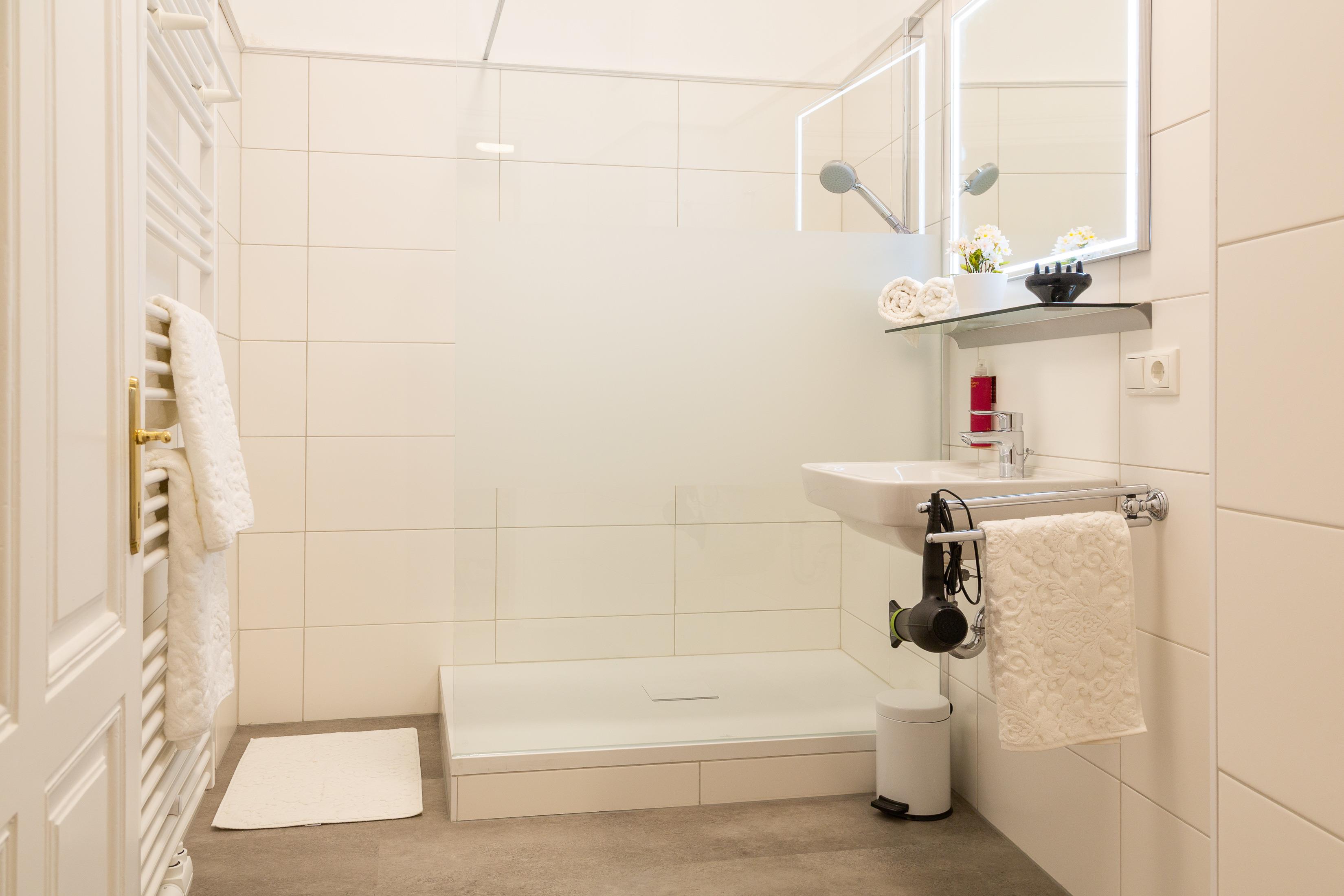 Das 2020 neu installierte Bad glänzt mit ’Walk-In' Dusche, Waschbecken, und sämtlicher Ausstattung inkl. Handtücher, Seife, Duschgel und Föhn. Genießen Sie Ihre ganz private Wohlfühloase.