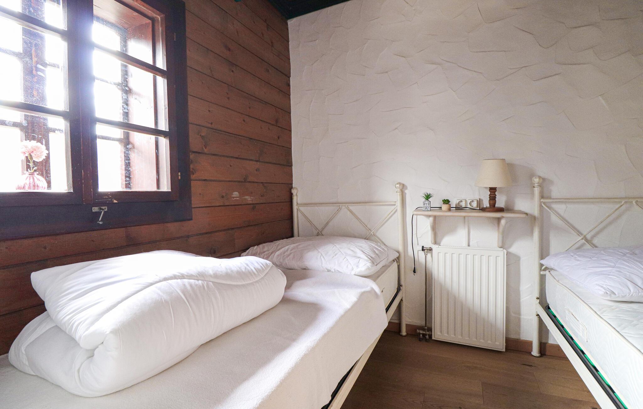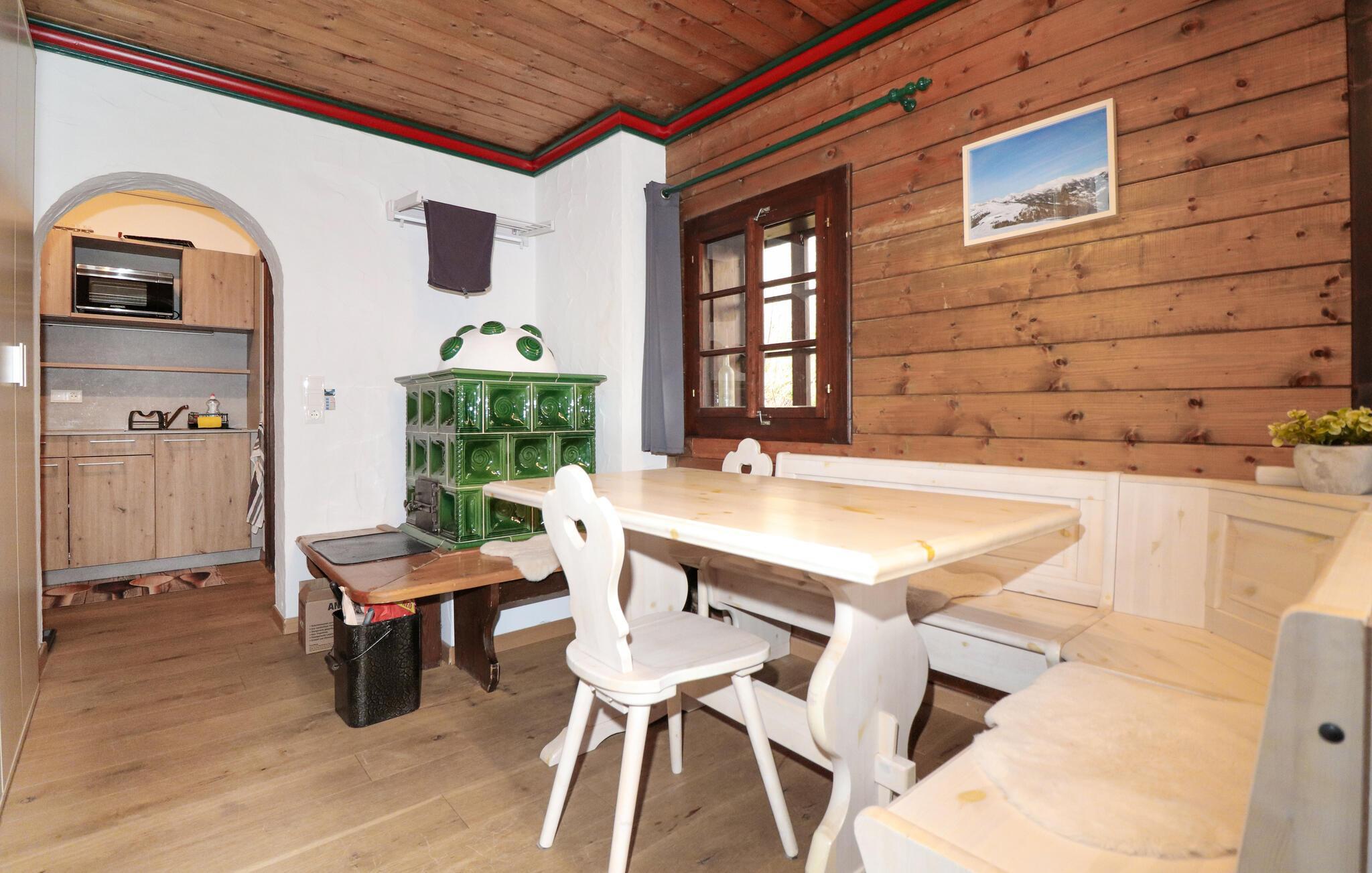 Dette charmerende feriehus tilbyder en rustik atmosfære og en skøn oase. Den rolige beliggenhed på en bjergskråning og nærheden til naturen lægger op til afslapning og ro. Tilbring stemningsfulde timer i den hyggelige opholdsstue med trævægge, traditionelle vinduer og en kærligt designet spiseplads. Glæd jer til hyggelige måltider, og lad kakkelovnen sørge for ekstra komfort. Slap af på sofaen med en god bog eller en film.