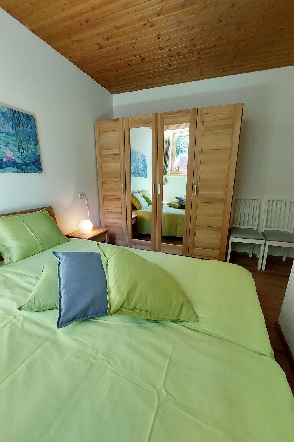 The interior of the flat is cosy and functional. It has two bedrooms - one with a double bed and the other with a bunk bed especially for children. The modern bathroom has a shower. In the living room, you will find a kitchenette and a sofa bed, ideal for relaxing after an eventful day. In addition, the large terrace overlooking the garden allows you to spend relaxing hours outdoors.