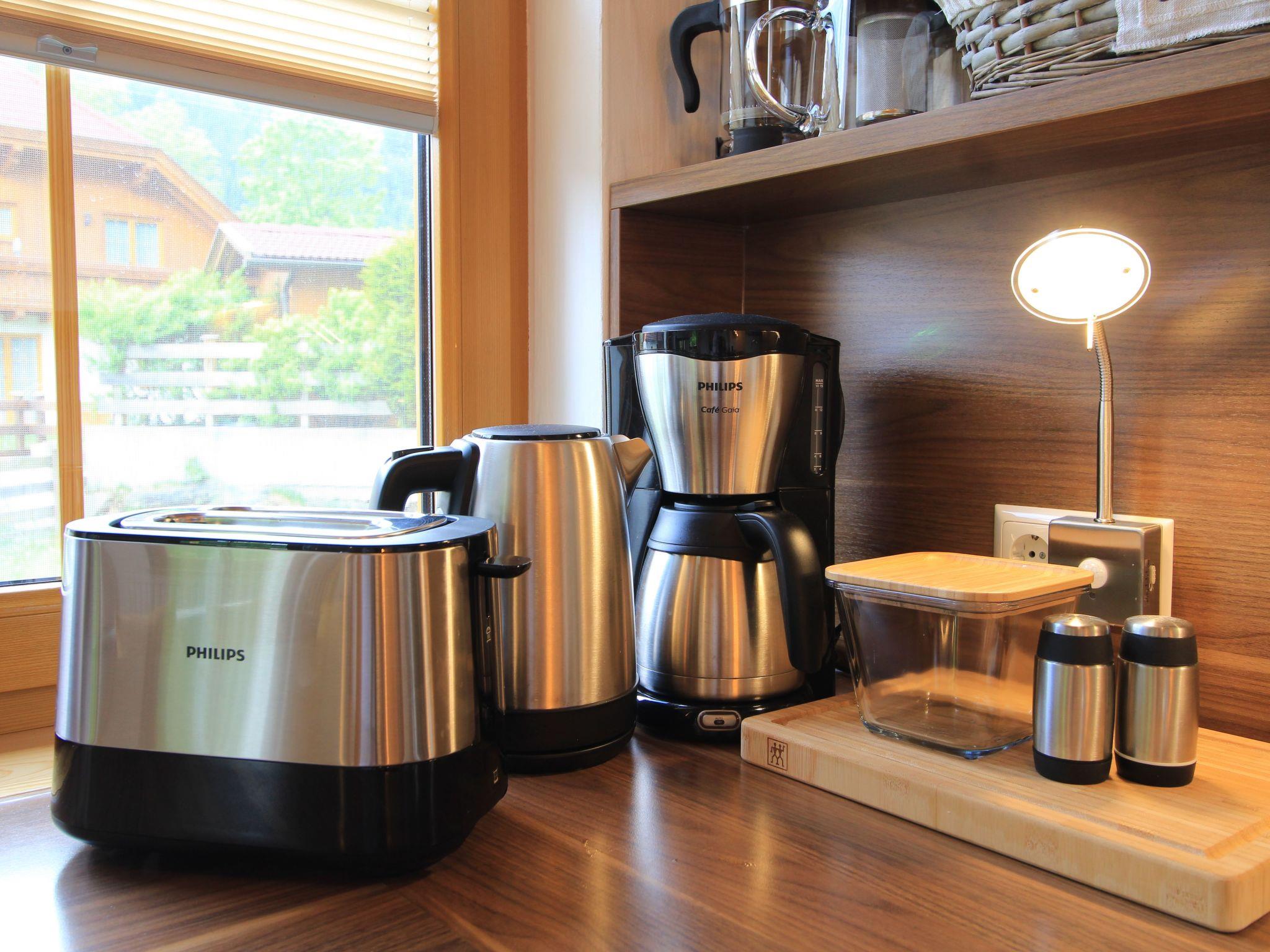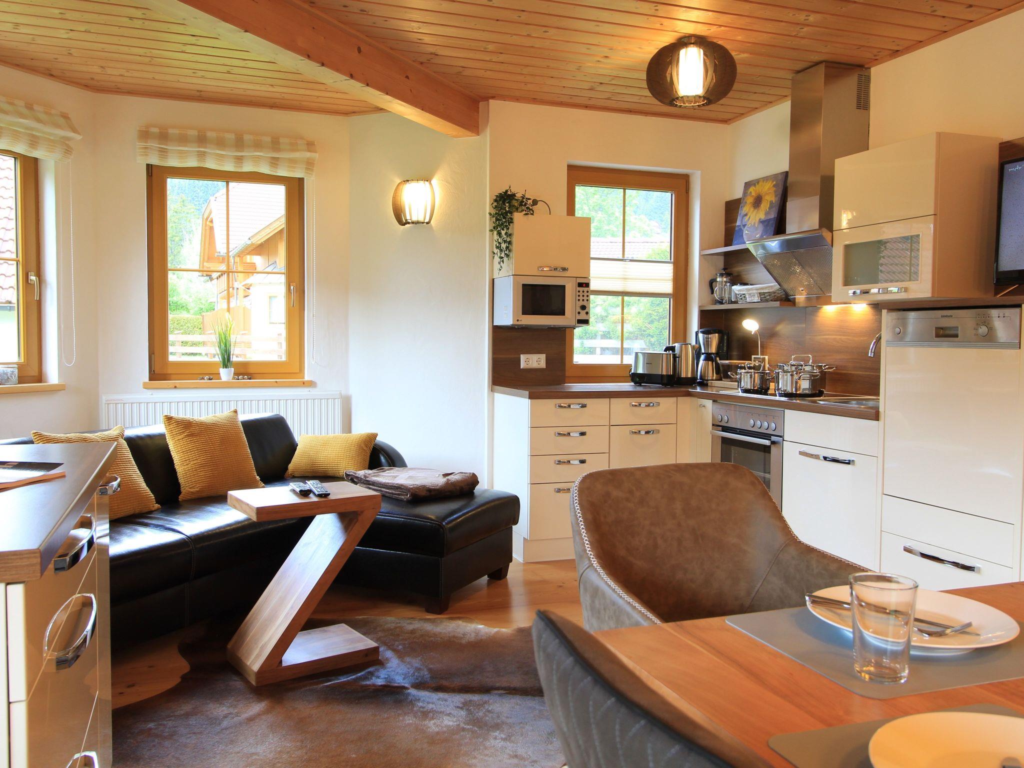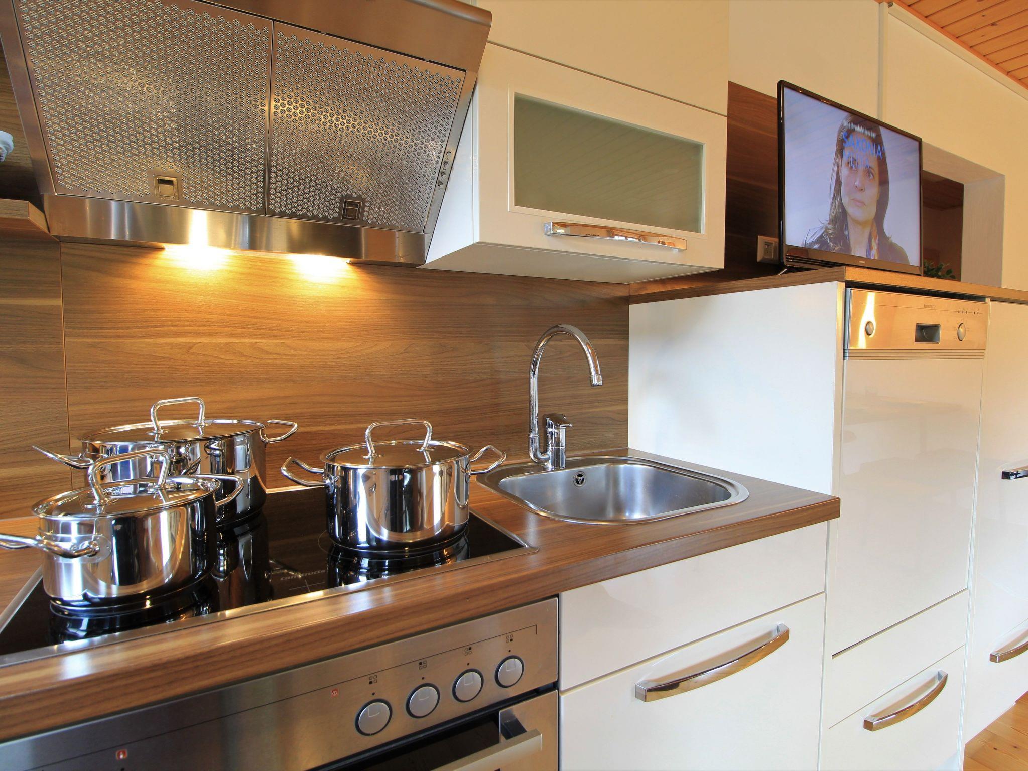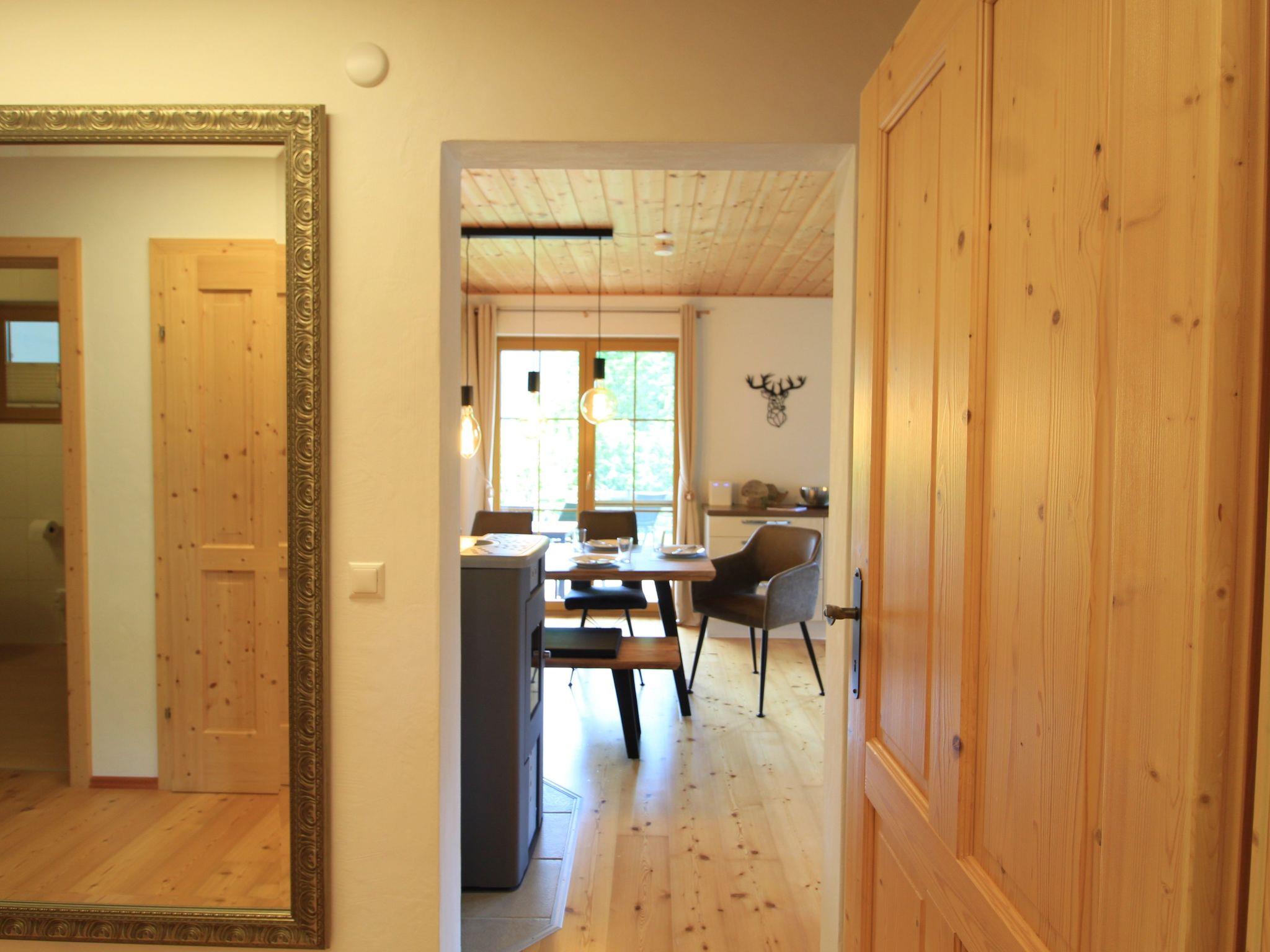 The interior of the flat impresses with two cosy double bedrooms, a complete bathroom with shower and an additional toilet. The large living room, equipped with a sofa bed, offers enough space to relax after an action-packed day. The fully equipped kitchen with oven, dishwasher and pellet stove invites you to cook together.