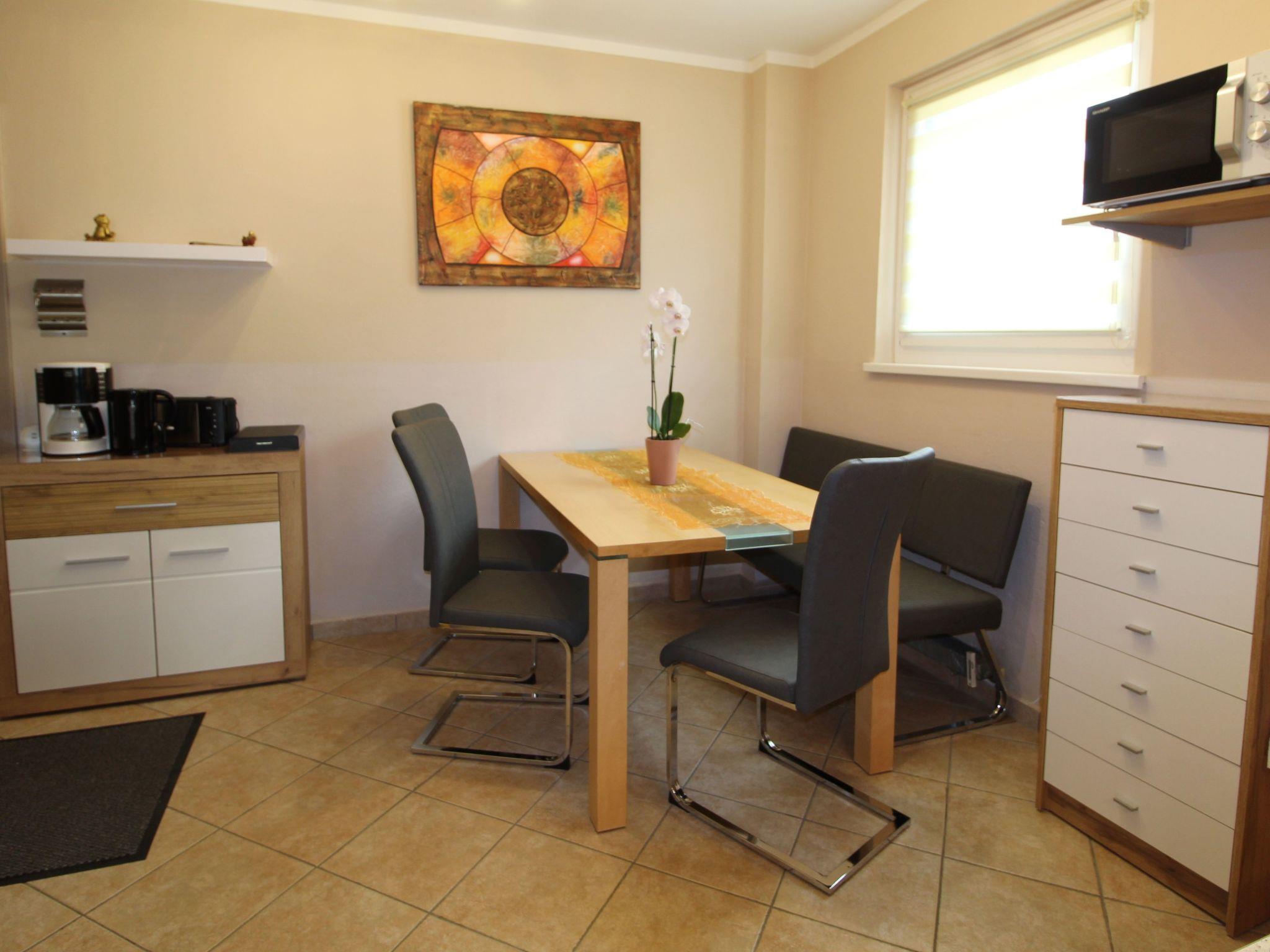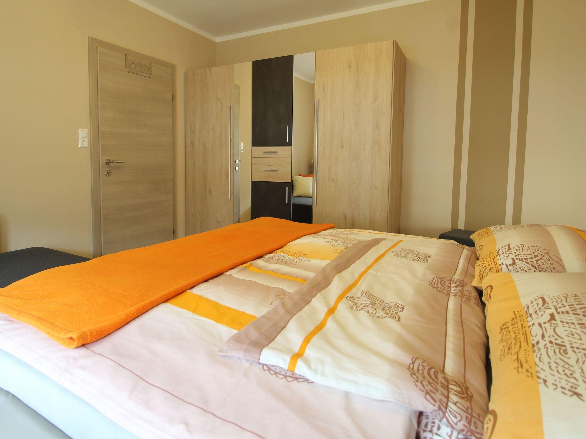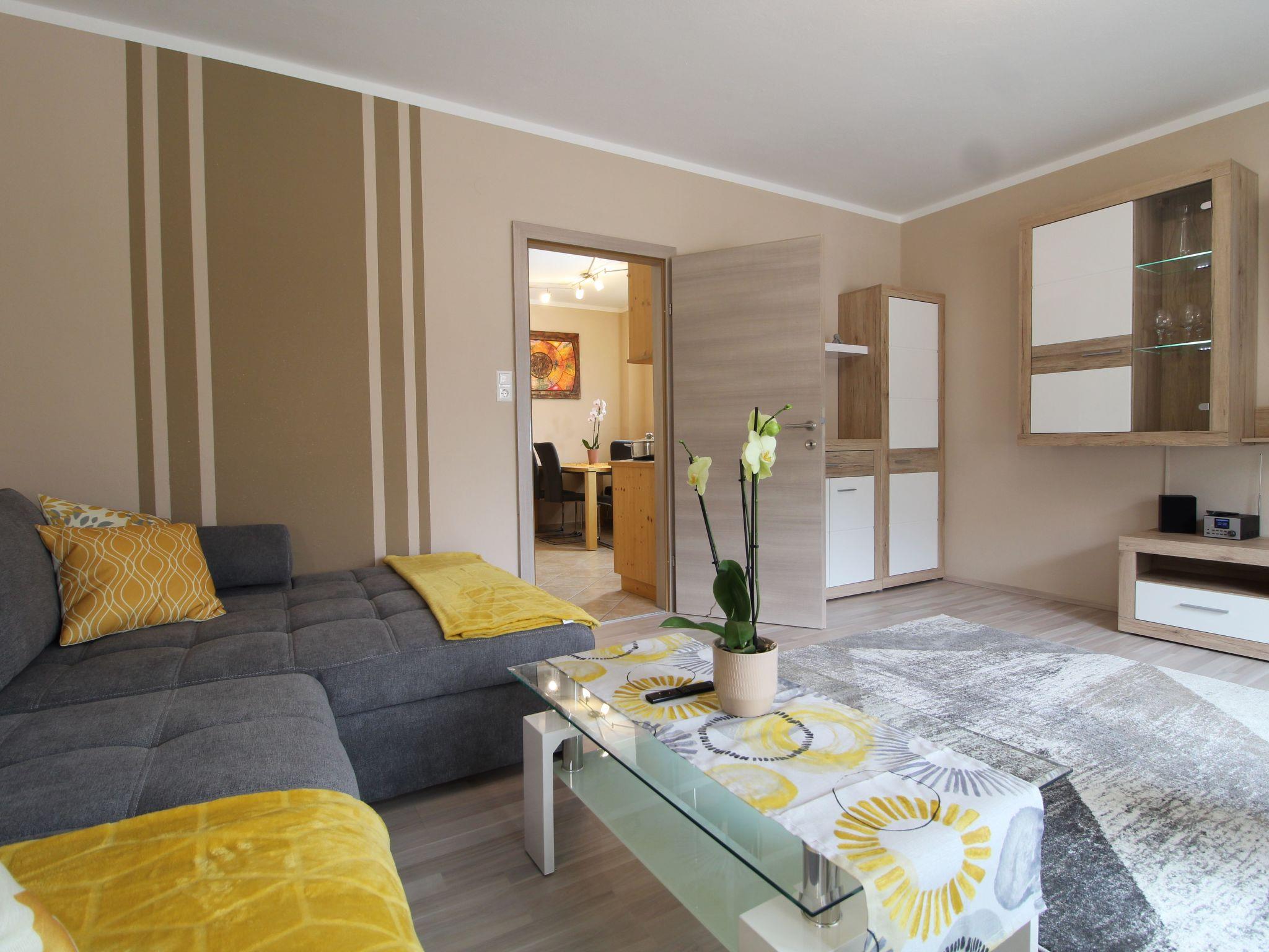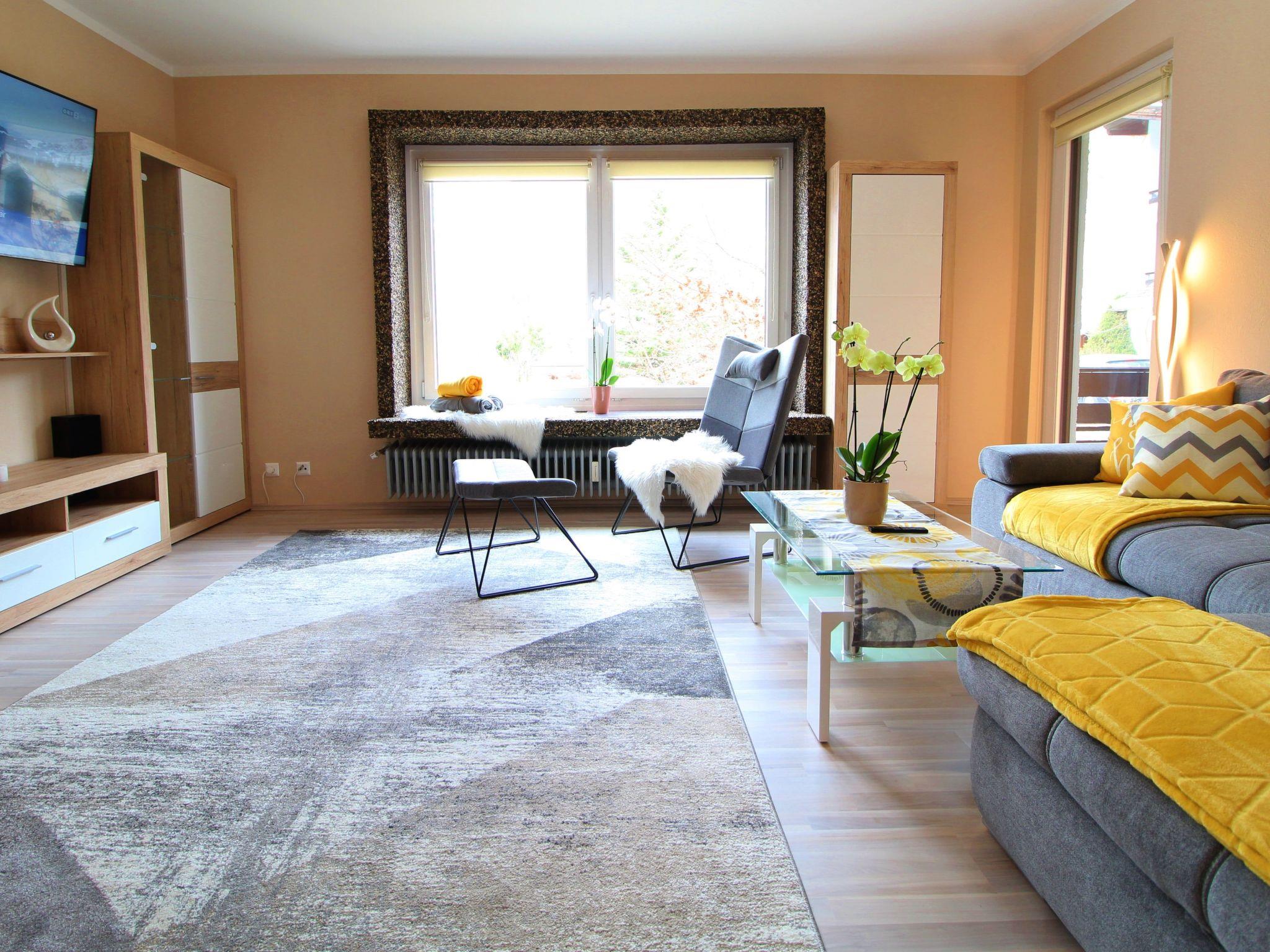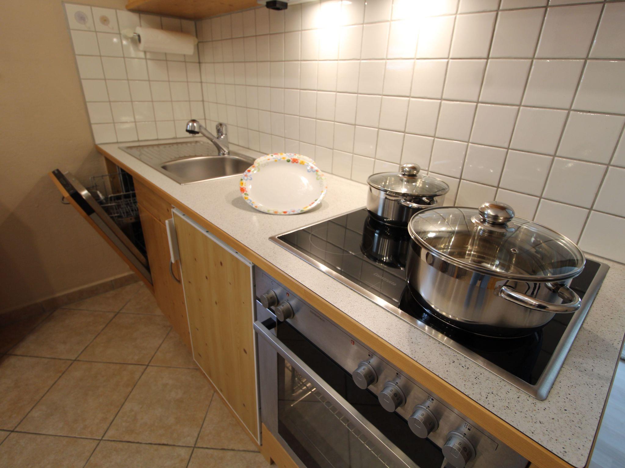 Inside, the flat impresses with its attractive furnishings: a cosy bedroom with an extra bed and balcony, an inviting living room with a pull-out couch, a 55-inch flat-screen satellite TV and another balcony for relaxing evenings. The fully equipped kitchen with dishwasher and microwave invites you to cook together, while the bathroom with shower offers everything you need for a refreshing break after a day in the mountains or at the spa. Guests also have access to a ski cellar and free WLAN.