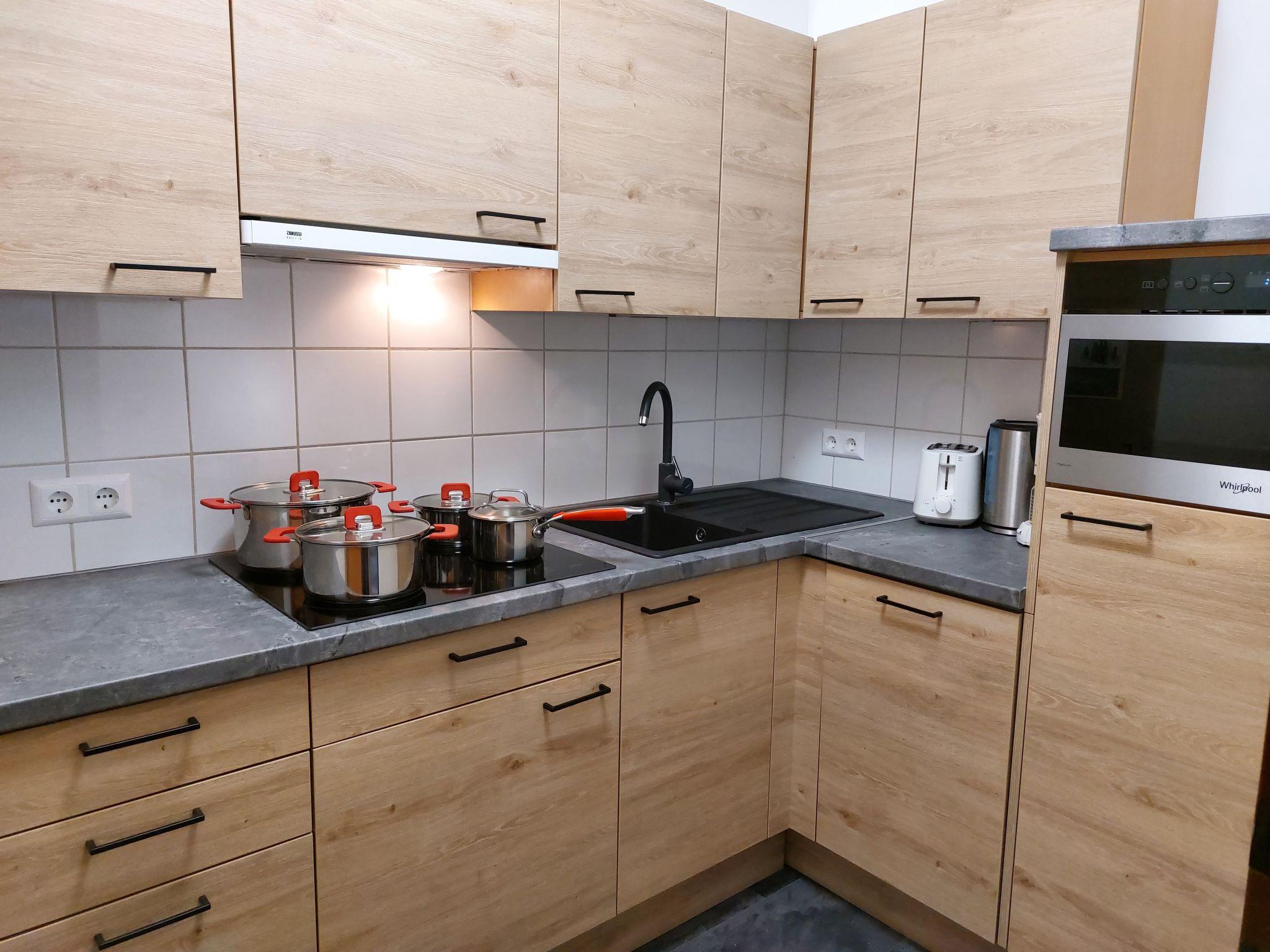 Inside you will find a spacious bedroom with double bed and plenty of wardrobe space, a cosy living room with sofa bed, a fully equipped kitchen for all your culinary needs, and a complete bathroom with bathtub plus an additional WC. The interior is designed to ensure a comfortable stay for you and your family.