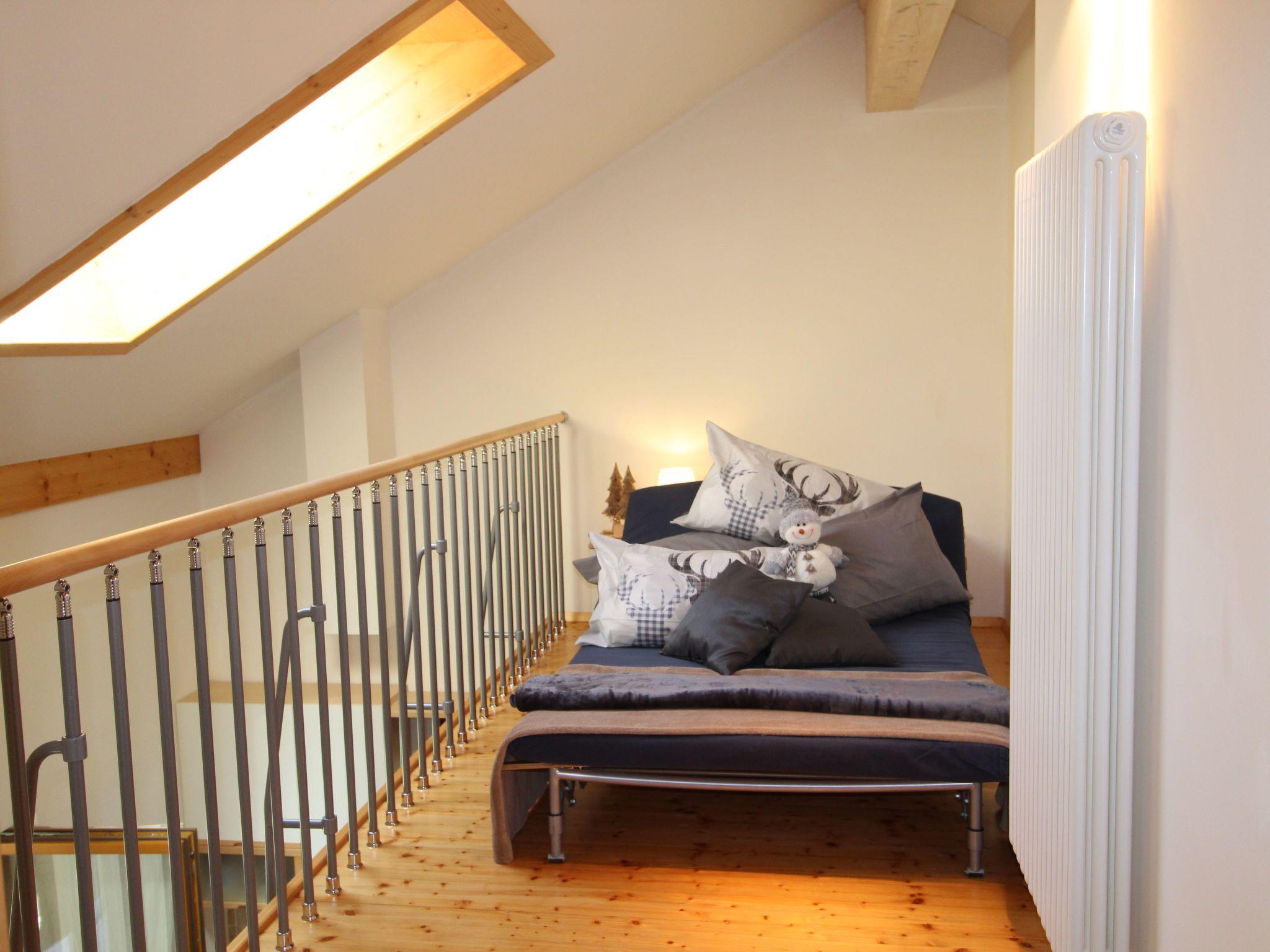 Inside, a cosy and bright ambience awaits you, spread over two levels. The flat has a comfortable living room with an adjoining kitchenette that leaves nothing to be desired - including a dishwasher. The highlight is the large, panoramic balcony, which invites you to linger. There is a bedroom with a double bed and a bathroom with a shower as well as a mezzanine overlooking the living room, which can be reached via a staircase and offers another bedroom with a double bed and a separate WC.