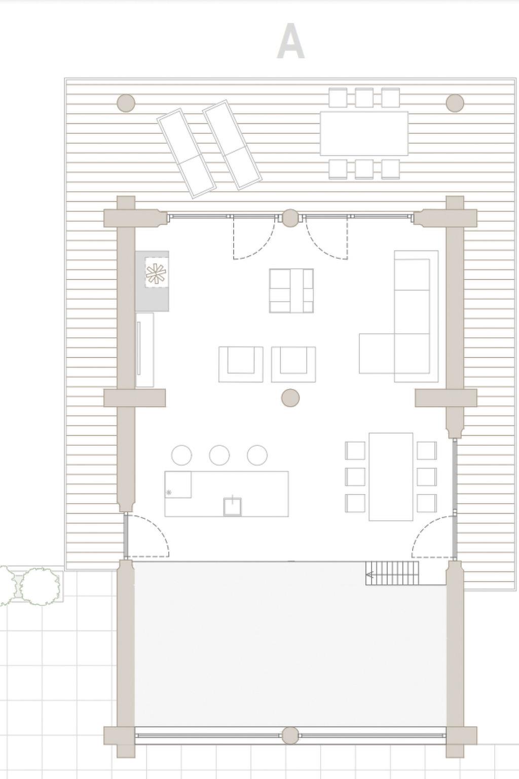 First floor; living / cooking area with a large terrace