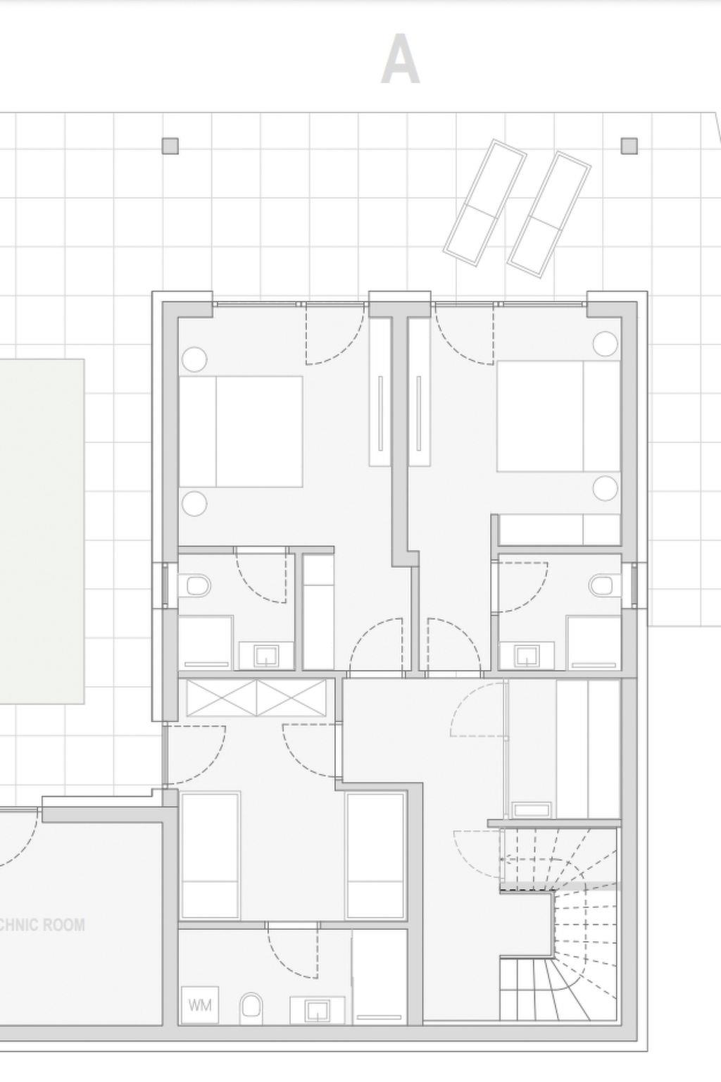 The ground floor area features two double bedrooms with a direct access to terraces with a valley view and a bunk beds bedroom . All bedrooms have its own luxury equipped en suite bathroom. There is also a Finnish sauna in this floor for the guests use.