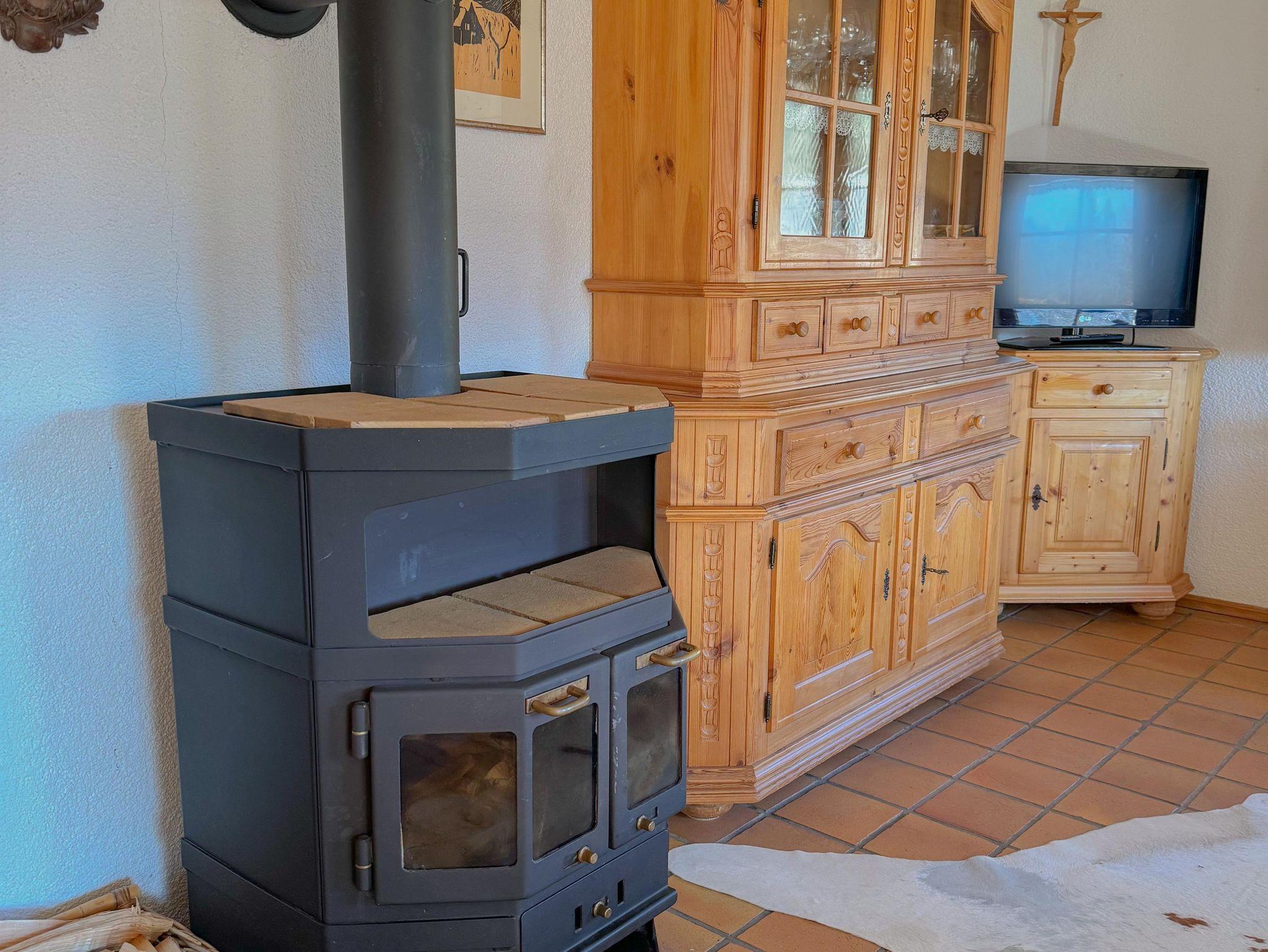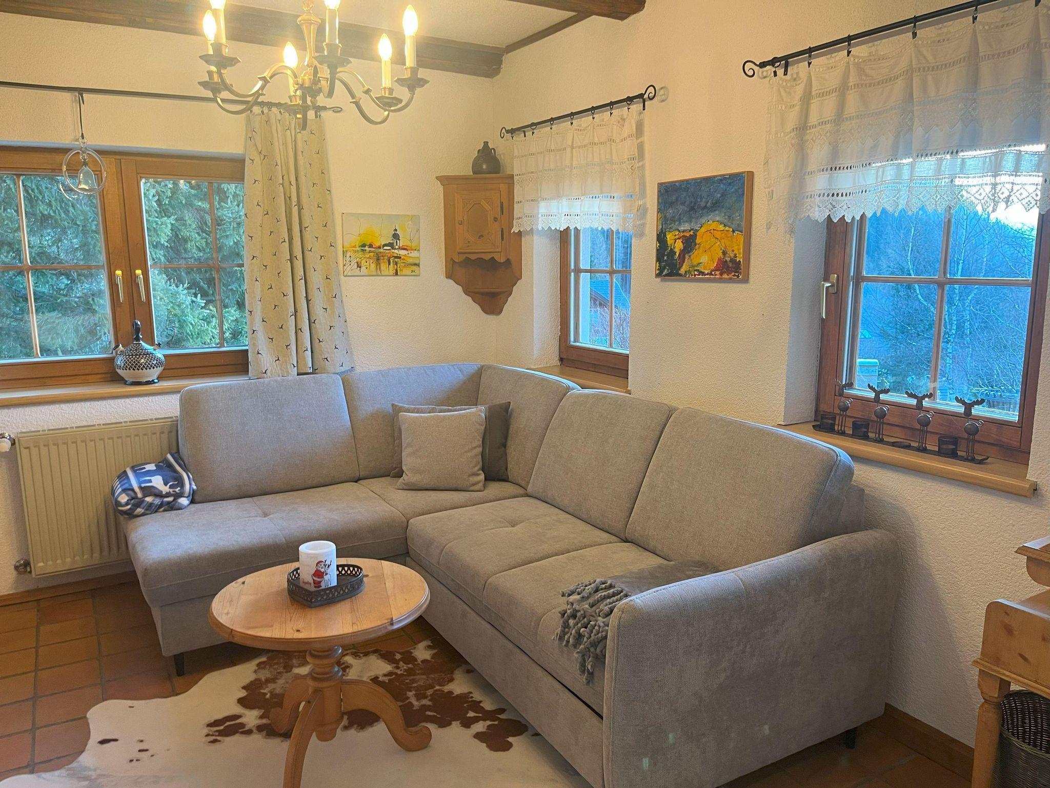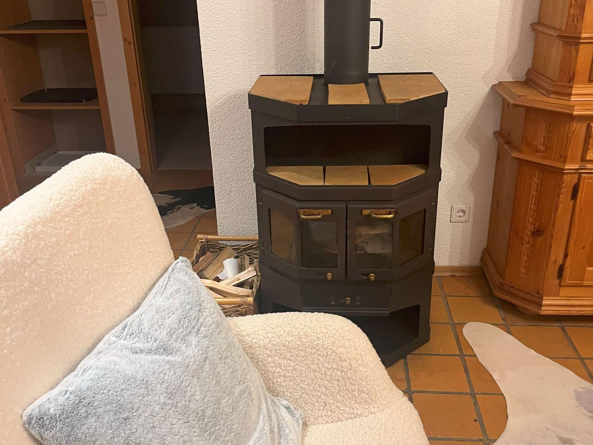 Ein komfortables Wohnzimmer mit gemütlicher Sitzgruppe, die sich im Handumdrehen in ein Doppelbett verwandeln lässt. Für entspannte Abende sorgt ein moderner SAT-Flat-TV. Behaglichkeit pur bietet der zusätzliche Schwedenofen.