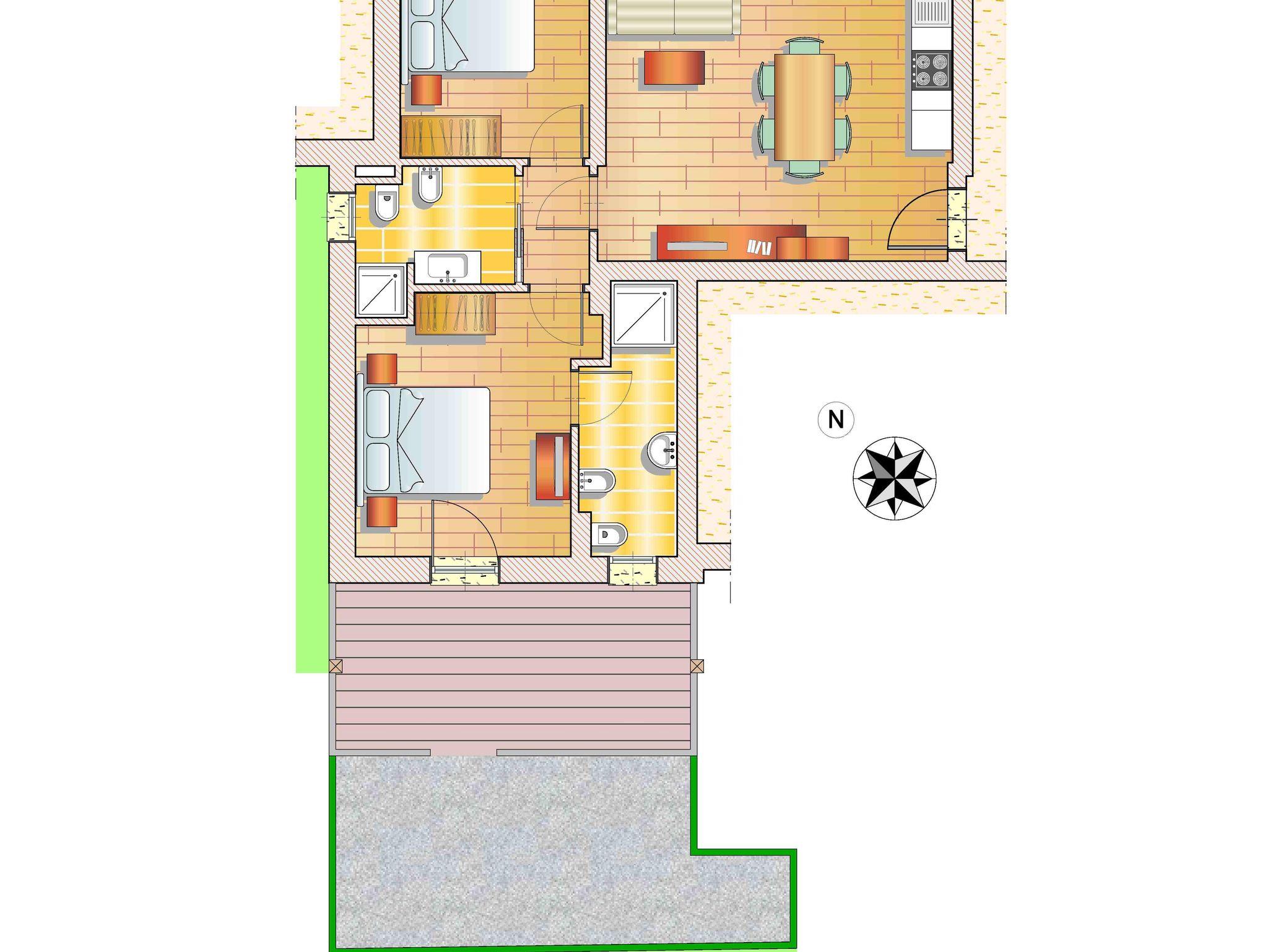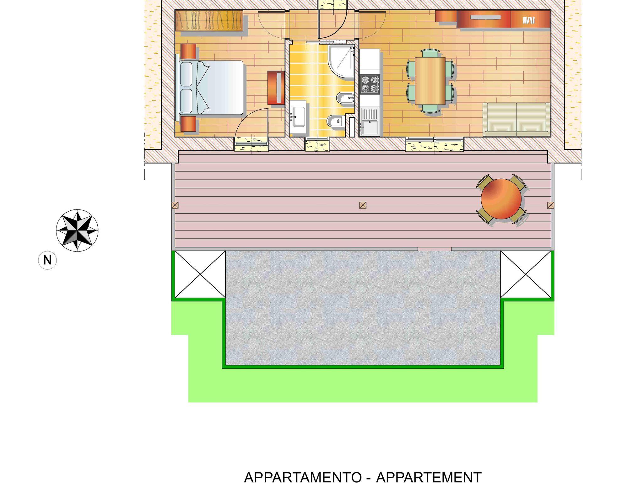 Appartement B - Dreiraumappartement für 4-6 Personen (zirka m² 60) bestehend aus: