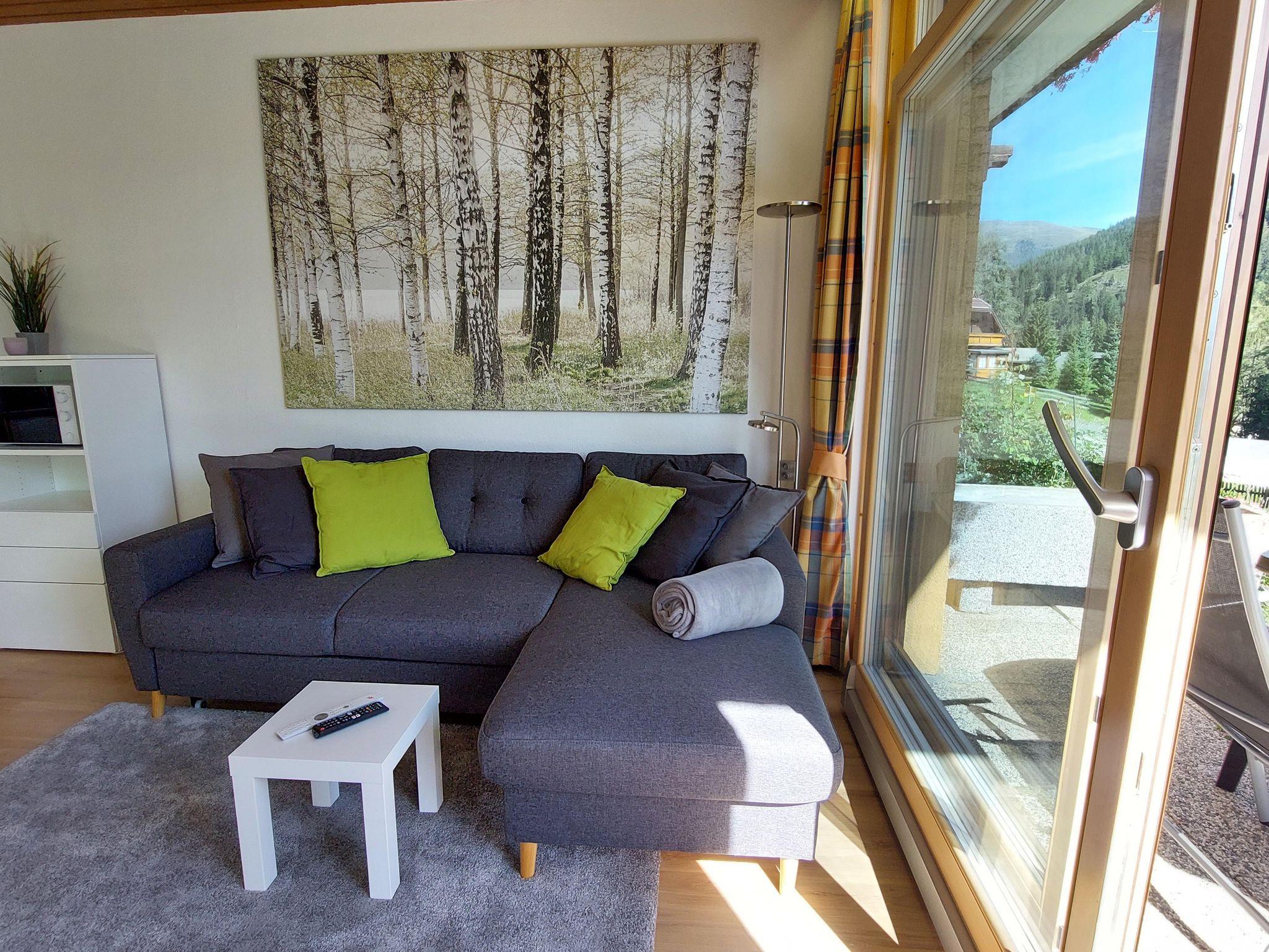 Schöne 2-Zimmer-Wohnung 300 m von der Nockalmbahn und den Skipisten entfernt, ein ausgezeichneter Ausgangspunkt für herrliche Sommerwanderungen. Zwei Schlafzimmer, eines mit Doppelbett, eines mit Etagenbett, nur für Kinder geeignet. Badezimmer mit Dusche, Wohnzimmer mit Küchenzeile und Schlafsofa, große Terrasse mit Blick auf den Garten. Externer Parkplatz und Skiraum.