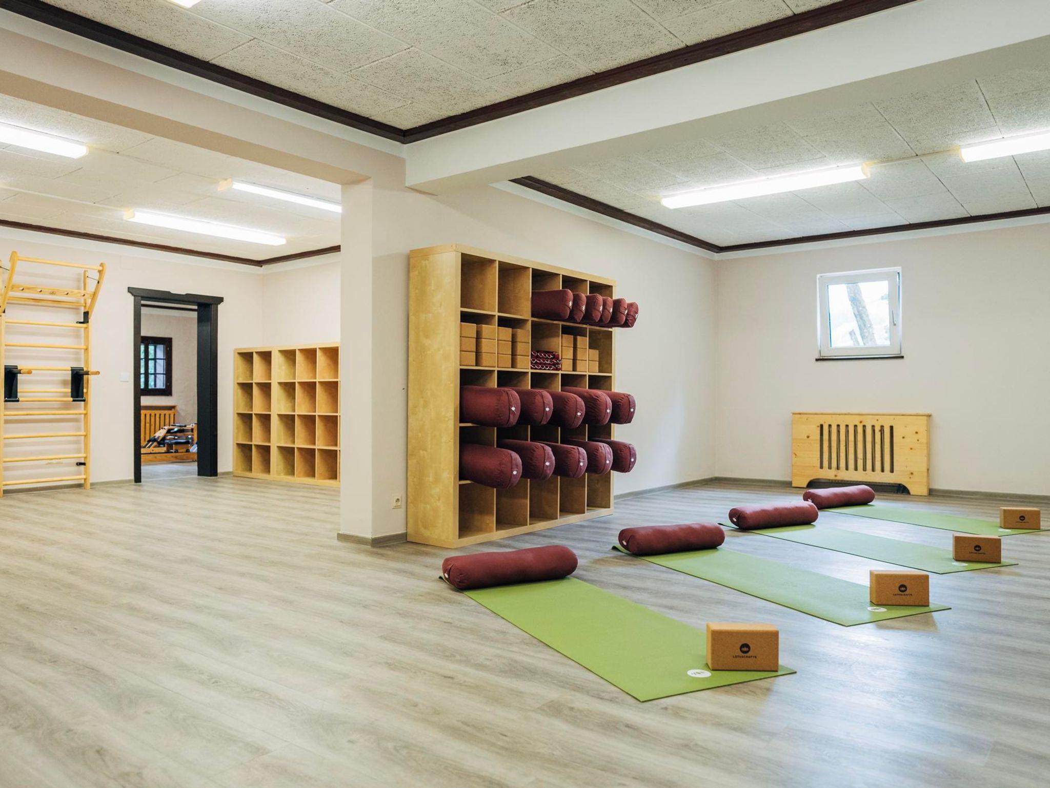Im Yoga- und Kraftraum trainieren Sie mit dem eigenen Körpergewicht – an hochwertigen Holzgeräten von NOHrD. Für Ihre Yogaeinheit stehen bequeme Matten von Lotuscrafts bereit. Zwift-Bikes bringen Schwung in Ihr individuelles Bewegungserlebnis.