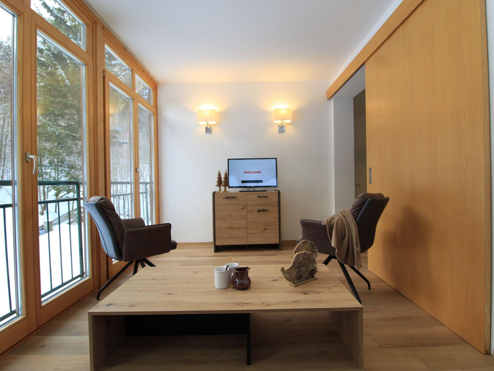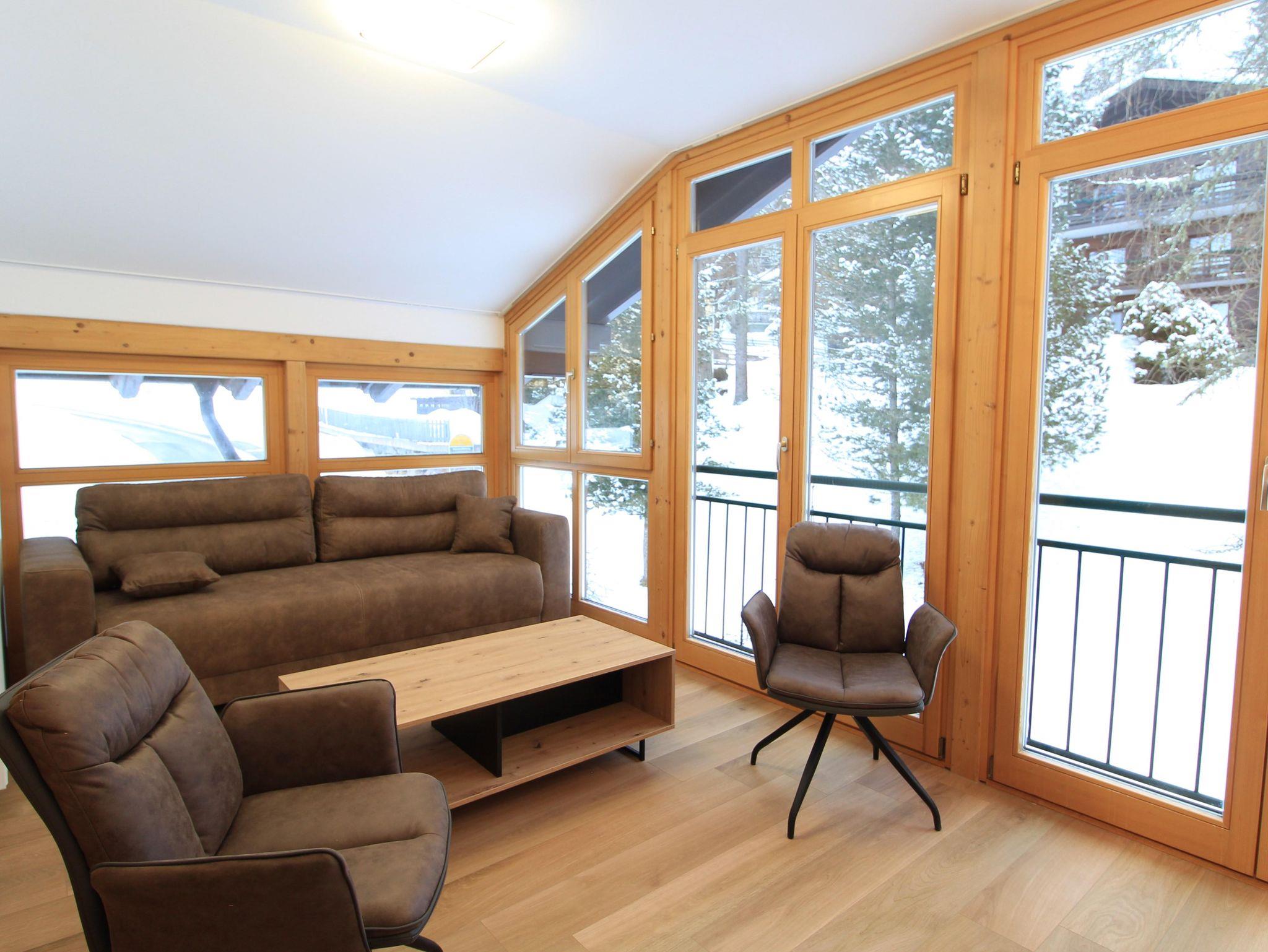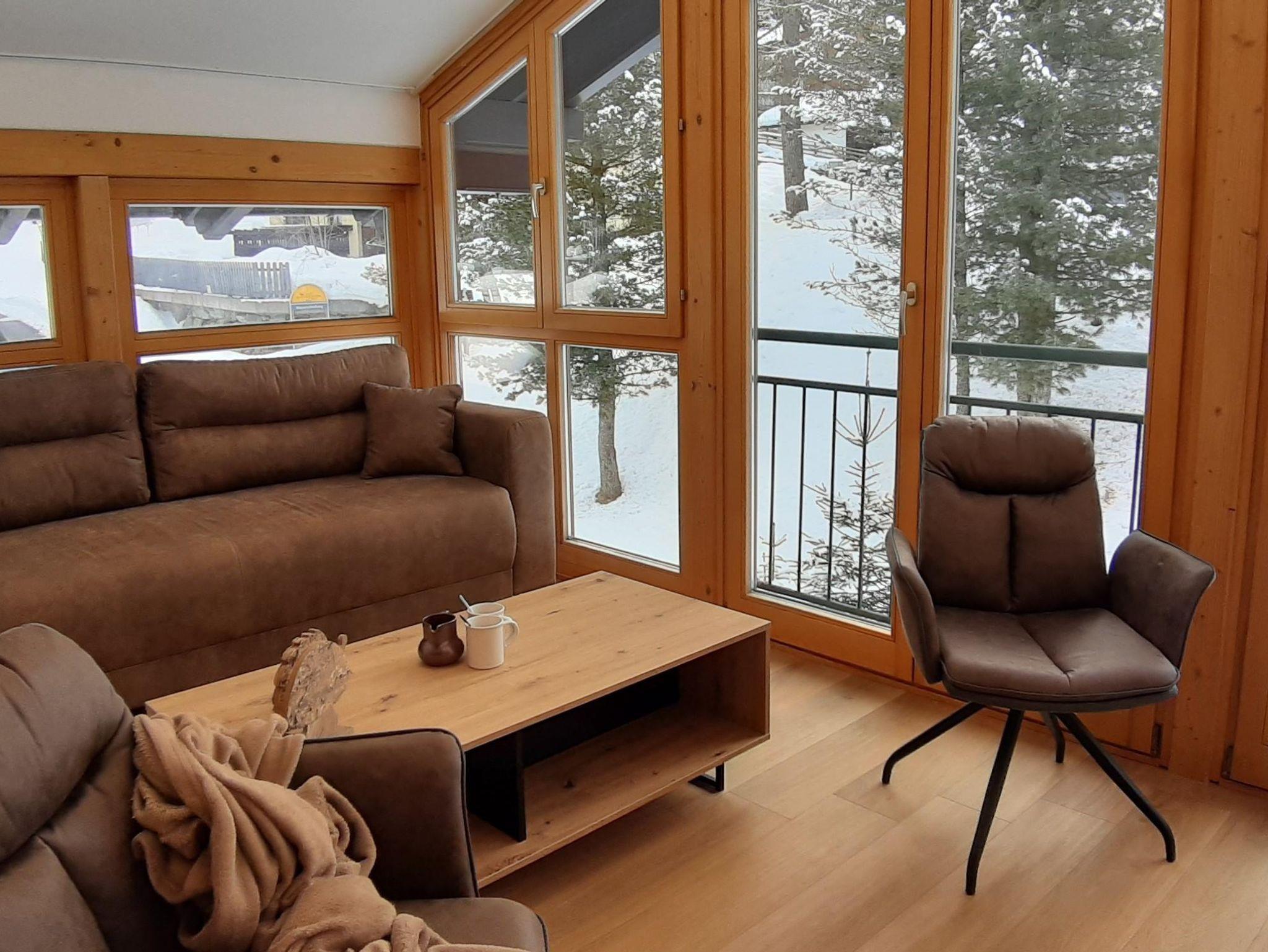 Haus mit 5 Wohnungen in panoramischer Lage. Die Skipiste ist gerade über der Strasse.
