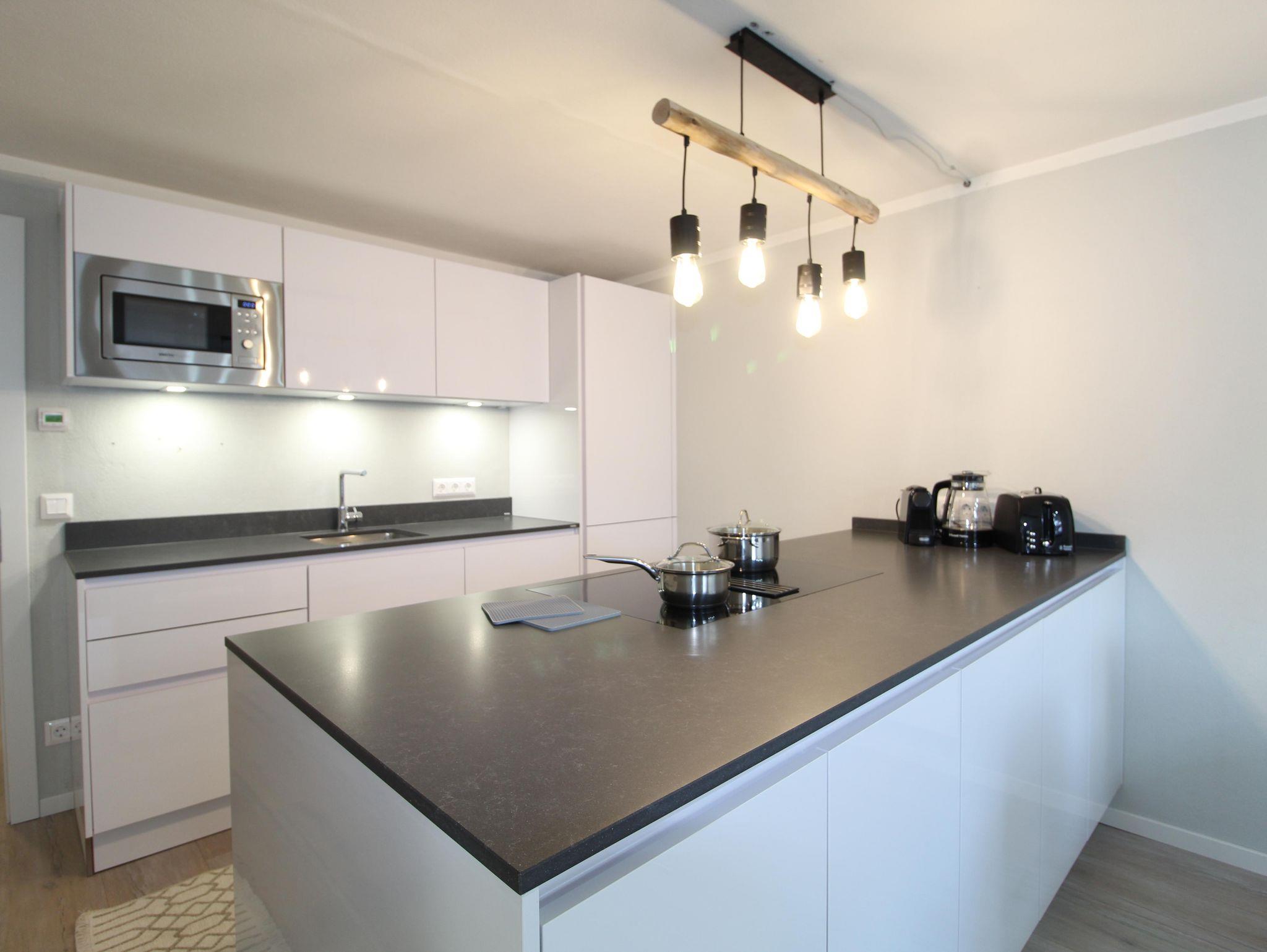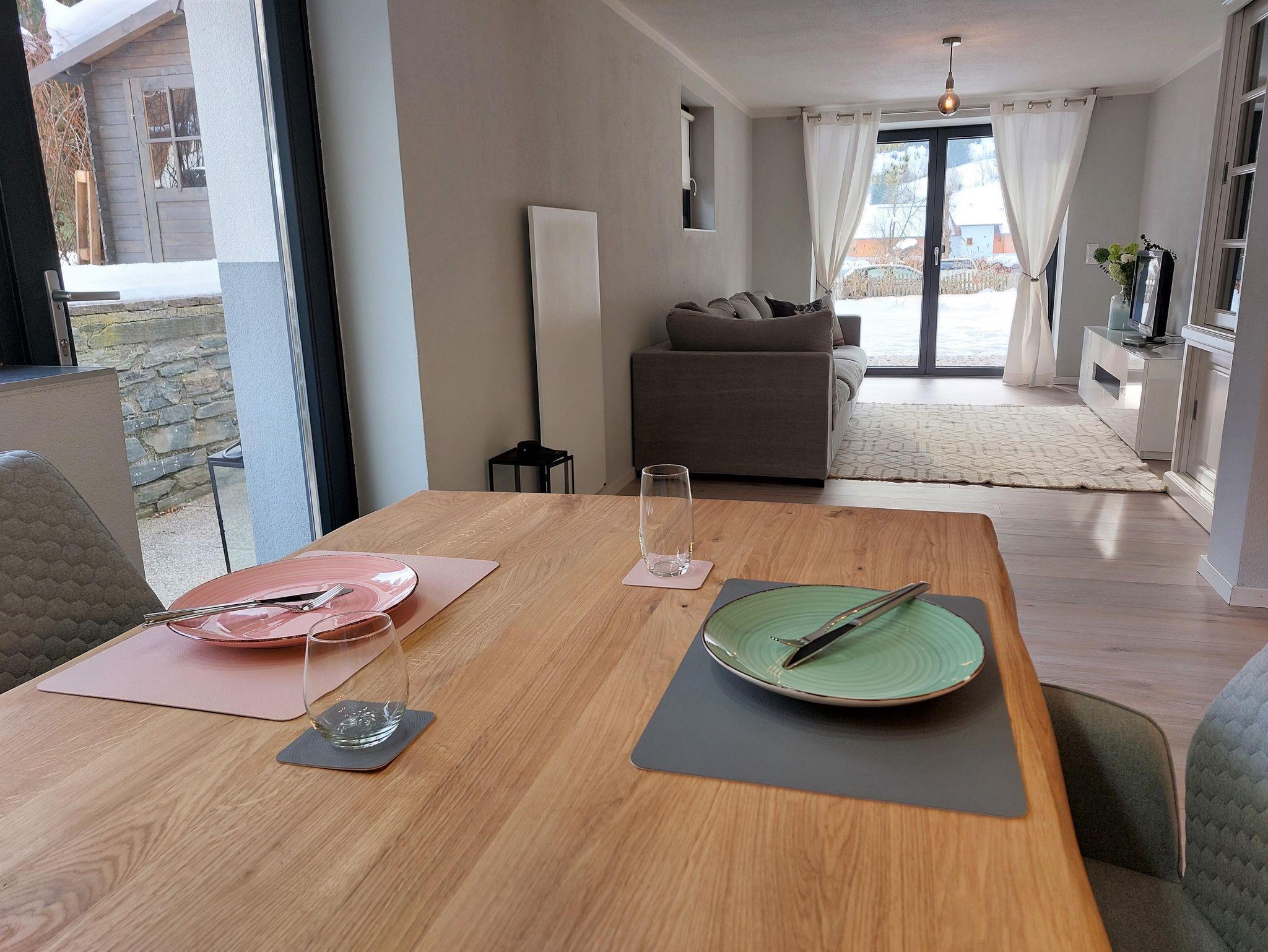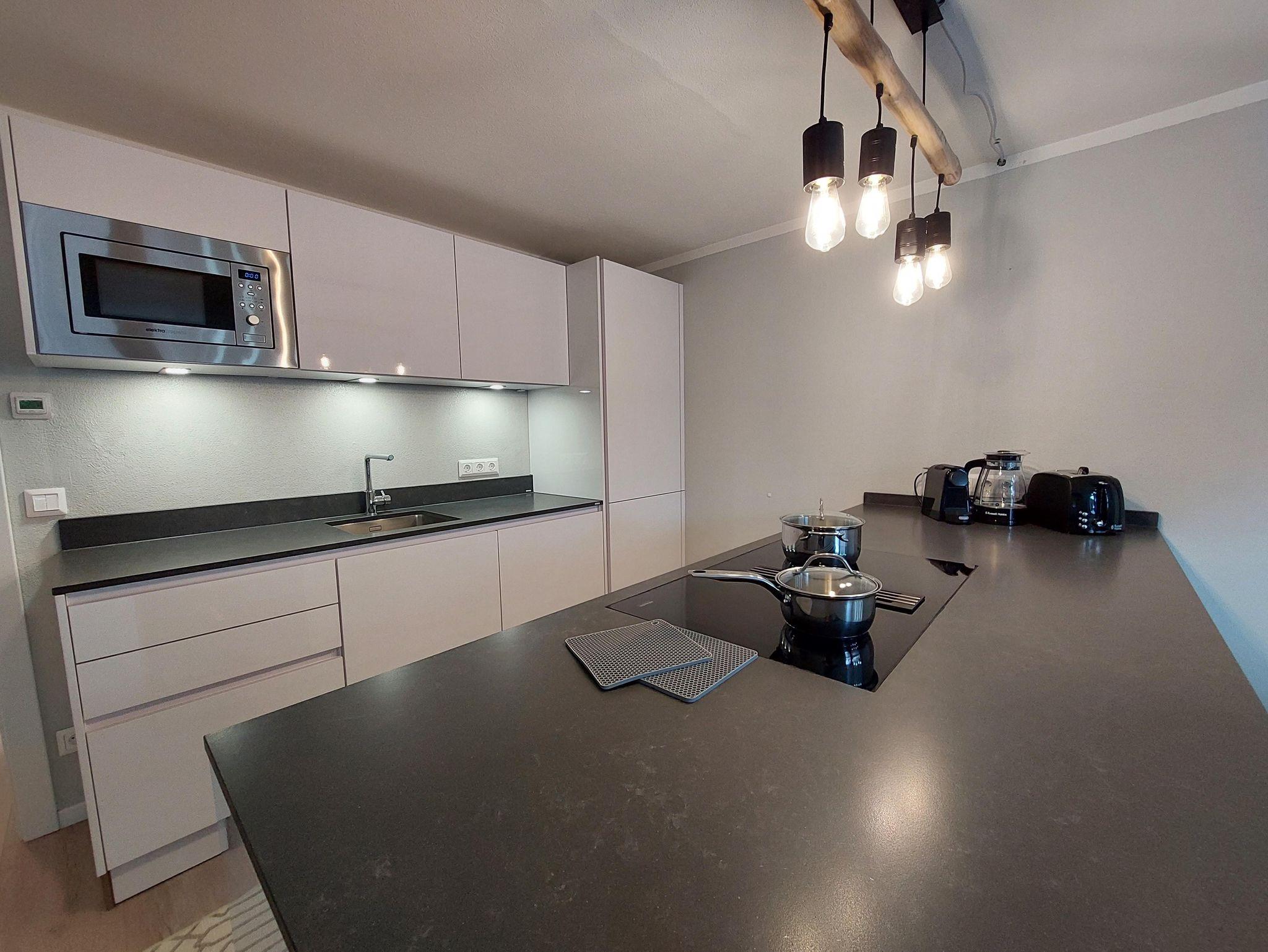 Diese gemütliche Wohnung hat; eine offene Küche mit Miele Haushaltsgeräte: Geschirrspüler, Mikrowelle, Backofen, Induktionsplatte, Dunstabzugshaube, Toaster, Wasserkocher und Nespresso Kaffeemaschine. Eine wunderbare, gemütliche Schlafcouch, auf der Sie sich nach einem Tag in der Natur ausruhen können. Ein Esstisch mit 4 Stühlen, an dem Sie essen und etwas trinken können. Ein Boxspringbett für romantische Nächte und ein Badezimmer en-suite mit Dusche, WC, Kosmetikspiegel und Föhn. Es gibt auch eine gemütliche Südterrasse mit Blick auf die Berge und einen Sitzbereich neben dem Garten, so dass Sie die schöne Umgebung weiterhin genießen können, während Sie einen Snack und ein Getränk genießen und abends den atemberaubenden Sternenhimmel beobachten.
