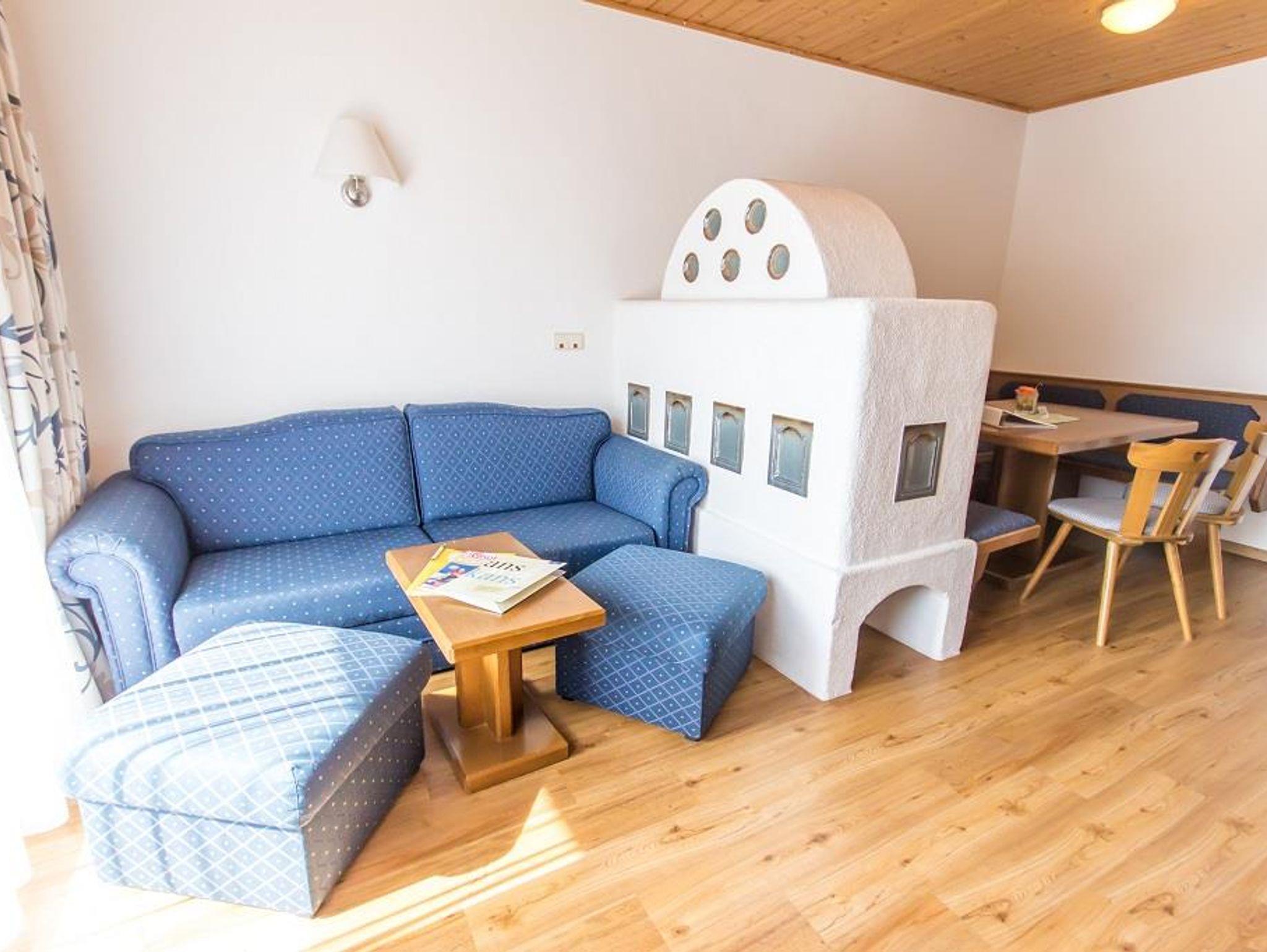 bestehend aus zwei Schlafräumen, einem Wohnraum mit Kachelofen und Ausziehcouch, Kochnische mit Geschirrspüler, Espresso Kaffeemaschine und Mikrowelle, Bad, WC getrennt LCD-TV mit Radio, Süd- und Westterrasse, Nichtraucherappartement