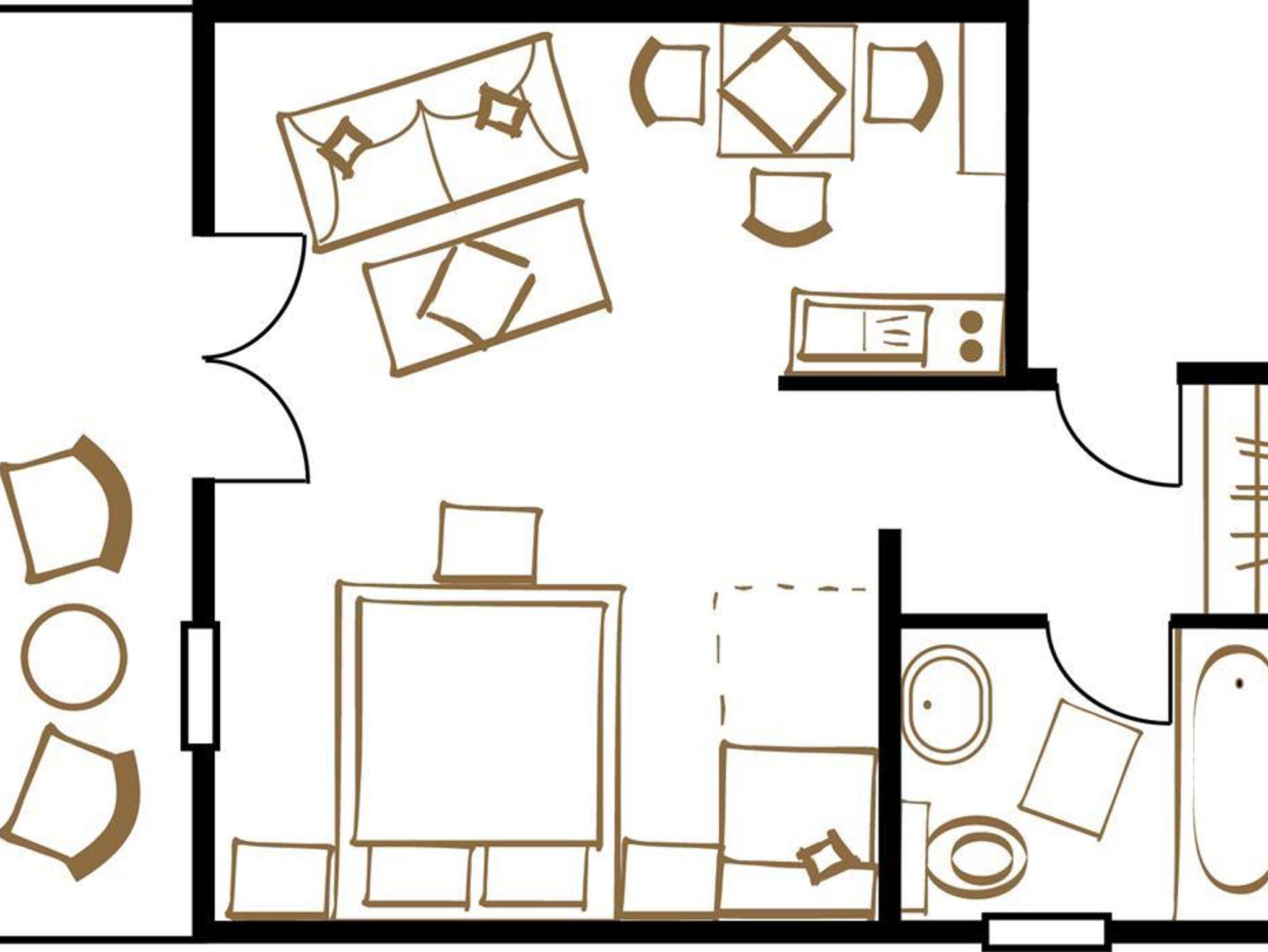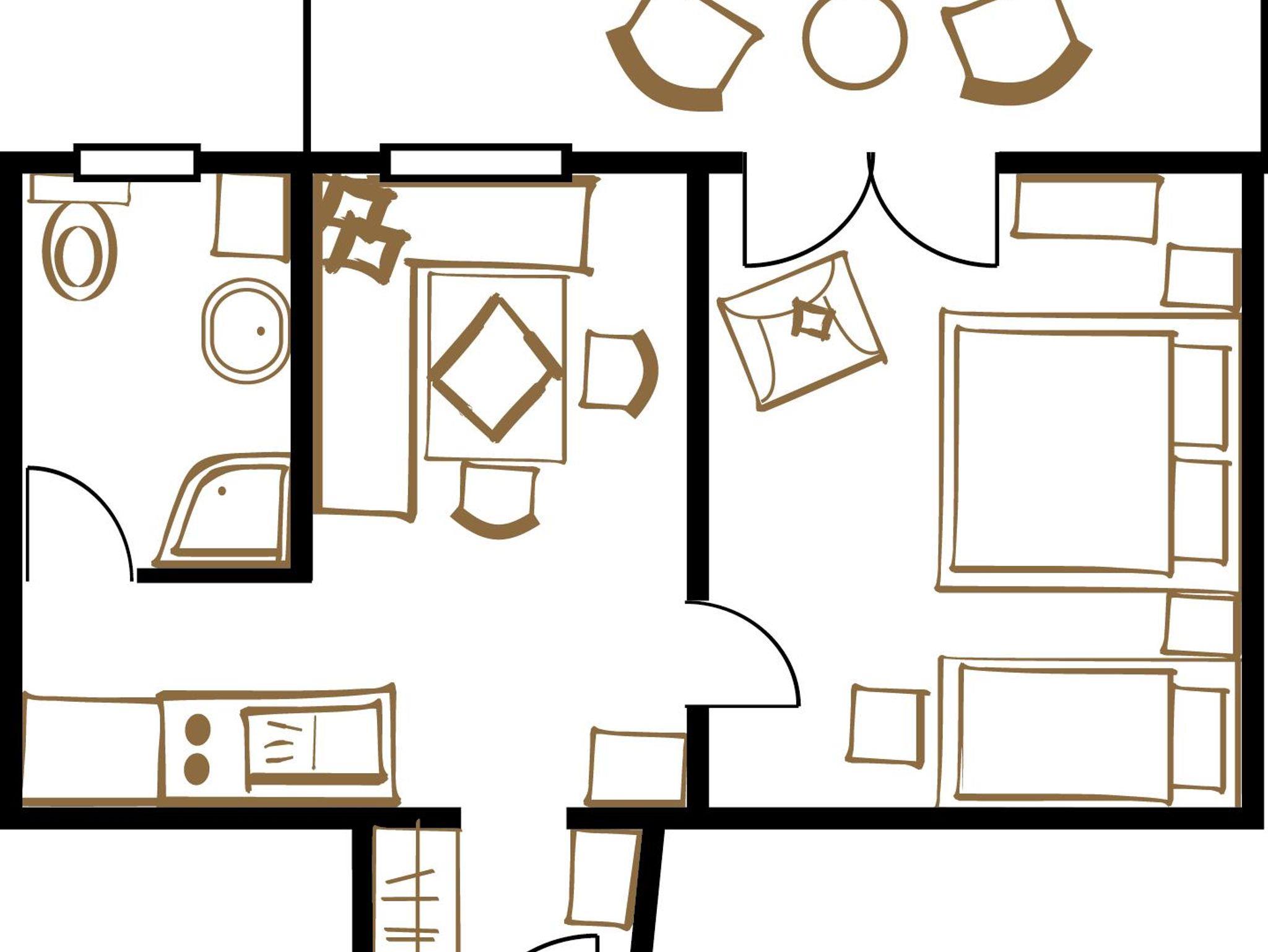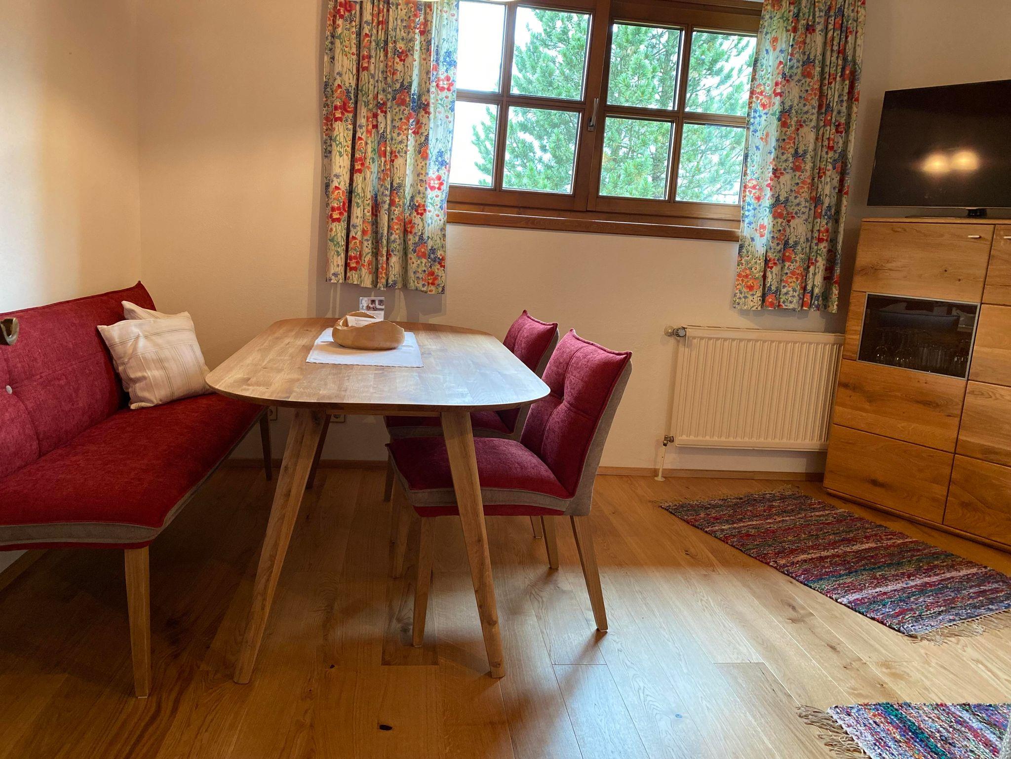 Ausstattung: großzügiger Wohn-Schlafraum mit Doppelbett und ausziehbarer Sitzgruppe, Kochnische mit Esstisch, Bad mit Badewanne mit Duschwand und Toilette, Balkon mit Tisch und Stühlen und Liegestühlen, TV mit Sat und Radio Frühstück: im Kreise der Lieben in der Ferienwohung mit hauseigenen Produkten oder in Gesellschaft im benachbarten Hotel Kärntnerhof