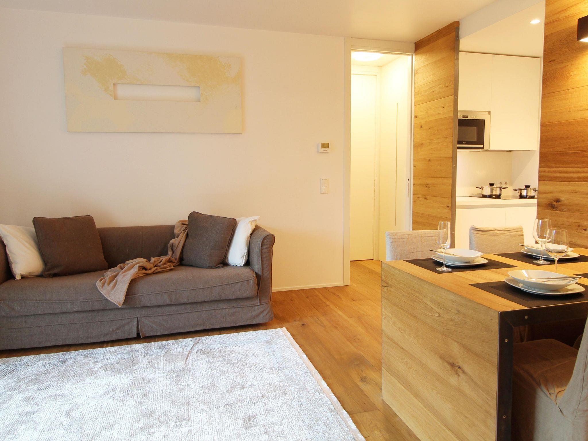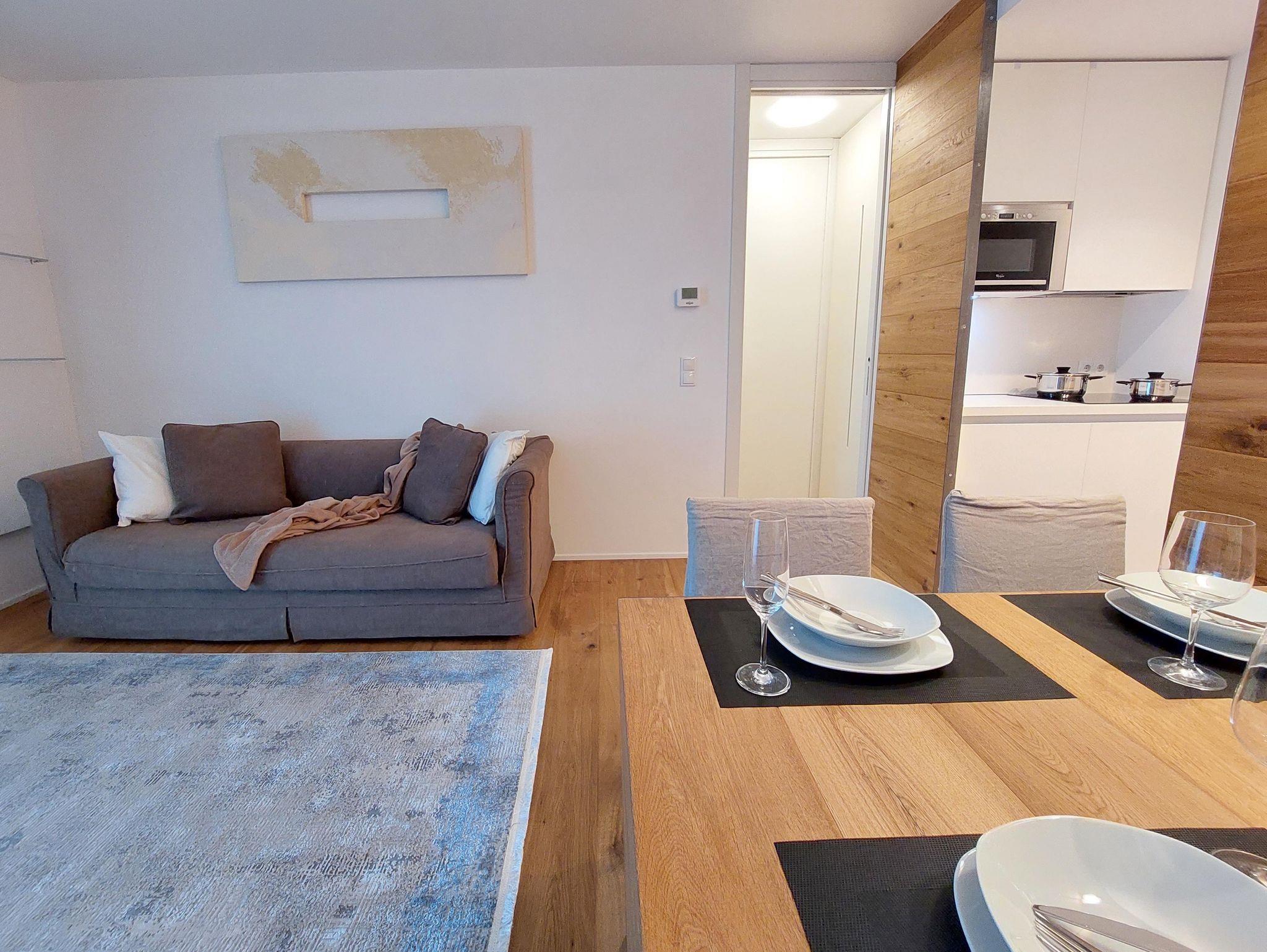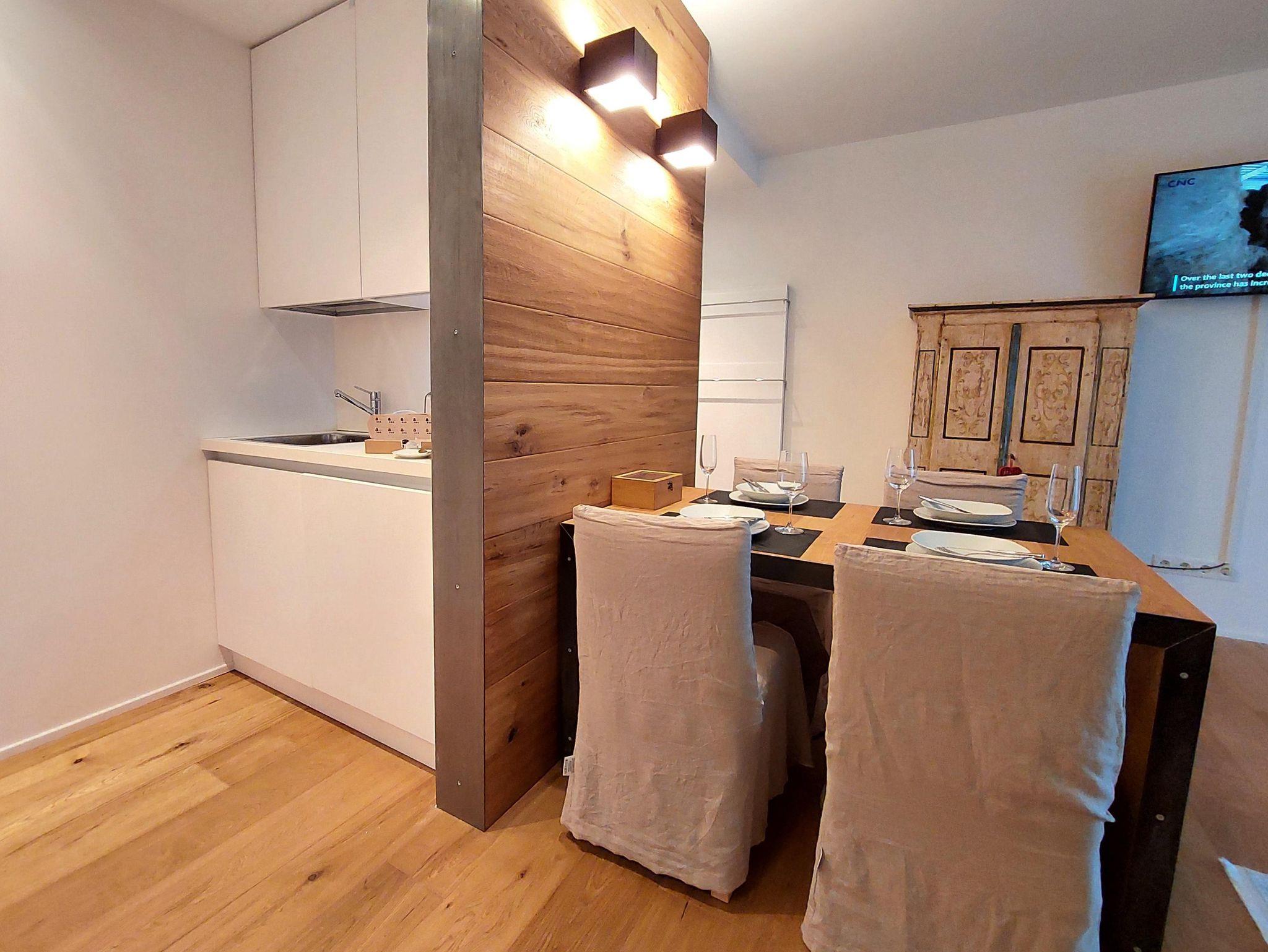 Charmantes Apartment im 1. Stock, nur einen Steinwurf von der Skipiste entfernt, in Panoramalage. Ausgestattet mit neutralen Farben und Naturholz, mit einem wunderschönen Holzofen für Winterabende und einem großen Balkon mit Blick auf das Tal zum Entspannen im Freien im Sommer. Küche ausgestattet mit Induktionskochfeld, Mikrowelle, Kühlschrank, Geschirrspüler, Nespresso-Kaffeemaschine. Badezimmer mit Dusche und Bidet. Überdachter Parkplatz.
