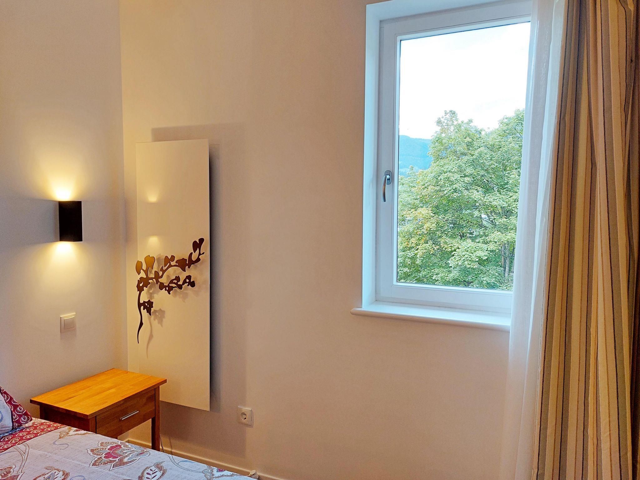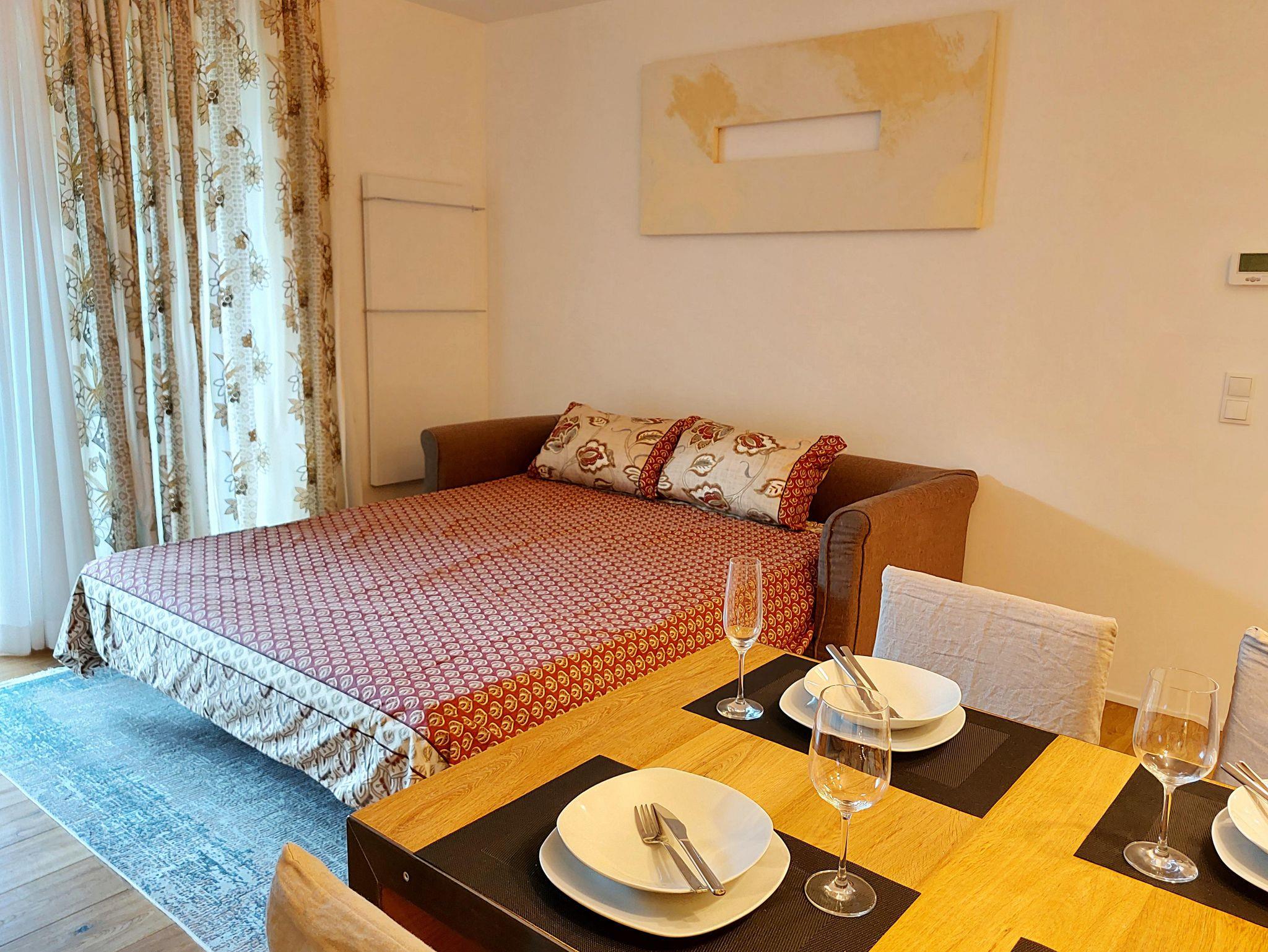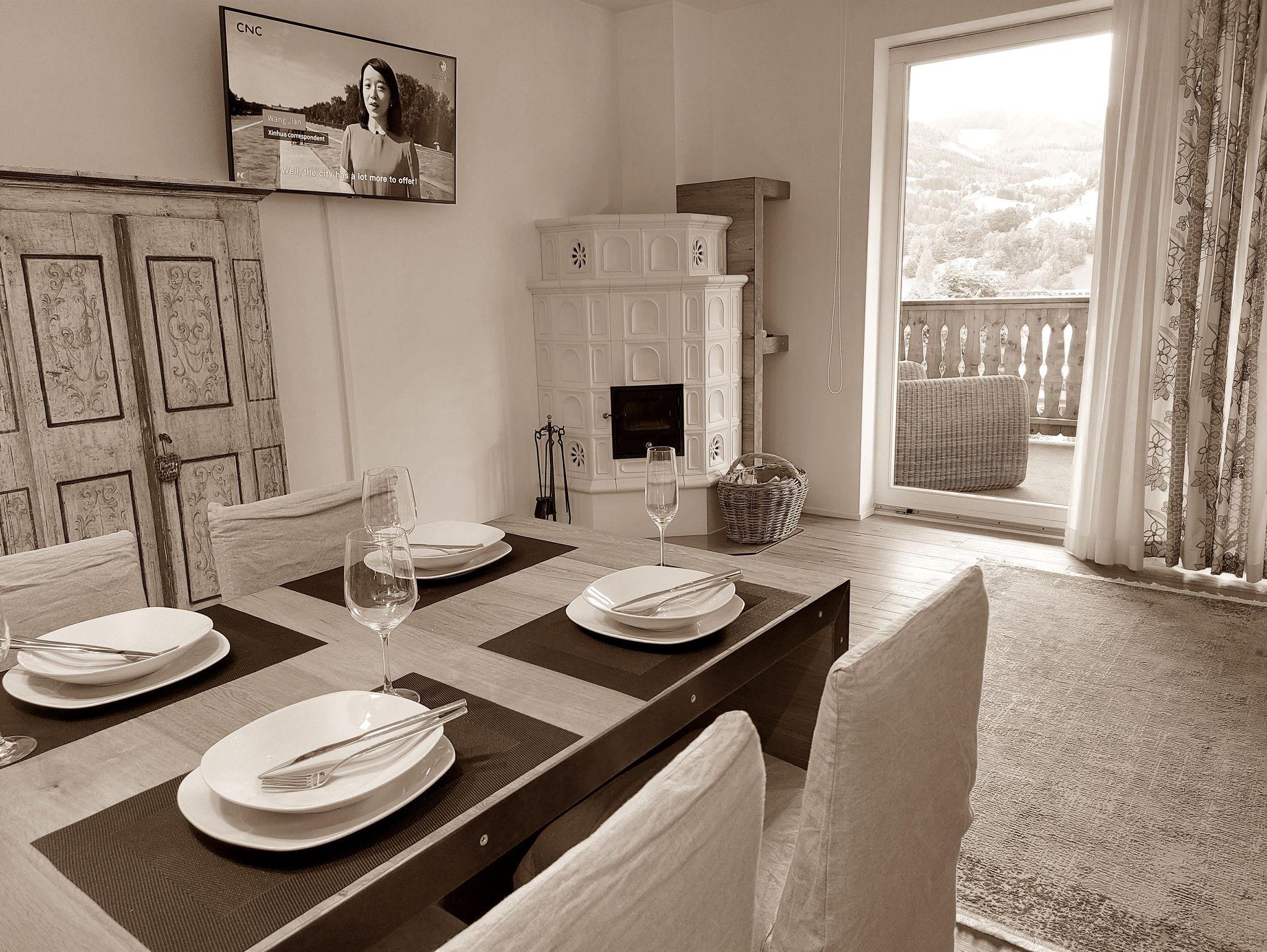 Charmantes Apartment im 1. Stock, nur einen Steinwurf von der Skipiste entfernt, in Panoramalage. Ausgestattet mit neutralen Farben und Naturholz, mit einem wunderschönen Holzofen für Winterabende und einem großen Balkon mit Blick auf das Tal zum Entspannen im Freien im Sommer. Küche ausgestattet mit Induktionskochfeld, Mikrowelle, Kühlschrank, Geschirrspüler, Nespresso-Kaffeemaschine. Badezimmer mit Dusche und Bidet. Überdachter Parkplatz.