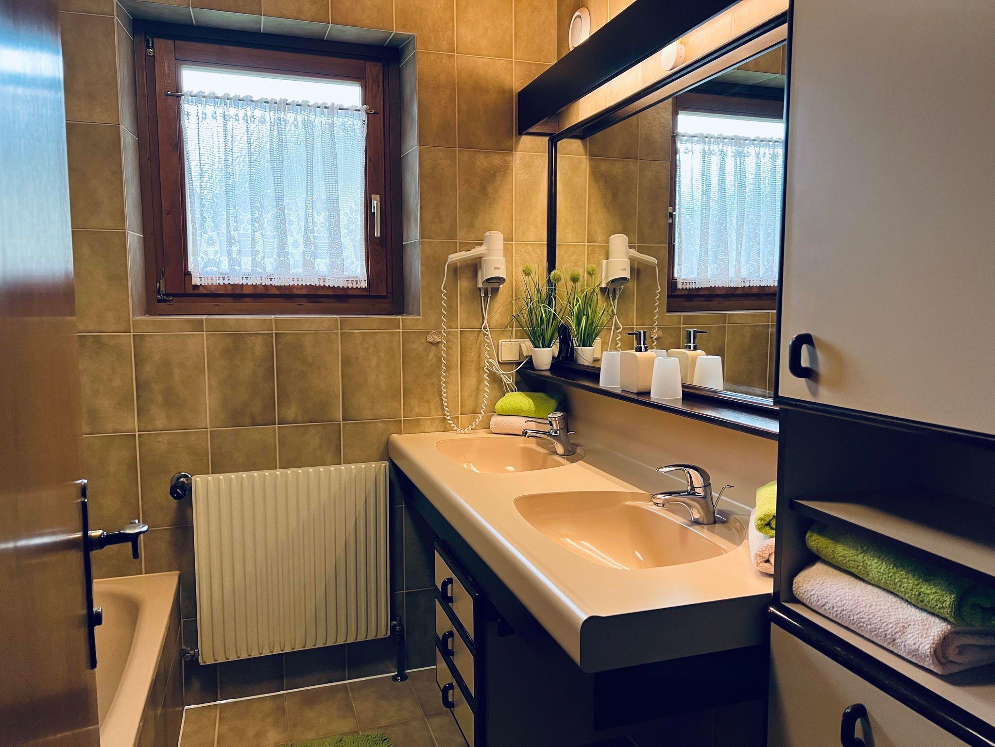Appartement mit ca. 80 m2, 1 Schlafzimmer mit zusätzlicher Ausziehcouch, 1 Wohnschlafzimmer mit Ausziehcouch, Essecke, Vorraum mit großer vollausgest. Küche mit 4 Plattenceranfeld, Backrohr, Geschirrspüler, Microwelle, Kühlschrank mit Gefrierfach, Töpfen und Essbesteck, 2 Bäder mit Doppelwaschtisch, 2 WC´s, 2 SAT-TV, Radio, 2 Südbalkone. W-LAN kostenlos.