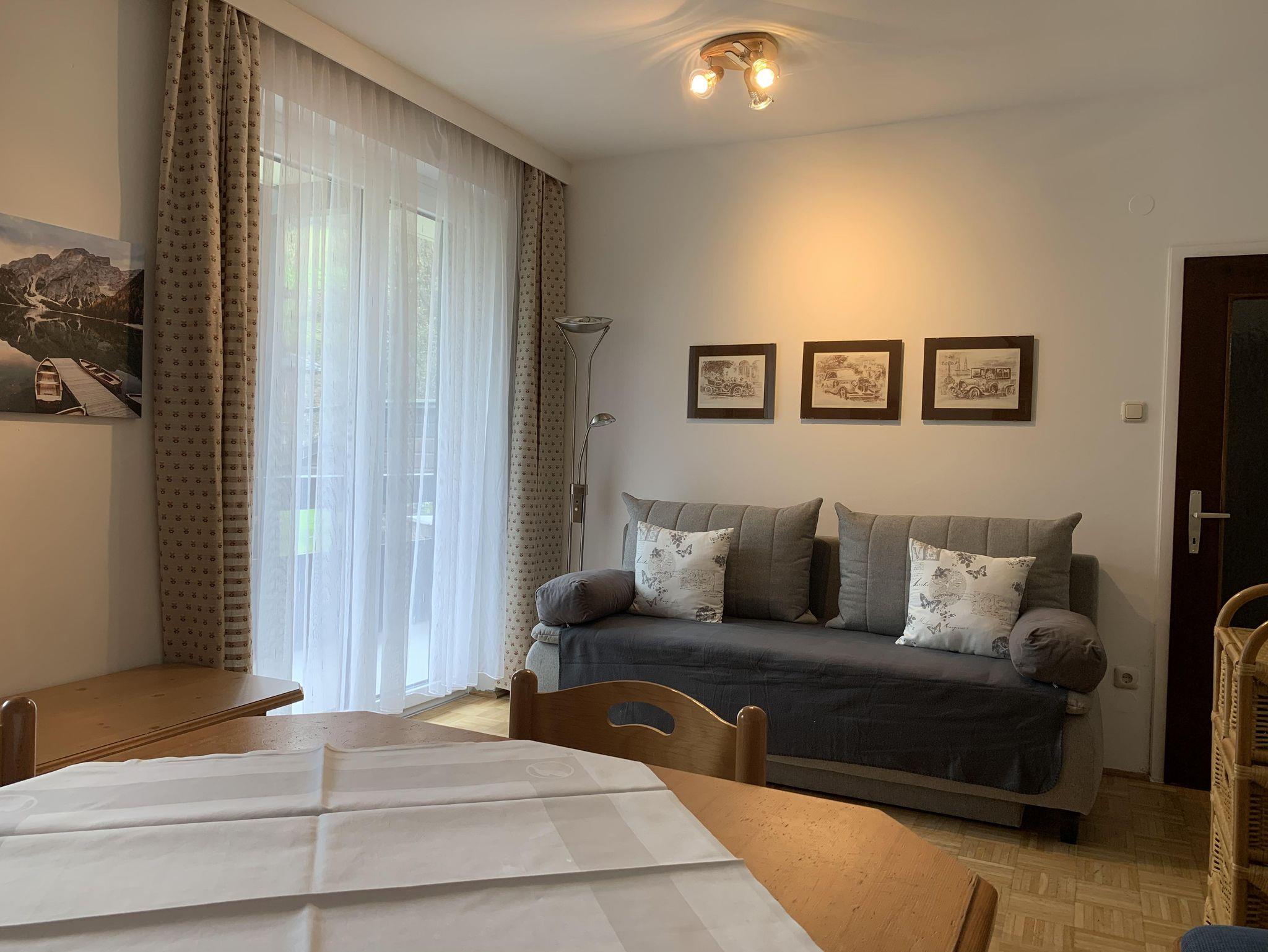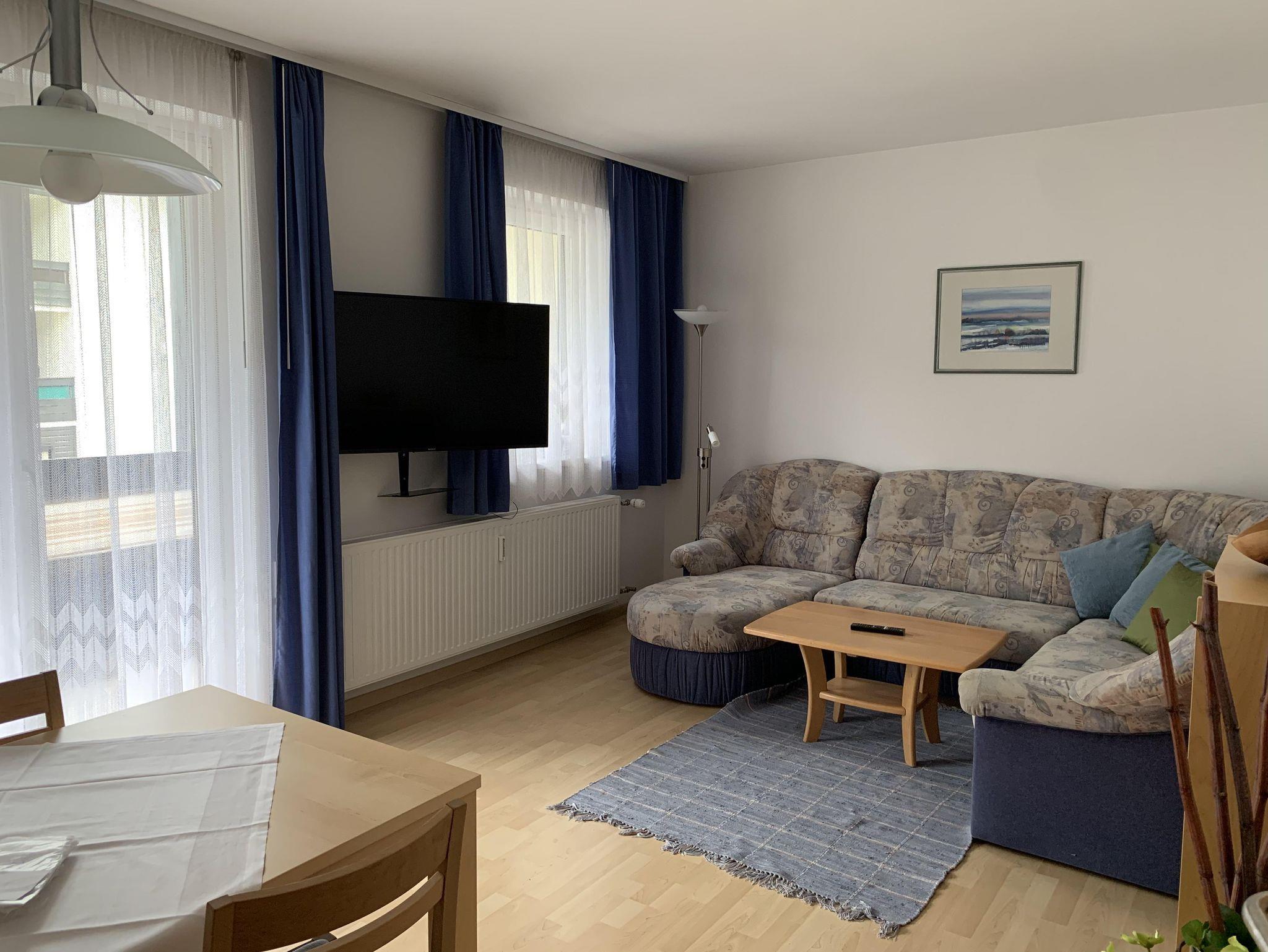 Zwei-Zimmer-Appartement für 2 bis 4 Personen ca. 48 m2, Wohnzimmer mit Essecke, Sitzecke, Ausziehcouch für 2 Personen, Kochnische, Schlafzimmer mit Doppelbett oder zwei Betten, Bad/WC, Balkon