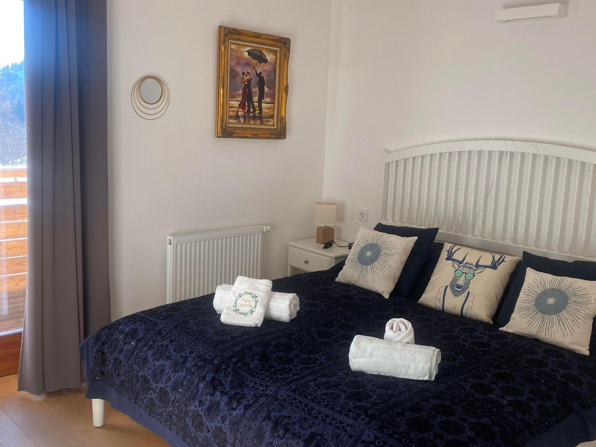 Das Apartment bietet drei Schlafzimmer, zwei Badezimmer sowie Bettwäsche und Handtücher für Ihren Komfort. Zur Ausstattung gehören ein Sat-TV, ein Essbereich, eine komplett ausgestattete Küche und eine Terrasse mit herrlichem Blick auf die Berge.