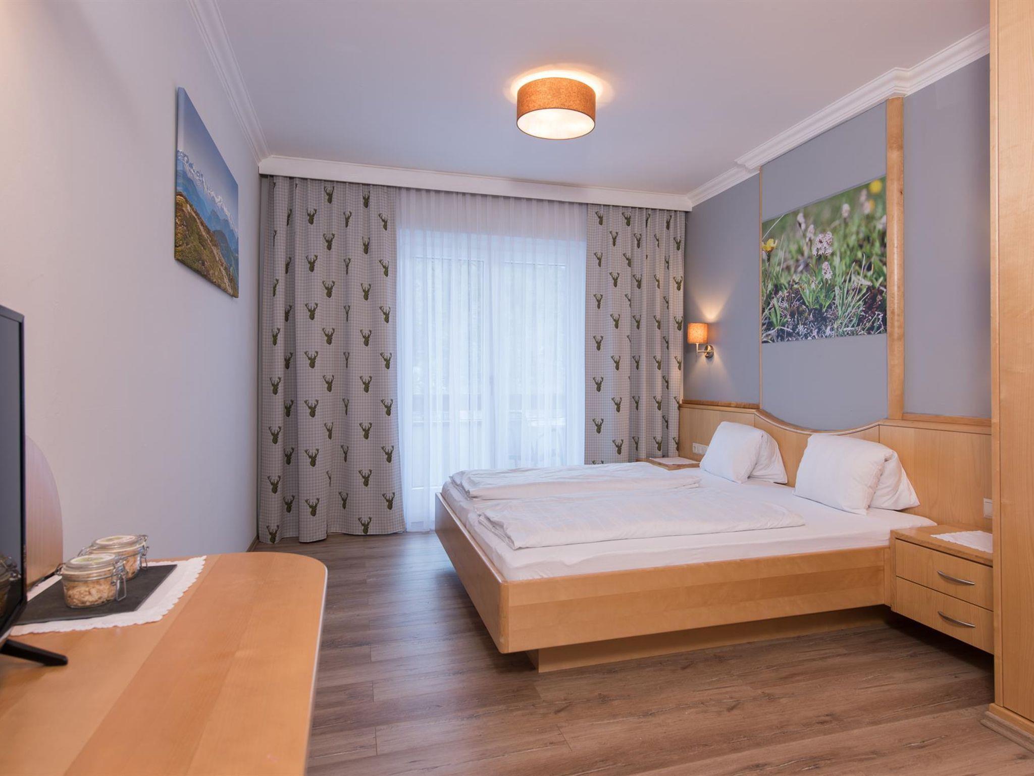 Doppelzimmer Almrausch mit Südbalkon ca. 22 m² (für 1 bis 2 Personen, Südbalkon, Gemütlicher Schlafraum, Kabel-TV, Safe Badezimmer mit Dusche und WC, Kosmetikspiegel, Föhn, Bademantel, Wellness-Korb, GRATIS WLAN