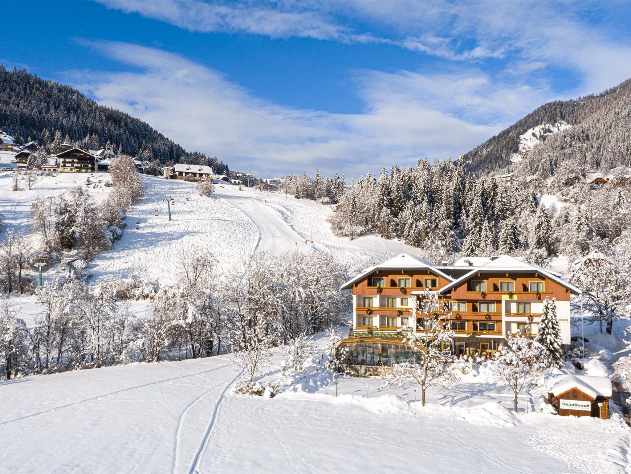 Winterurlaub in Kärnten in den Nockbergen, direkt an der Skipiste und mitten im vielfältigen Wintersportgebiet der Nockberge: Schöner können Winterferien in Österreich kaum sein! Entdecken Sie das Skigebiet Bad Kleinkirchheim direkt vom Hotel aus, freuen Sie sich auf aussichtsreiche Winterwanderungen und relaxen Sie ausgiebig in den nahen Thermen!