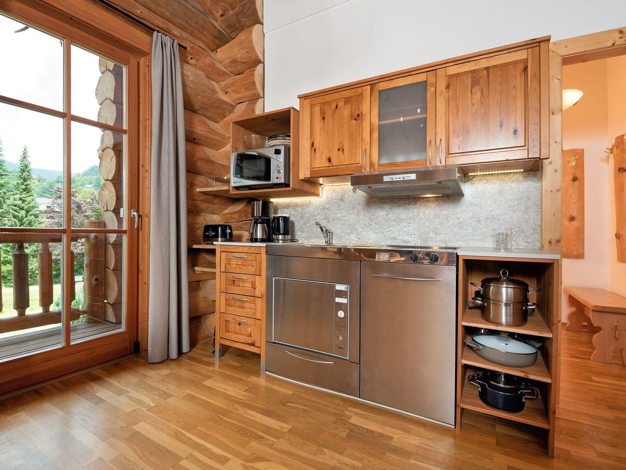 Die Chalets sind aus echter Kärntner Tanne gefertigt und bieten auf rund 45 m² Platz für 2 bis 5 Personen. Jedes Chalet verfügt über einen gemütlichen Wohn- und Essbereich mit voll ausgestatteter Küche, Schlafzimmer, Bad mit Dusche oder Badewanne, Terrasse oder Balkon, Flatscreen-TV, Safe und kostenfreies WLAN.