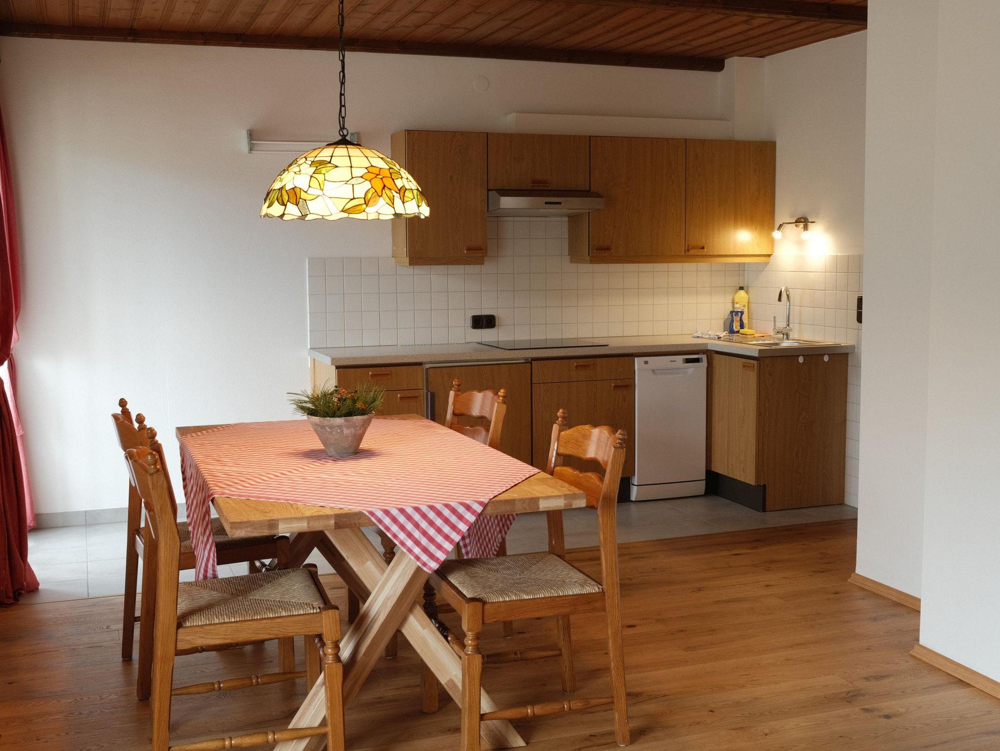 Das Wohnzimmer ist mit SAT TV und einem großen Esstisch ausgestattet - ideal für ein gemeinsames Familienfrühstück oder ein Abendessen mit Freunden. Die Kochnische ist mit Kochplatten, Mikrowellen/Grill Gerät, Kaffeemaschine und allen notwendigen Küchenutensilien (Kochtöpfe, Geschirr, Besteck, etc.) ausgerüstet.