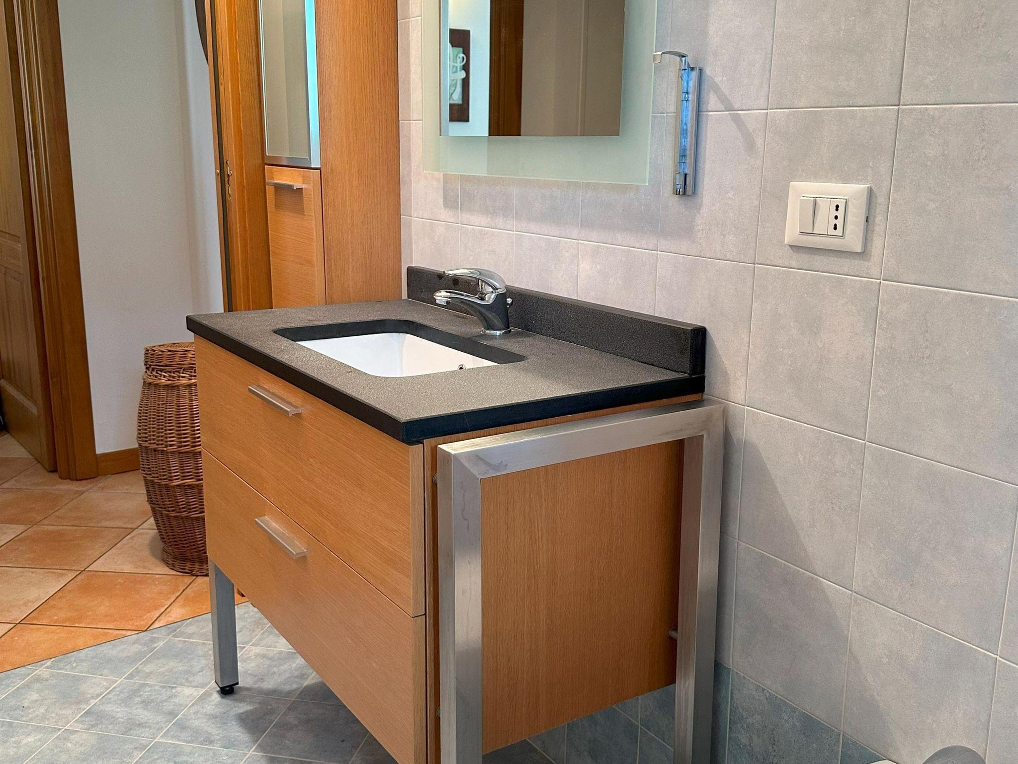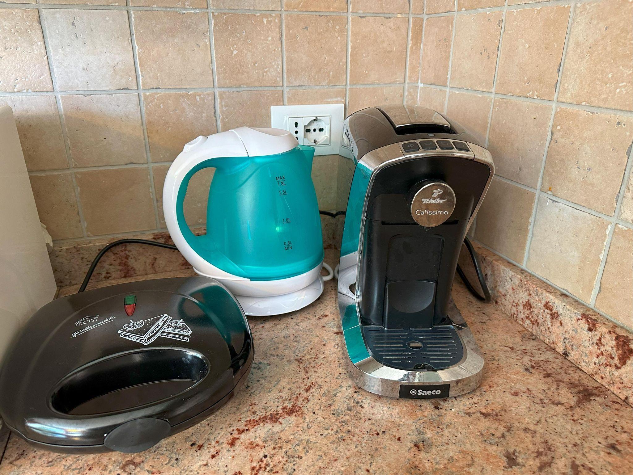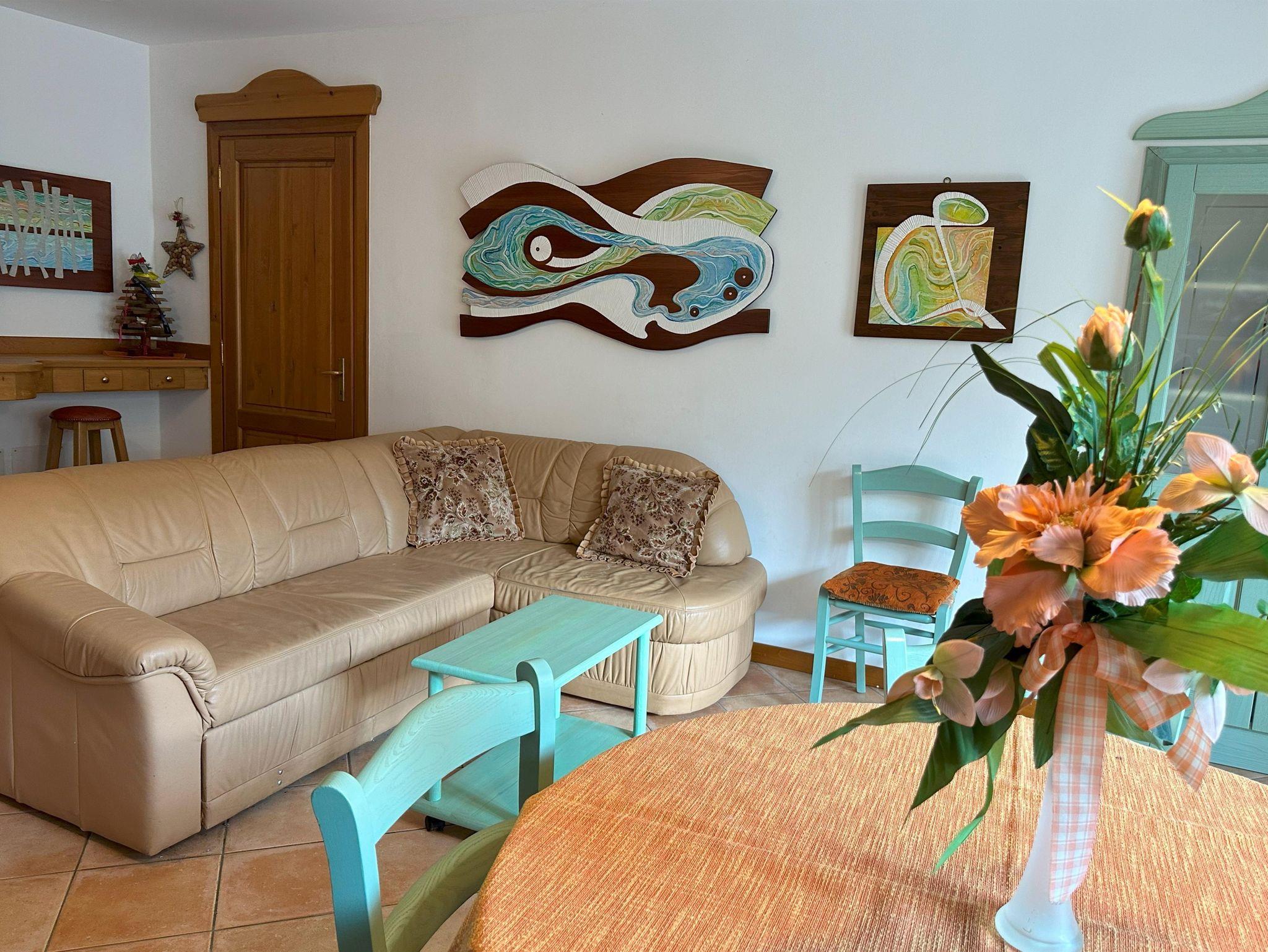 Im zweiten Stock eines von viel Grün umgebenen Gebäudes bietet diese schöne FeWo ein Schlafzimmer mit Doppelbett, eines mit zwei Einzelbetten, ein Badezimmer mit Dusche und Bidet, eine Küche mit Backofen und Geschirrspüler, ein Flachbildfernseher, WLAN und zwei Panoramabalkone.