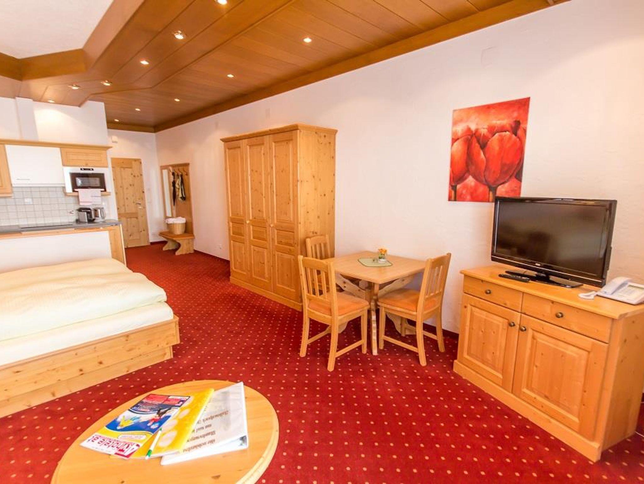 bestehend aus einem Wohn-Schlafraum mit Ausziehcouch, Kochnische mit Geschirrspüler, Espresso Kaffeemaschine und Mikrowelle, Dusche und WC, LCD-TV mit Radio, Westterrasse, Nichtraucher-Appartement