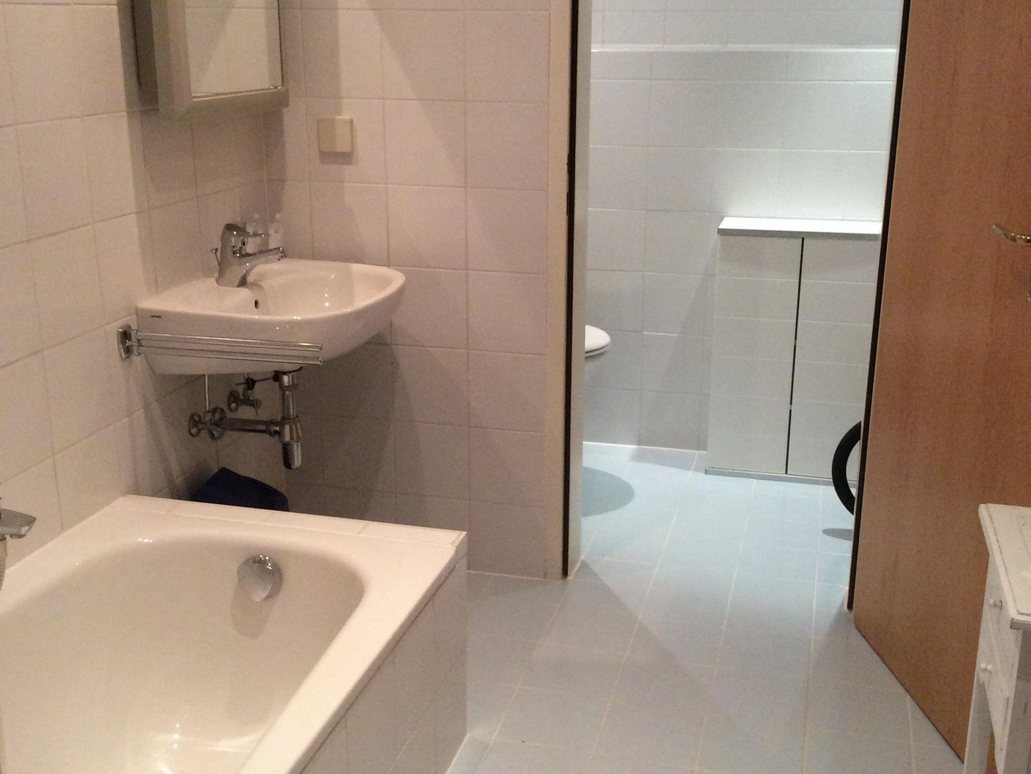 Appartement Typ A/60 m² (4 Personen): Schlafzimmer (2 Betten), Wohn-Schlafraum mit 2 getrennten Betten, Eßecke, Küchenzeile mit Backofen, Bad, WC, Vorraum, Kühlschrank, Kaffeemaschine, Sat-TV, Radio.