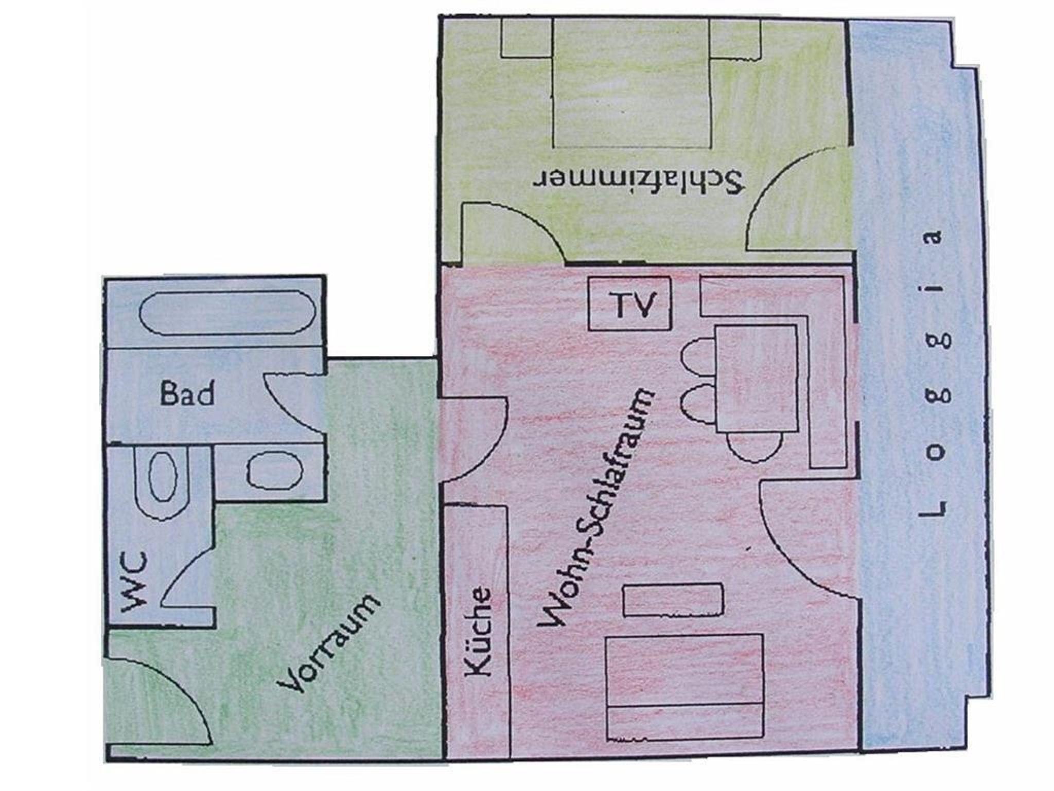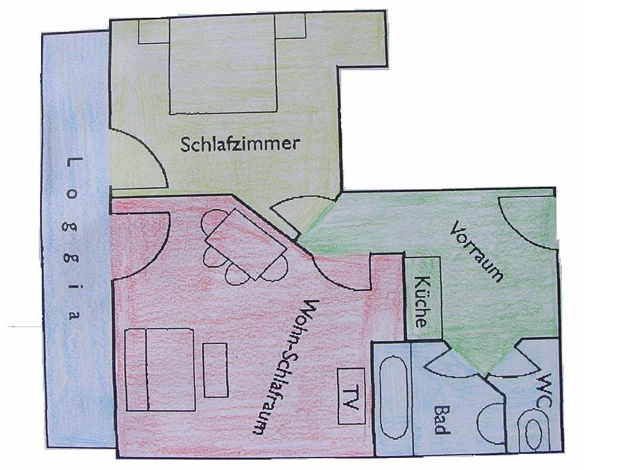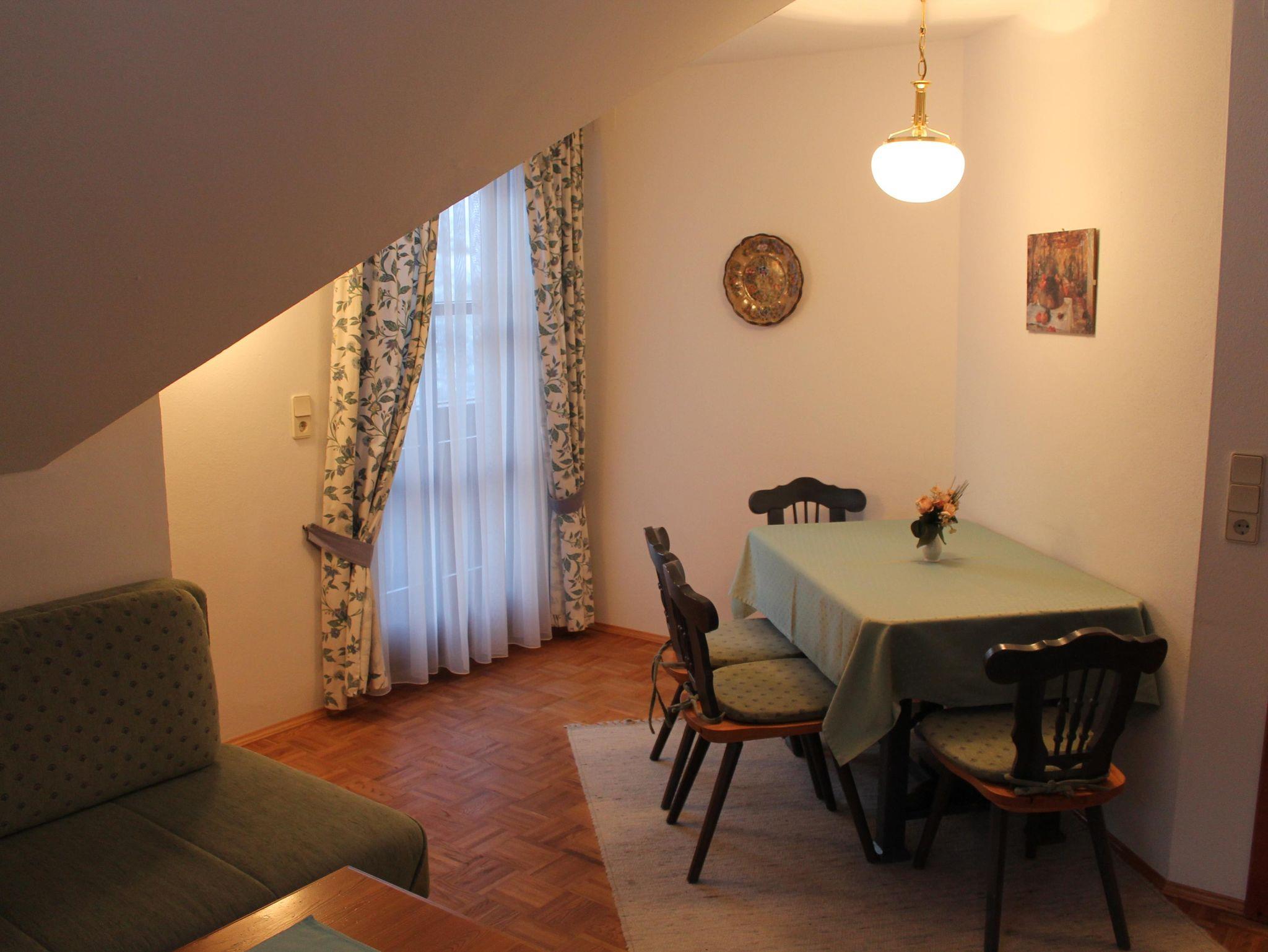 Die in Richtung Westen zur Morgensonne ausgerichtete Ferienwohnung bestehend aus einem Doppelzimmer, einem großen Wohn- Schlafraum mit ausziehbarer Doppelcouch und komplett eingerichteter Küchenecke, Bad/WC, Farb-SAT-TV (Flat TV), Radio, Telefon, Wireless Internet und großem Balkon. Die Ferienwohnung hat die ideale Größe für Familien mit 4 Personen und mit einem Zusatzbett finden darin auch 5 Personen Platz.