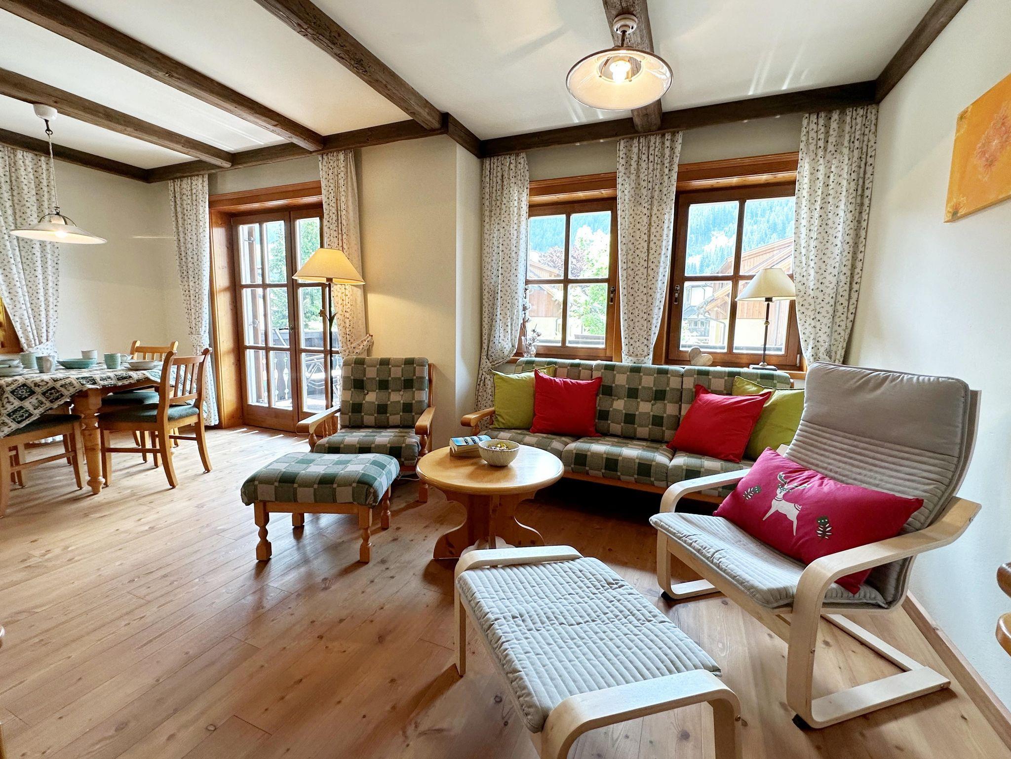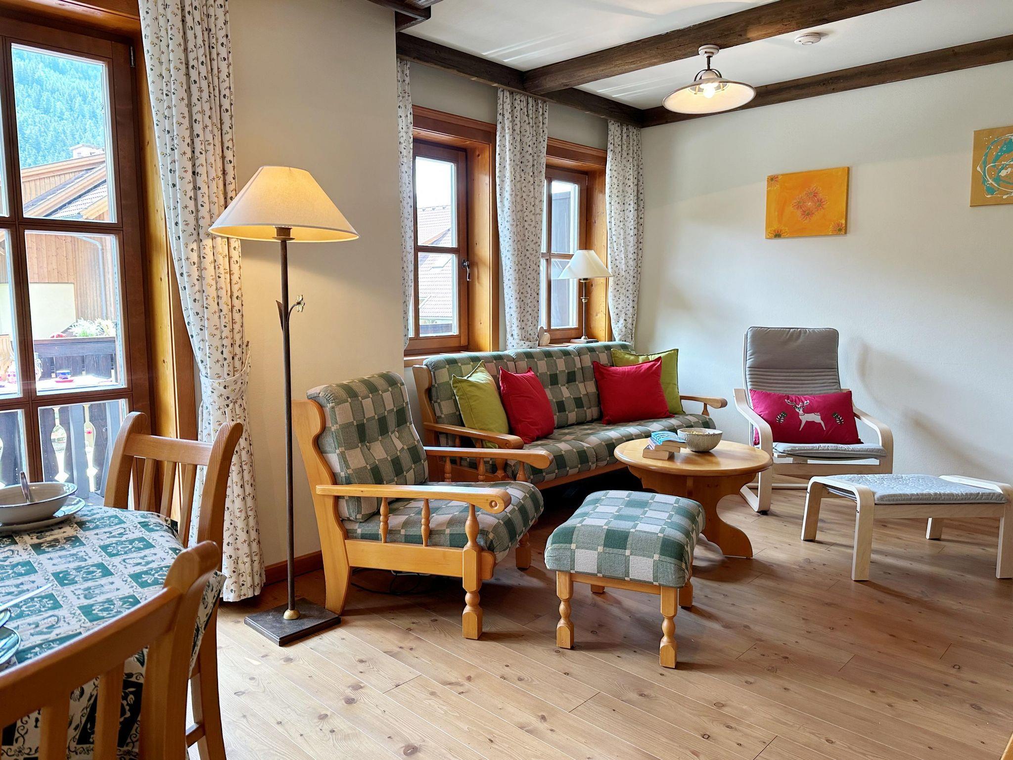 Geräumiges Apartment, strategisch positioniert zwischen Pisten, Therme, Restaurants, Bäckerei, Konditorei. Ein Schlafzimmer mit Doppelbett, eines mit 2 Einzelbetten, zwei Badezimmer (eines mit Badewanne und eines mit Dusche), großes und helles Wohnzimmer mit Küchenzeile mit Backofen und Geschirrspüler, Balkon, Sofa, Flachbildfernseher, WLAN-Anschluss und Schreibtisch für smart arbeiten.