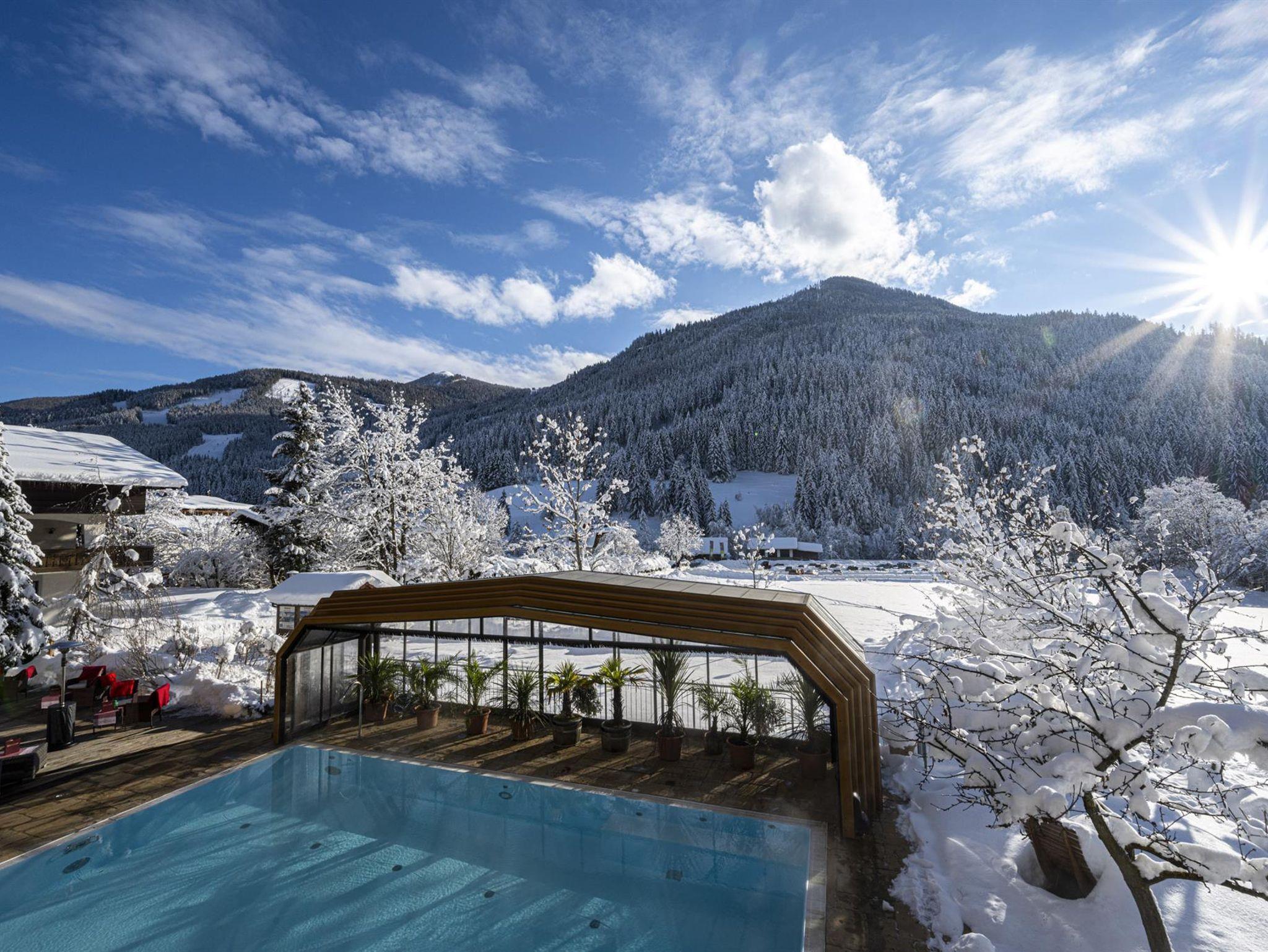 Willkommen im Hotel Almrausch mit der 500 Quadratmeter großen Wellnessoase auf zwei Ebenen. Freuen Sie sich auf jede Menge Relaxen, Energietanken und Kraftholen mit überdachtem, ganzjährig nutzbarem Pool (Sommer 29°C, Herbst/Winter 31°C), einer Saunaoase, verschiedenen Ruheräumen und bei wohltuenden Massagen. Sommerurlaub in Bad Kleinkirchheim