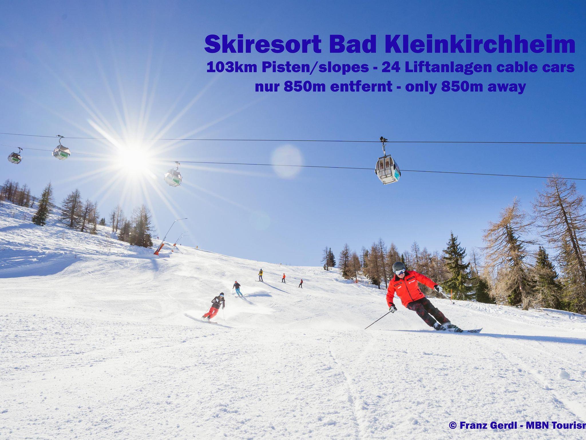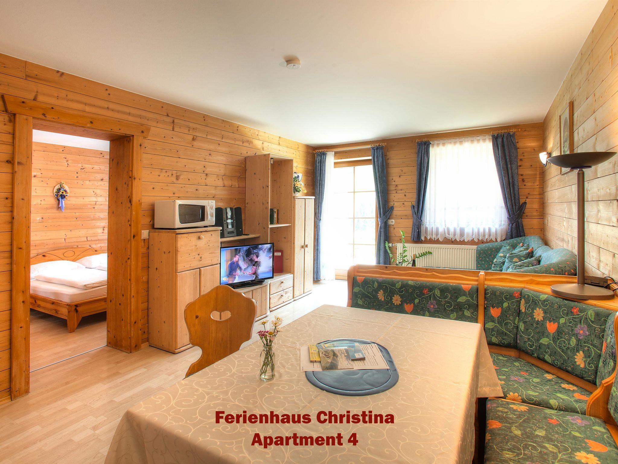 Dieses Apartment verteilt sich auf 3 Etagen und besteht aus 3 Schlafzimmern und einem separaten Wohnzimmer mit einem Schlafsofa. Es sind 2 elegante Badezimmer mit Toiletten vorhanden. Die Küche ist mit modernen Kocheinrichtungen ausgestattet. Im Untergeschoss ist eine eigene Sauna (Finnisch und Aroma, eine Whirlpoolwanne und ein Spielzimmer für Kinder ist ebenfalls in der Wohnung. Kabel-TV, Stereo-Anlage und Kaminofen stehen ebenfalls zur Verfügung. Die private Terrasse bietet eine Aussicht auf die umliegende Landschaft. Bettwäsche, Tischwäsche, Handtücher und Badetücher sind ausreichend in der Wohnung. WLAN steht Ihnen kostenfrei zur Verfügung. Die Kärnten Card ist in den Sommermonaten in den Preisen inbegriffen.