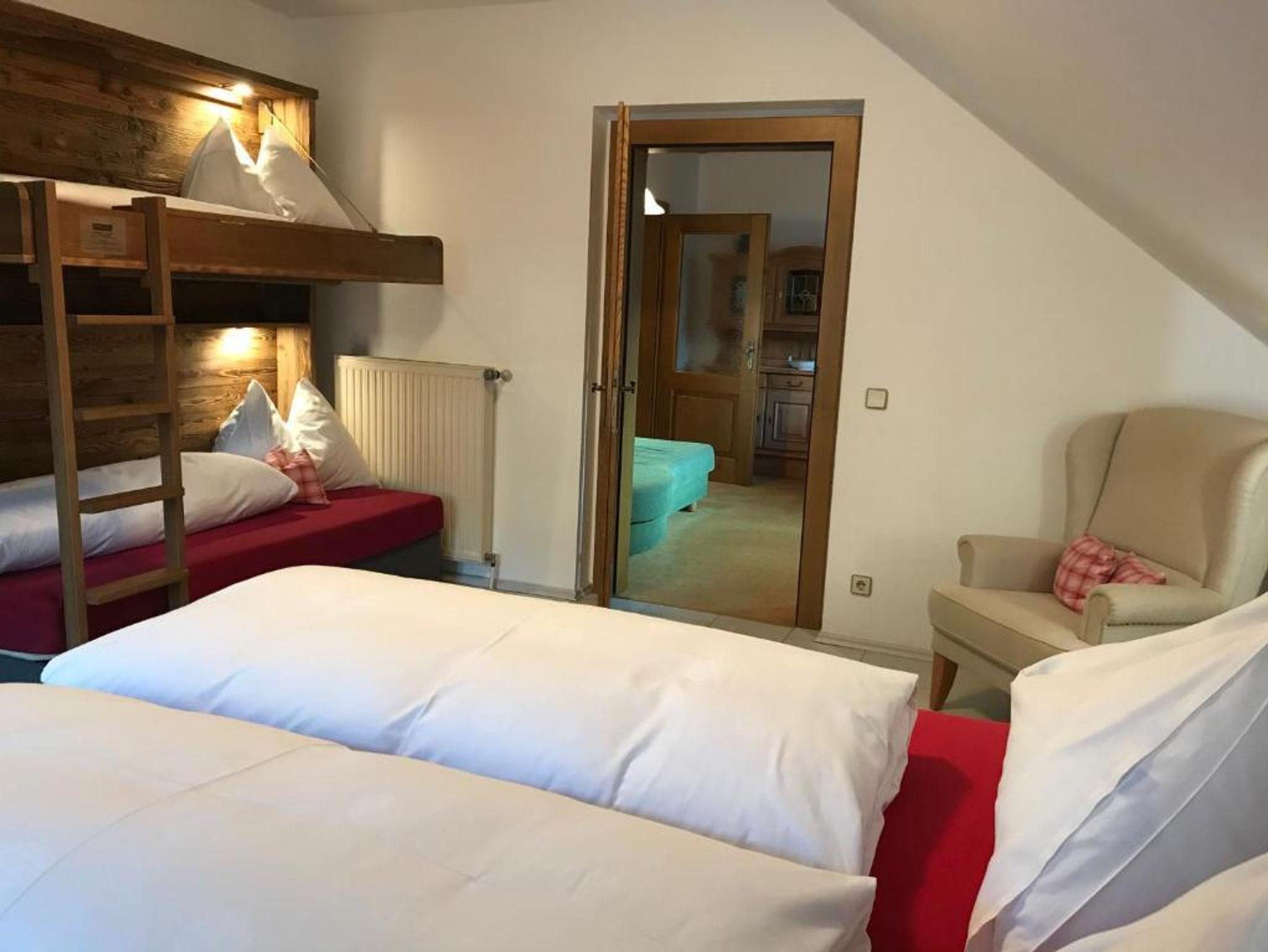 Ausstattung: einladender Vorraum, große Wohnküche mit Eckbank, Schlafzimmer mit Doppelbett und einem Einzelbett, Bad mit Tropenregen-Dusche und Toilette, Balkon mit Tisch und Stühlen und Liegestühlen, TV mit Sat und Radio Frühstück: im Kreise der Lieben in der Ferienwohung mit hauseigenen Produkten, oder in Gesellschaft im benachbarten Hotel Kärntnerhof