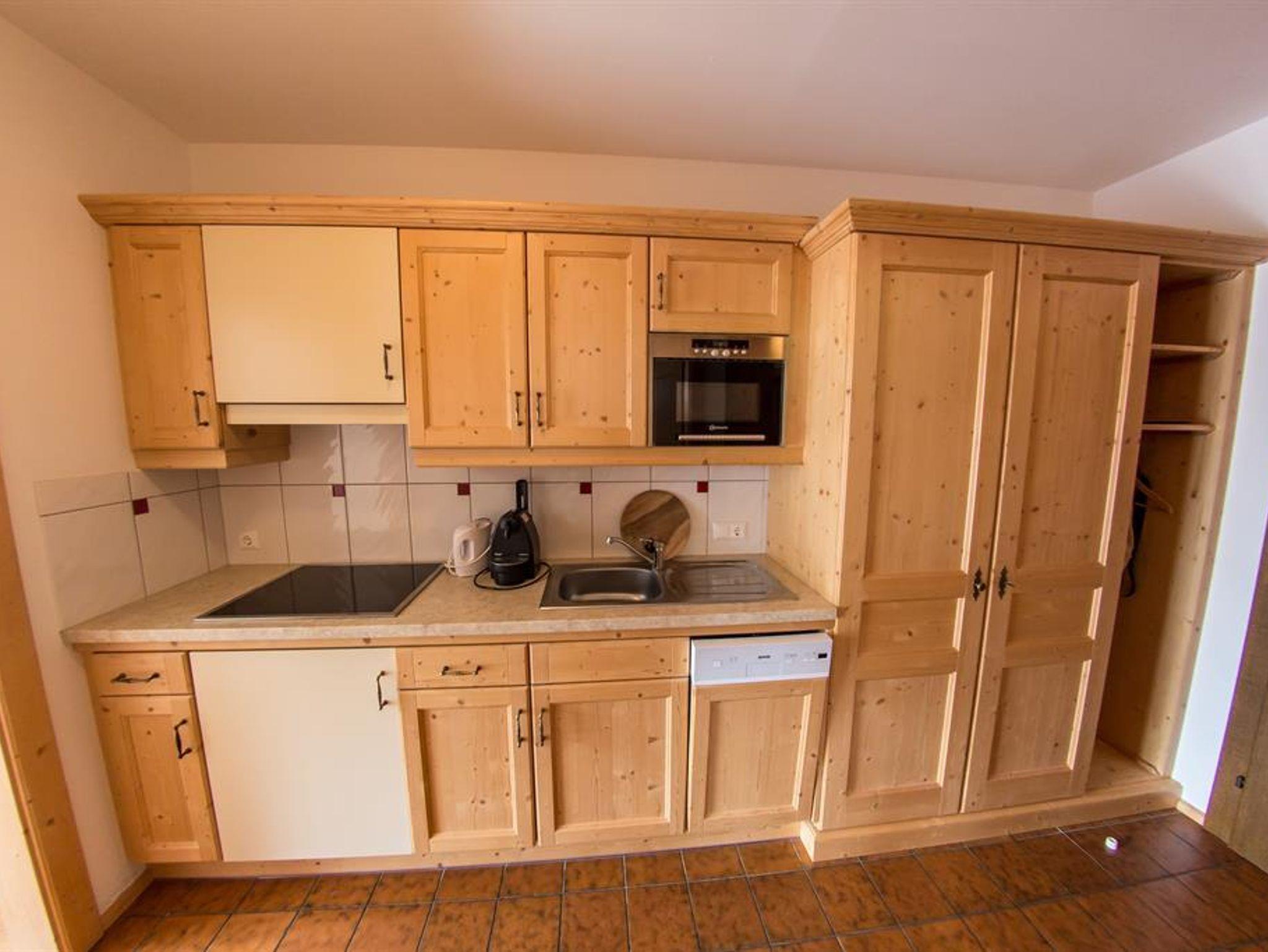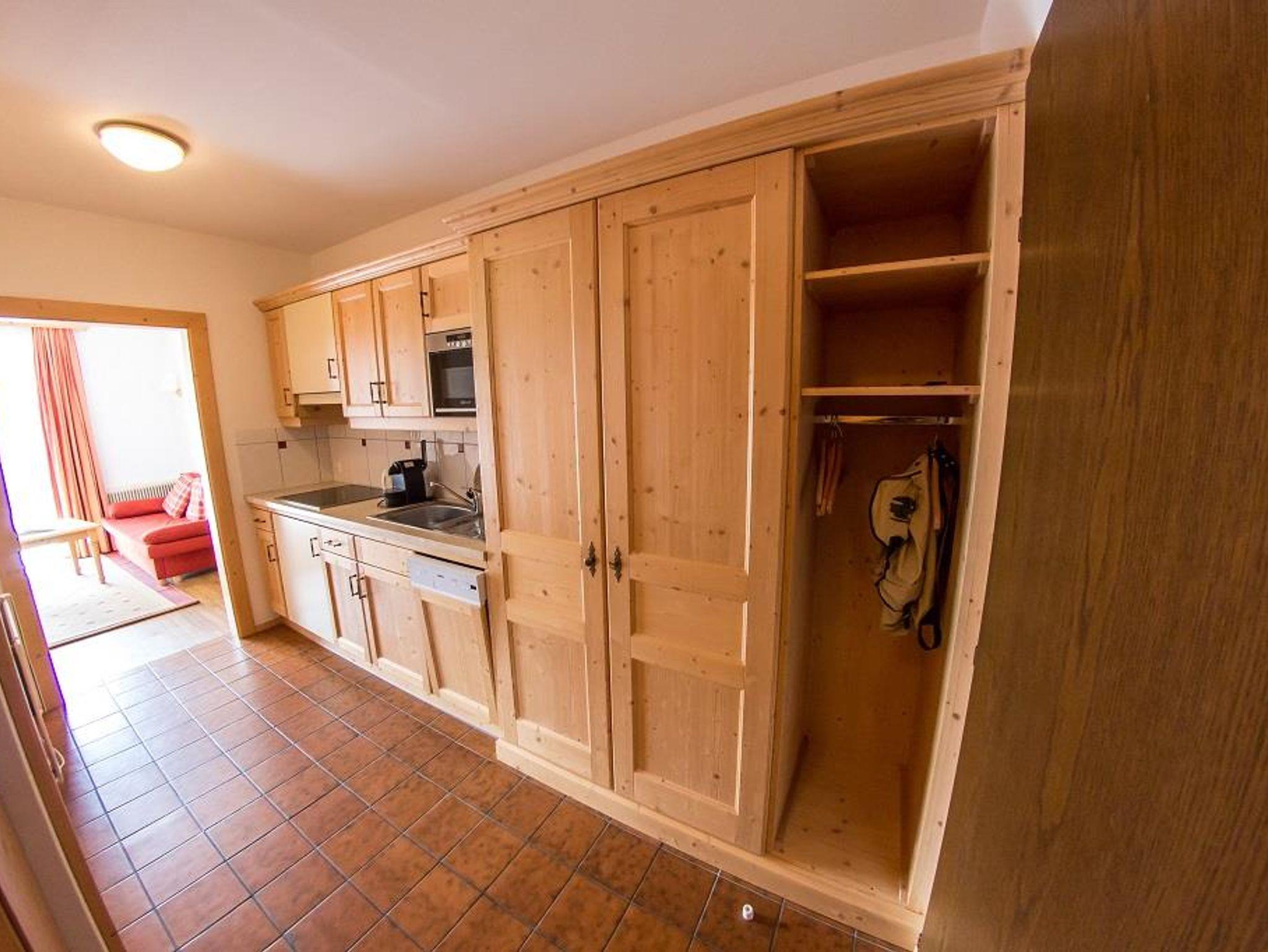 bestehend aus einem Schlafraum, einem Wohnraum mit Ausziehcouch, Kochnische mit Geschirrspüler, Espresso Kaffemaschine und Mikrowelle, Bad mit Dusche, extra WC, 2 LCD-TV mit Radio, Südbalkon - Nichtraucherappartement