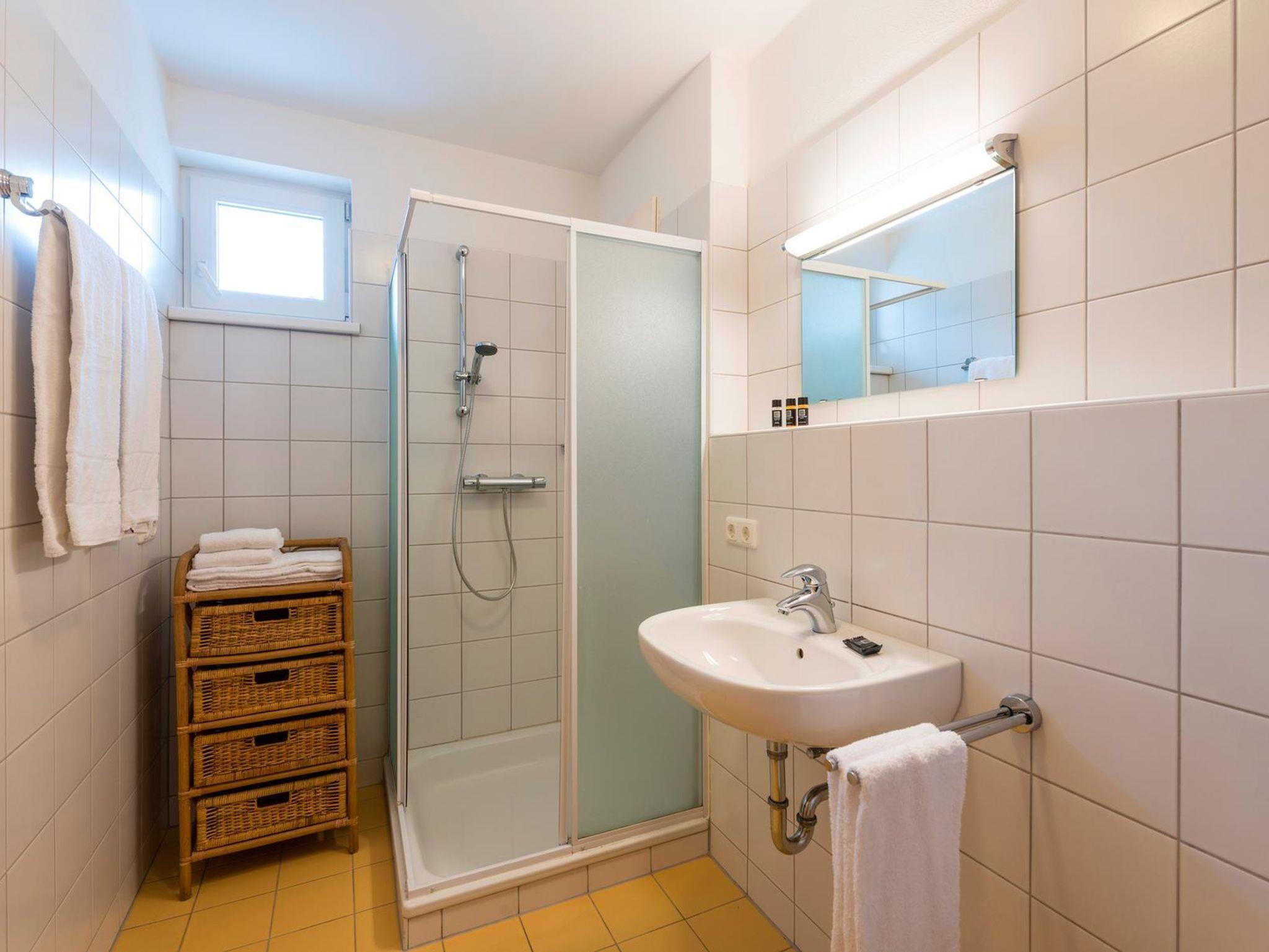 • Ein Badezimmer mit Dusche