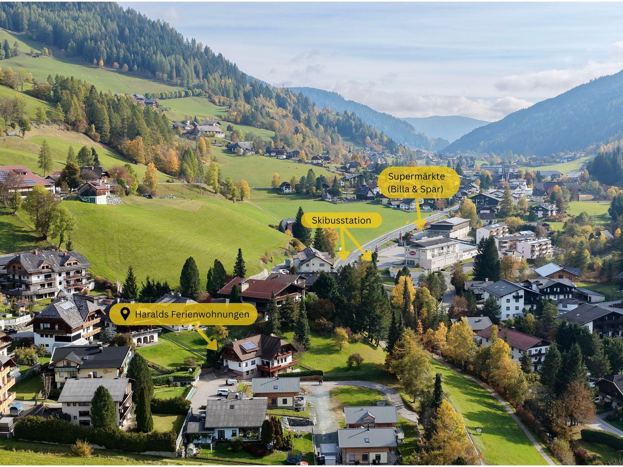 In unmittelbarer Nähe befinden sich namenhafte Wellness- und Freizeiteinrichtungen, darunter die familienfreundliche Therme St. Kathrein (nur 400 m entfernt) und das Thermal Römerbad (1 km). Skibegeistere werden die Nähe zu der Kaiserburgbahn, Maibrunnbahn und Sonnwiesenbahn schätzen. Wanderwege als Ausgangspunkte für herrliche Winterspaziergänge liegen rund um unser Ferienwohnhaus, sowie 3 Shuttlebushaltestellen.
