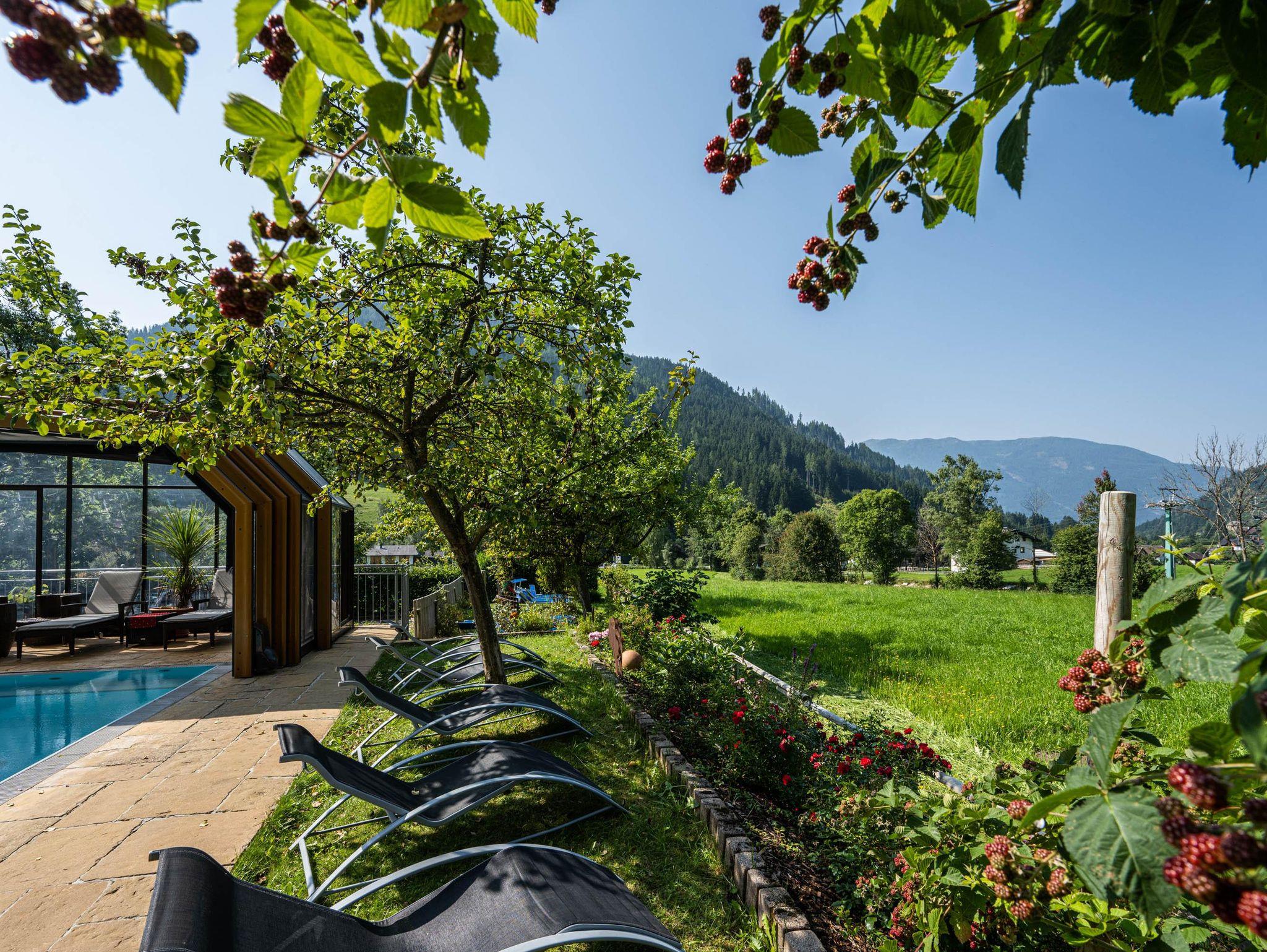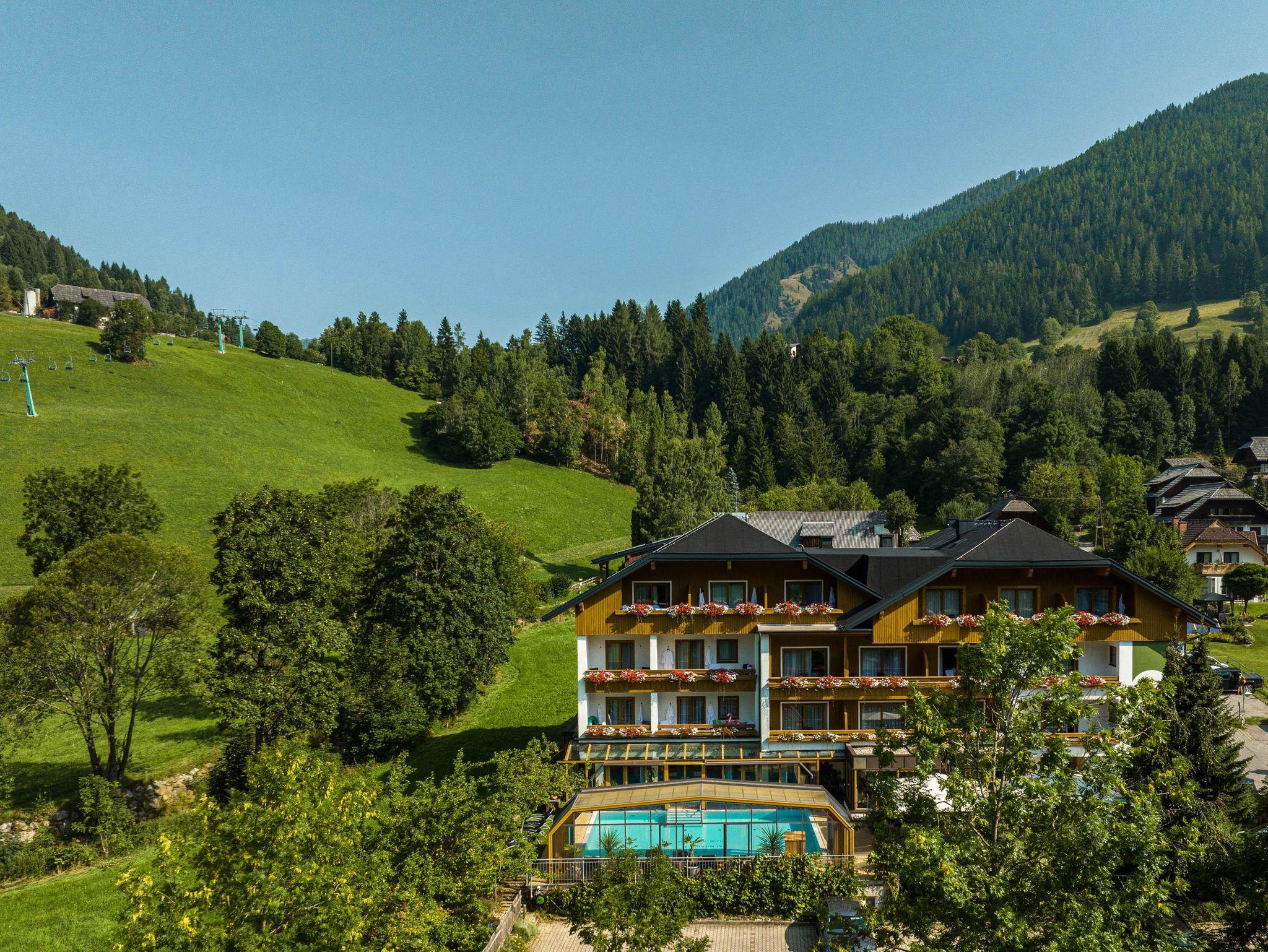 Willkommen im Hotel Almrausch mit der 500 Quadratmeter großen Wellnessoase auf zwei Ebenen. Freuen Sie sich auf jede Menge Relaxen, Energietanken und Kraftholen mit überdachtem, ganzjährig nutzbarem Pool (Sommer 29°C, Herbst/Winter 31°C), einer Saunaoase, verschiedenen Ruheräumen und bei wohltuenden Massagen. Sommerurlaub in Bad Kleinkirchheim