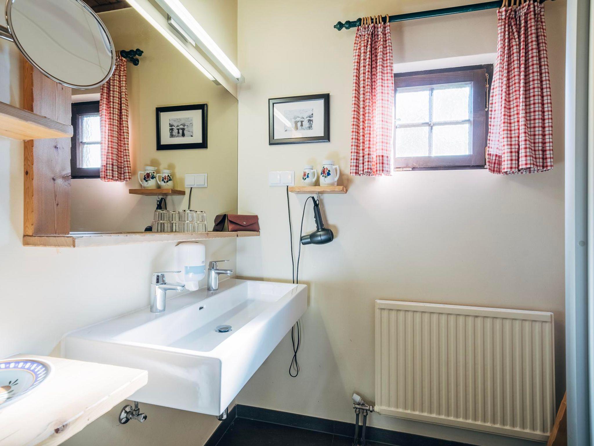Vorraum mit komplett eingerichteter Küche (mit Ceranfeld-Kochplatten, Kühlschrank, Backofen, Geschirrspüler und Kaffee-Kapsel-Maschine), gemütlicher Wohn-Essbereich mit Kachelofen, 2 Couchbetten, 1 Schlafzimmer mit Doppelbett, 1 Schlafzimmer mit zwei Einzelbetten, Badezimmer mit Dusche und WC.