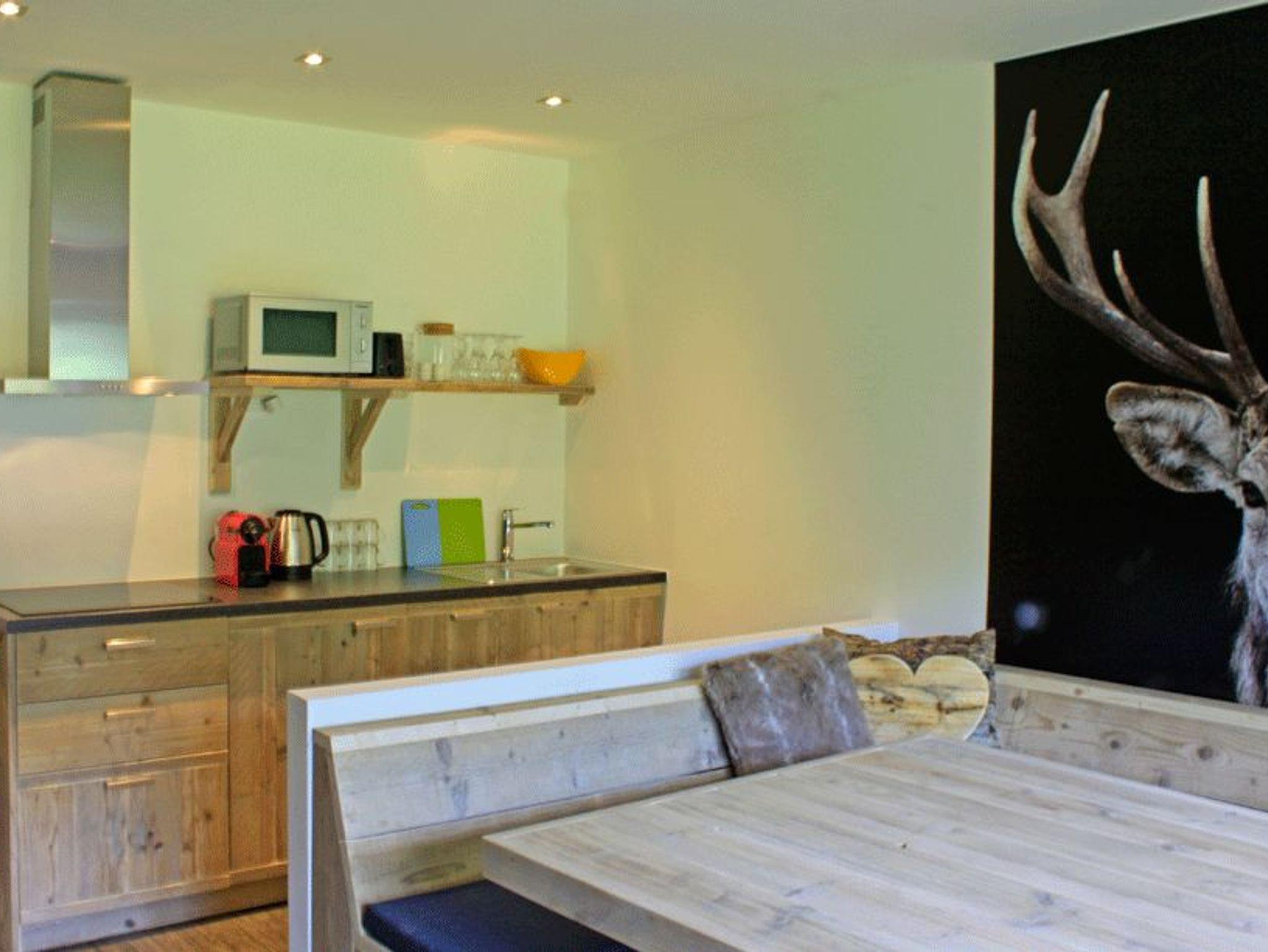 • Eine komplett eingerichtete offene Küche inklusive einer Nespresso Kaffeemaschine;