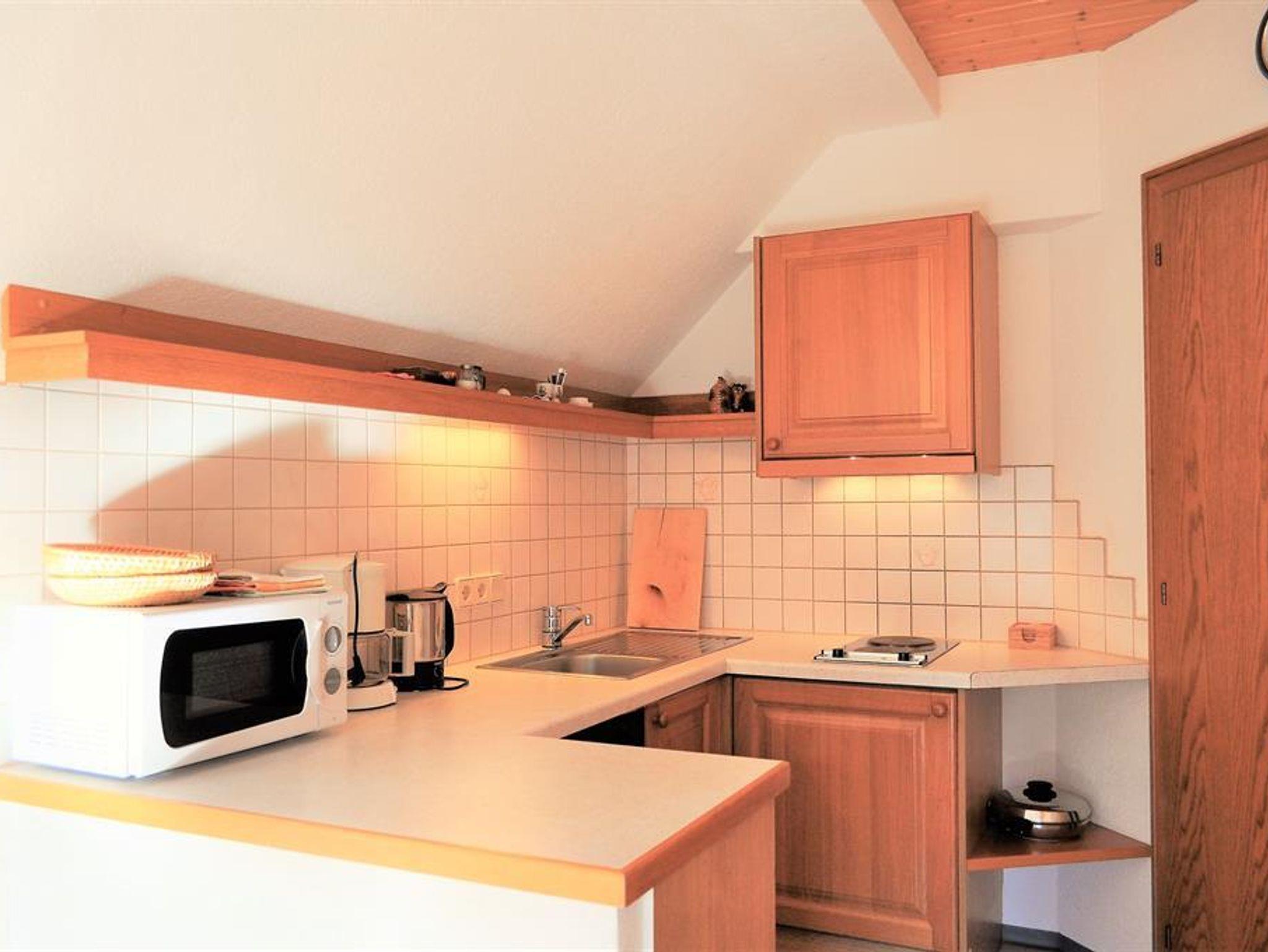 Gemütliches, ruhiges Appartement mit Doppelschlafzimmer (getrennte Betten), Badezimmer mit Dusche und WC, Wohnraum mit Kochnische, Essecke und ausziehbarer Couch. TV und Mikrowelle sind vorhanden. Südseitiger Balkon mit schöner Aussicht ins Kirchheimer Tal!