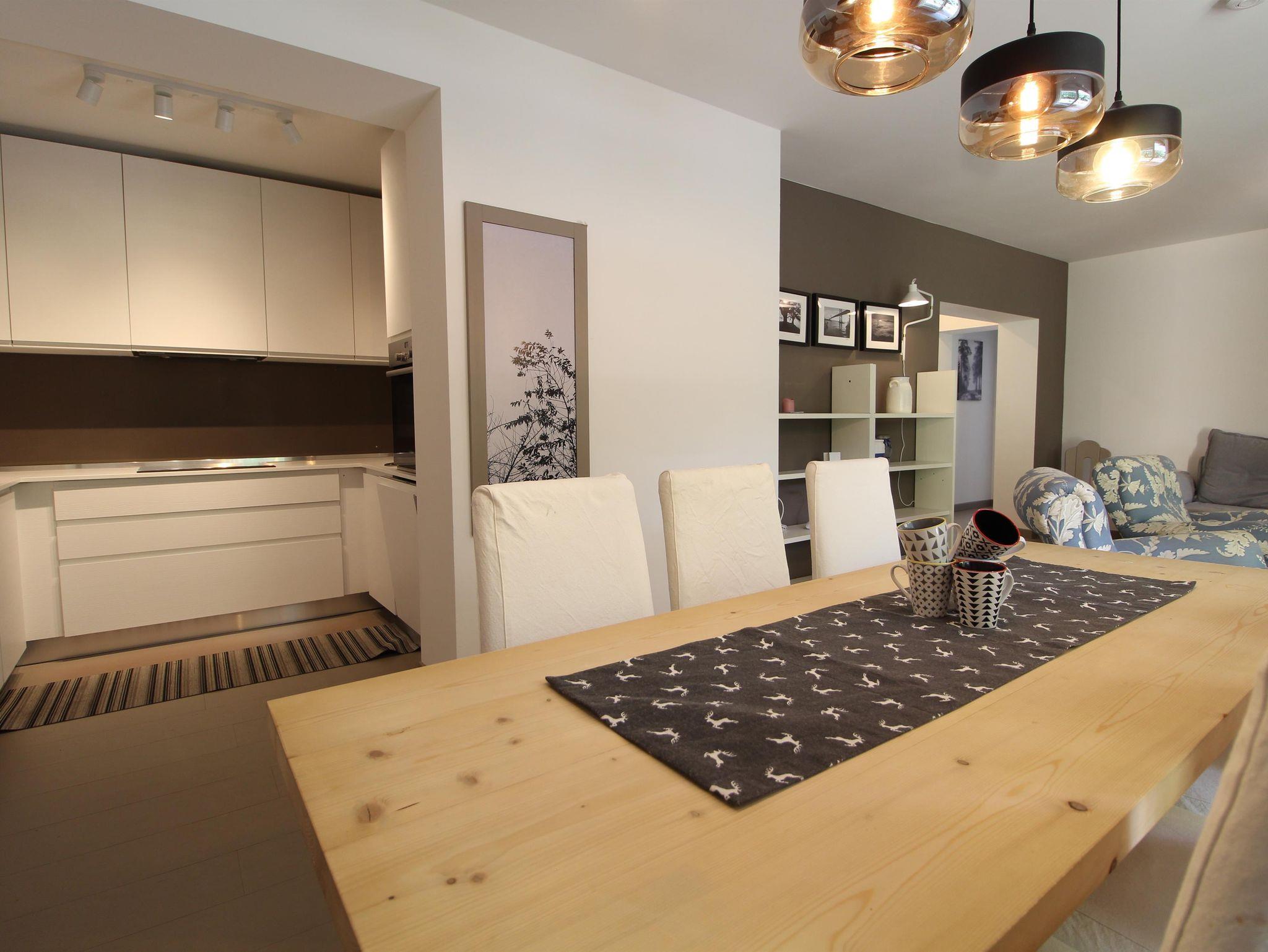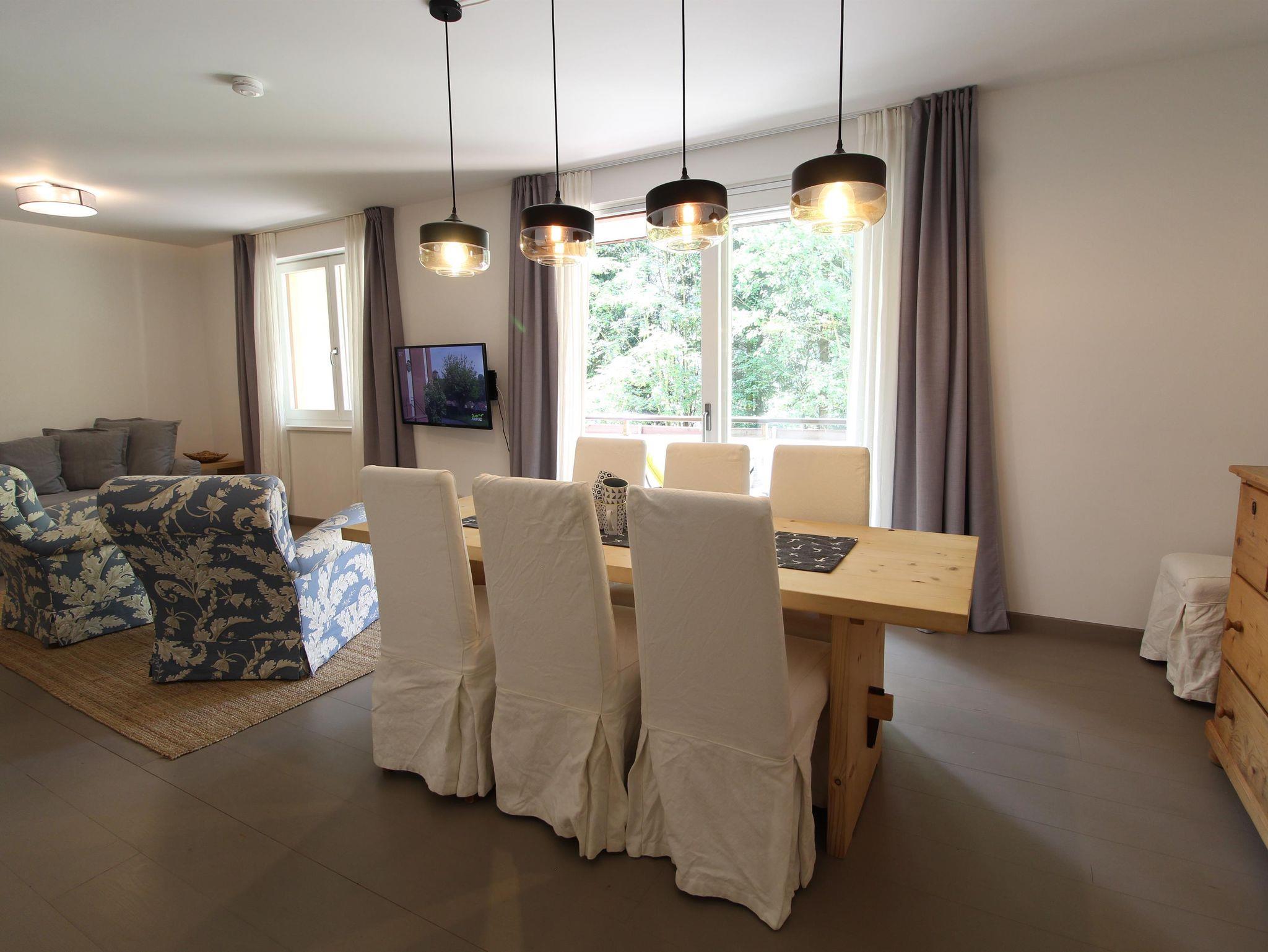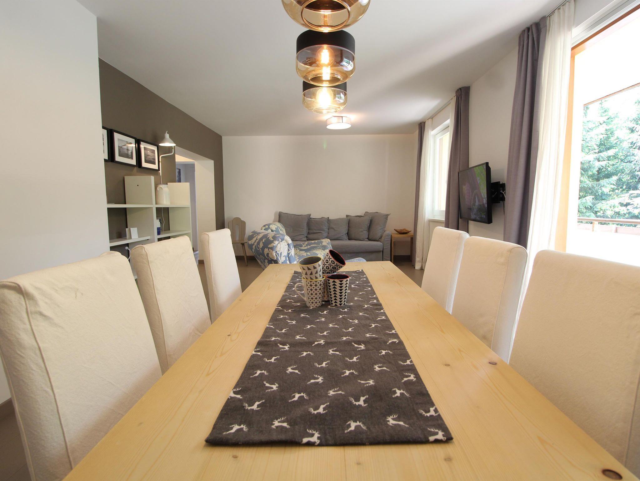 Es handelt sich um eine geräumige (ca. 100 qm groß) , helle Wohnung , im Ortsteil Zirkitzen. Die Wohnung besteht aus einen großen Wohnraum, einer Küche, einem Schlafzimmern mit Doppelbett , einem Schlafzimmer mit zwei Einzelbetten ,und einem mit Etagenbetten, zwei Badezimmern und 3 Terrassen. Im Wohnzimmer findet ein großes Sofabett Platz. Geschirrspüler , Waschmaschine, Skiraum, W-Lan und TV zur Verfügung.