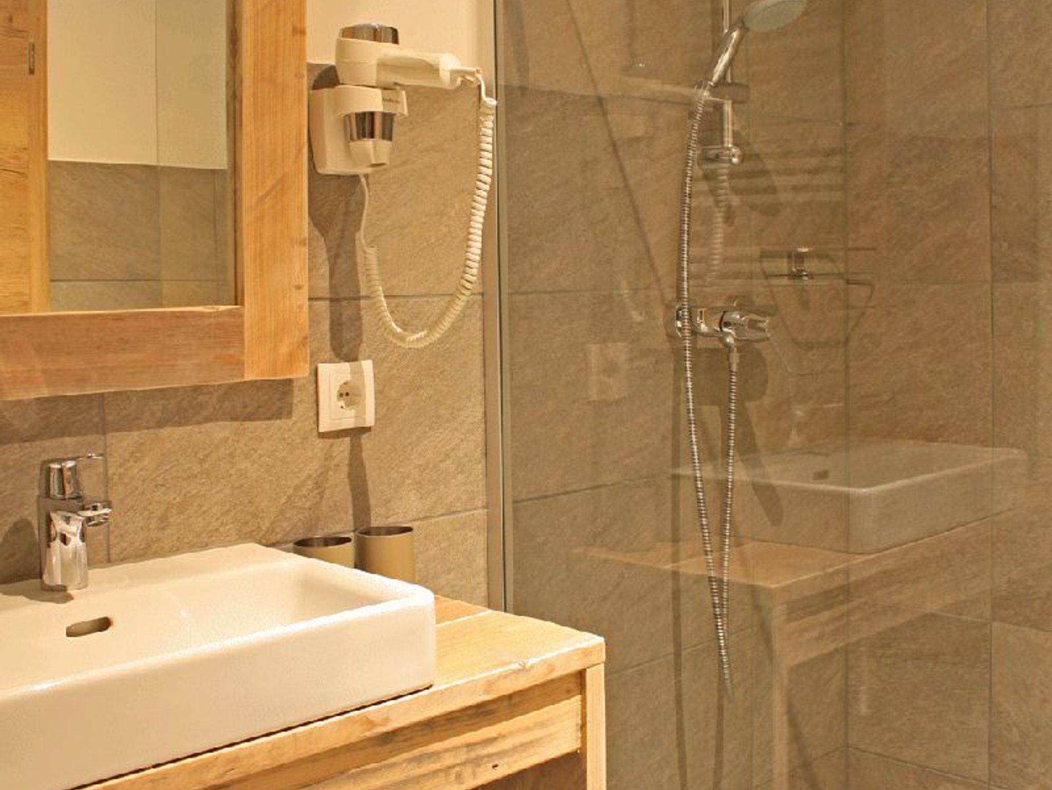 • Ein modernes Badezimmer mit kräftiger Dusche inklusive Föhn;
